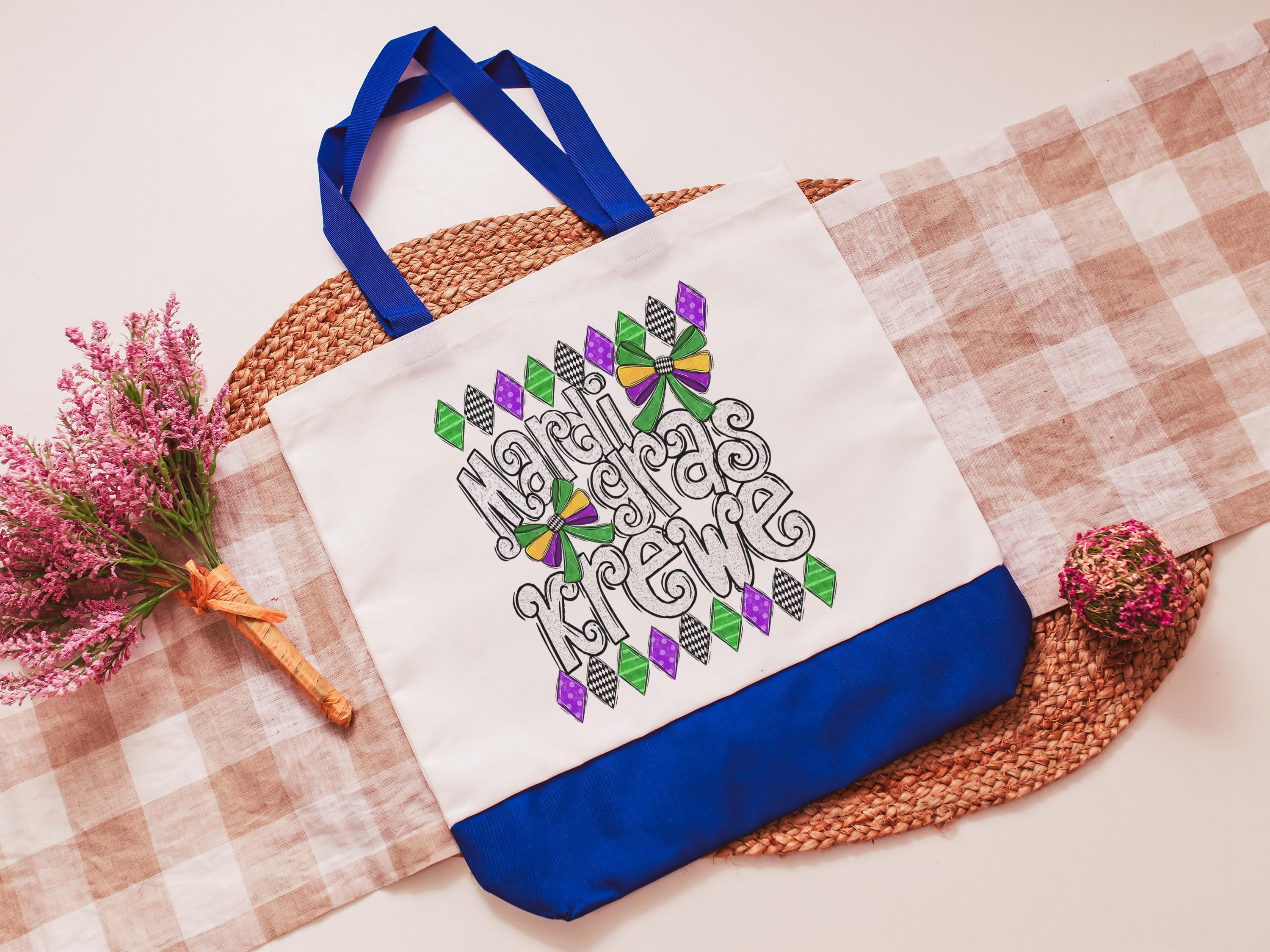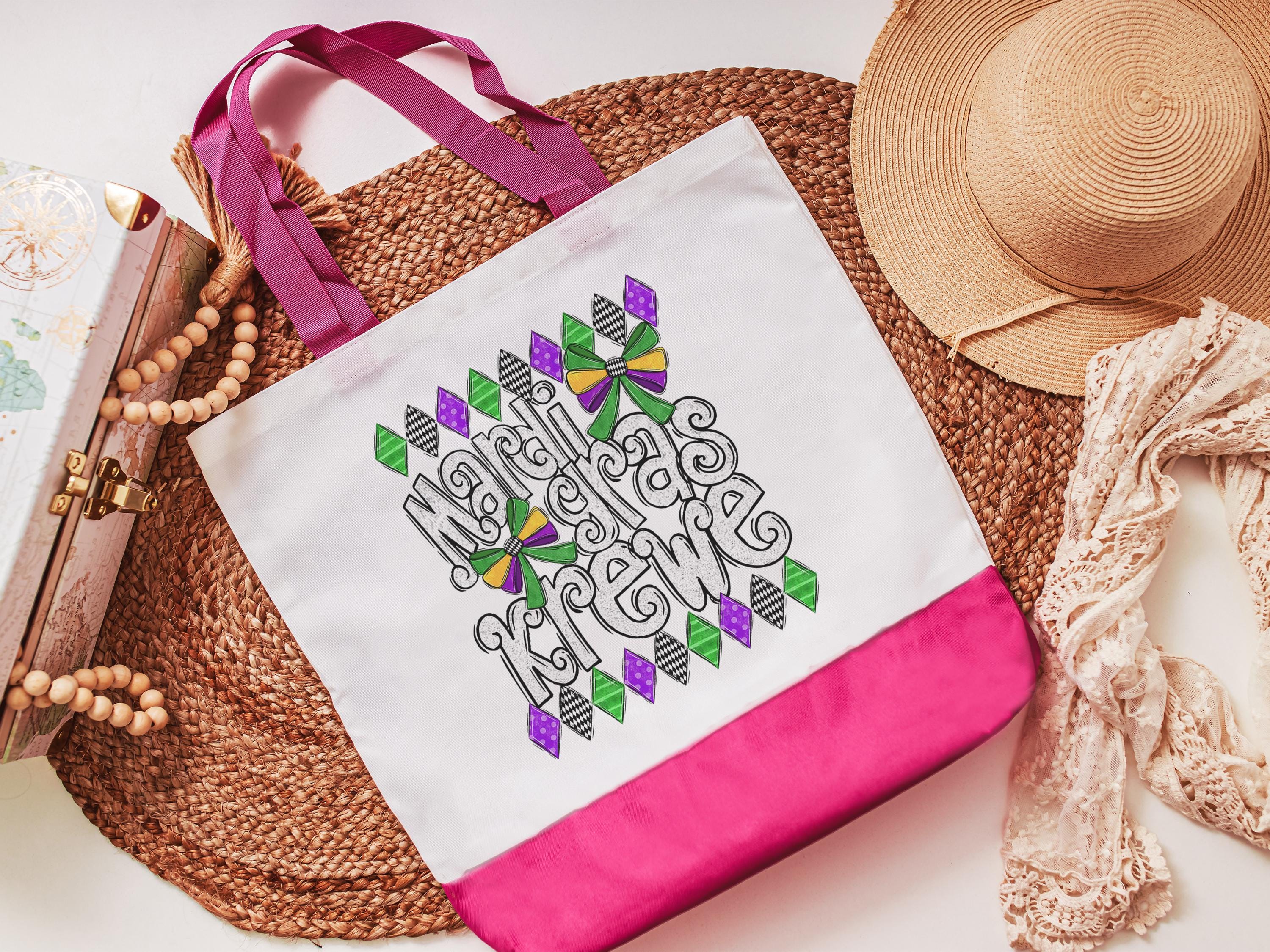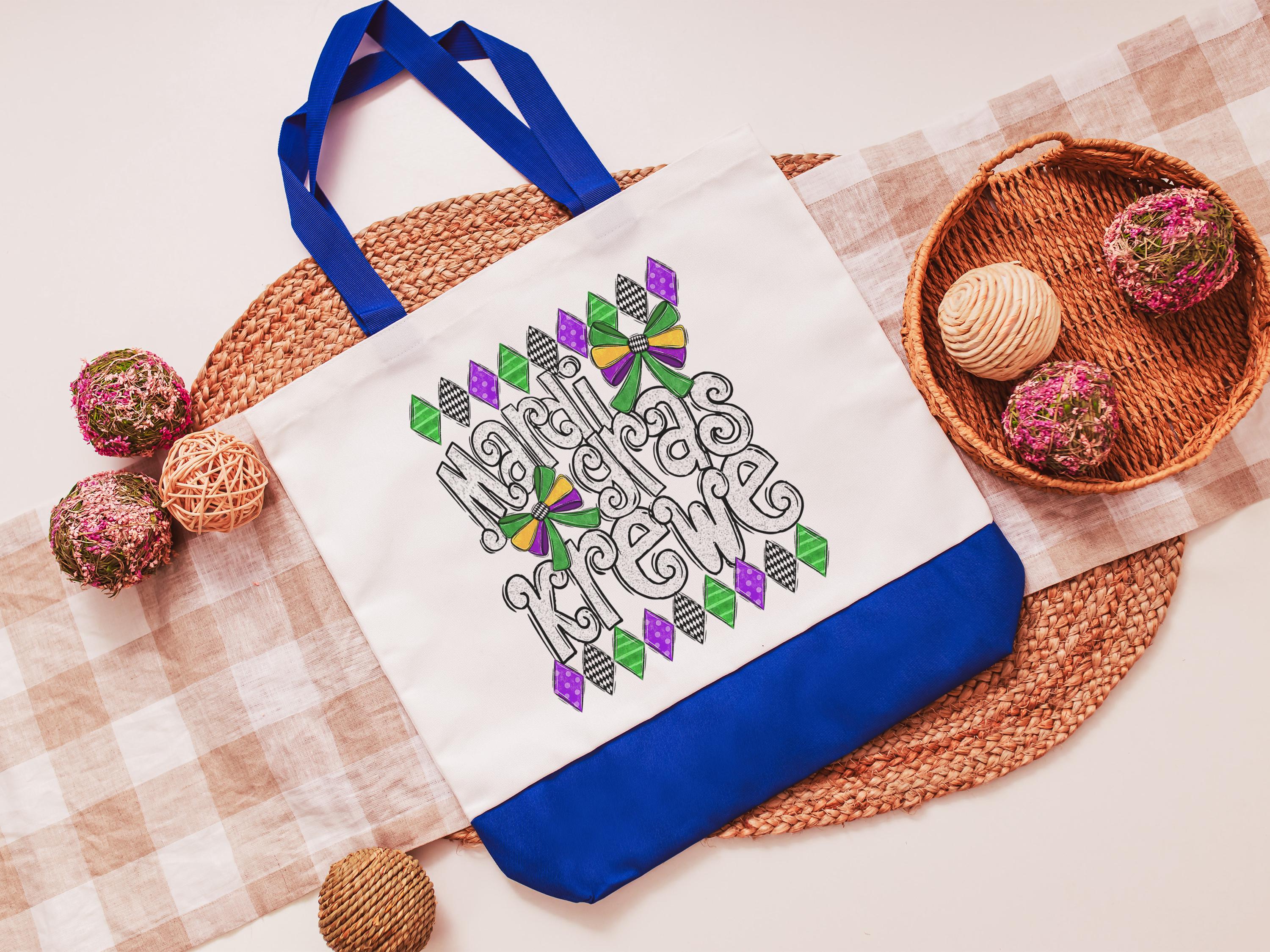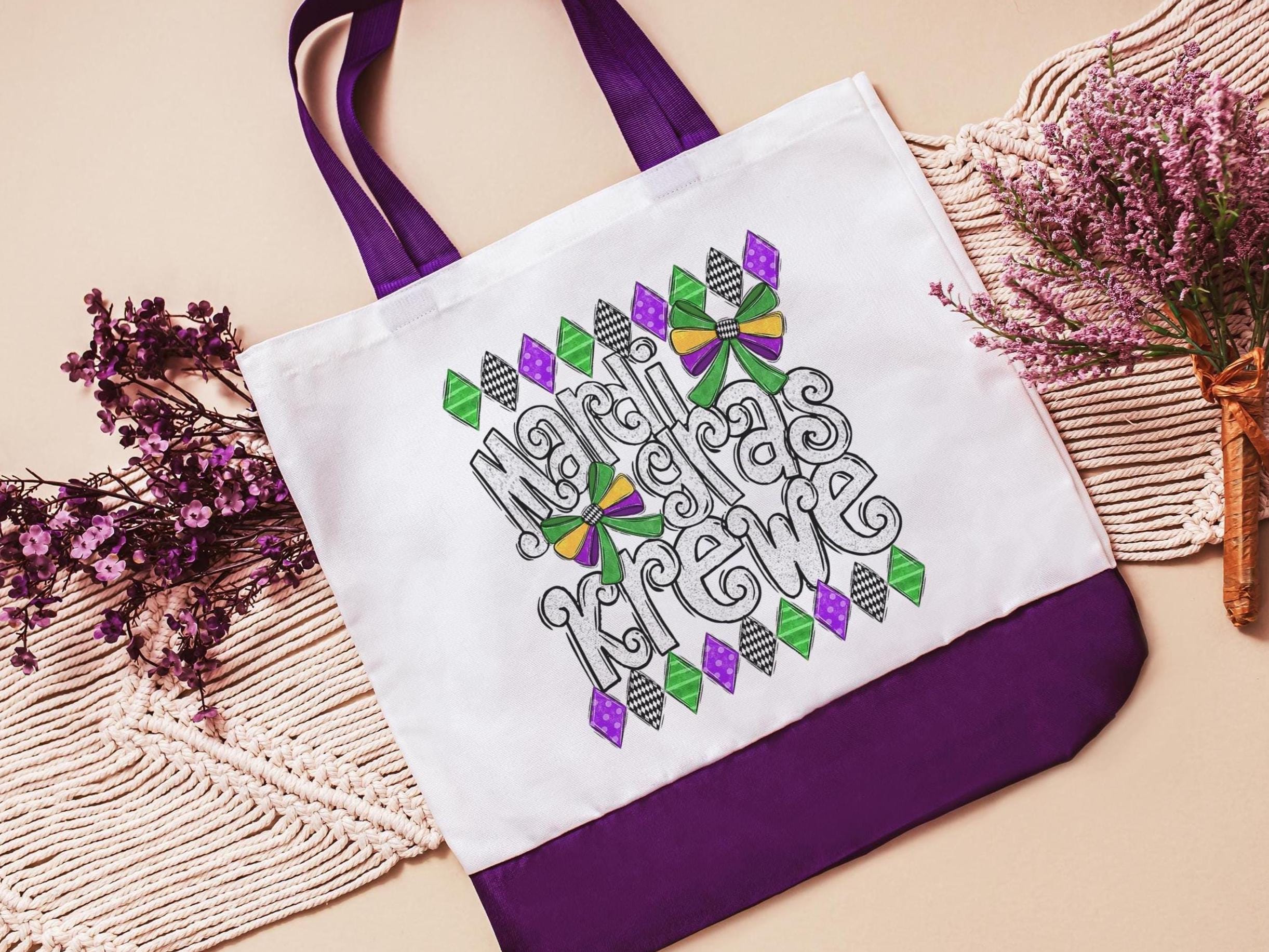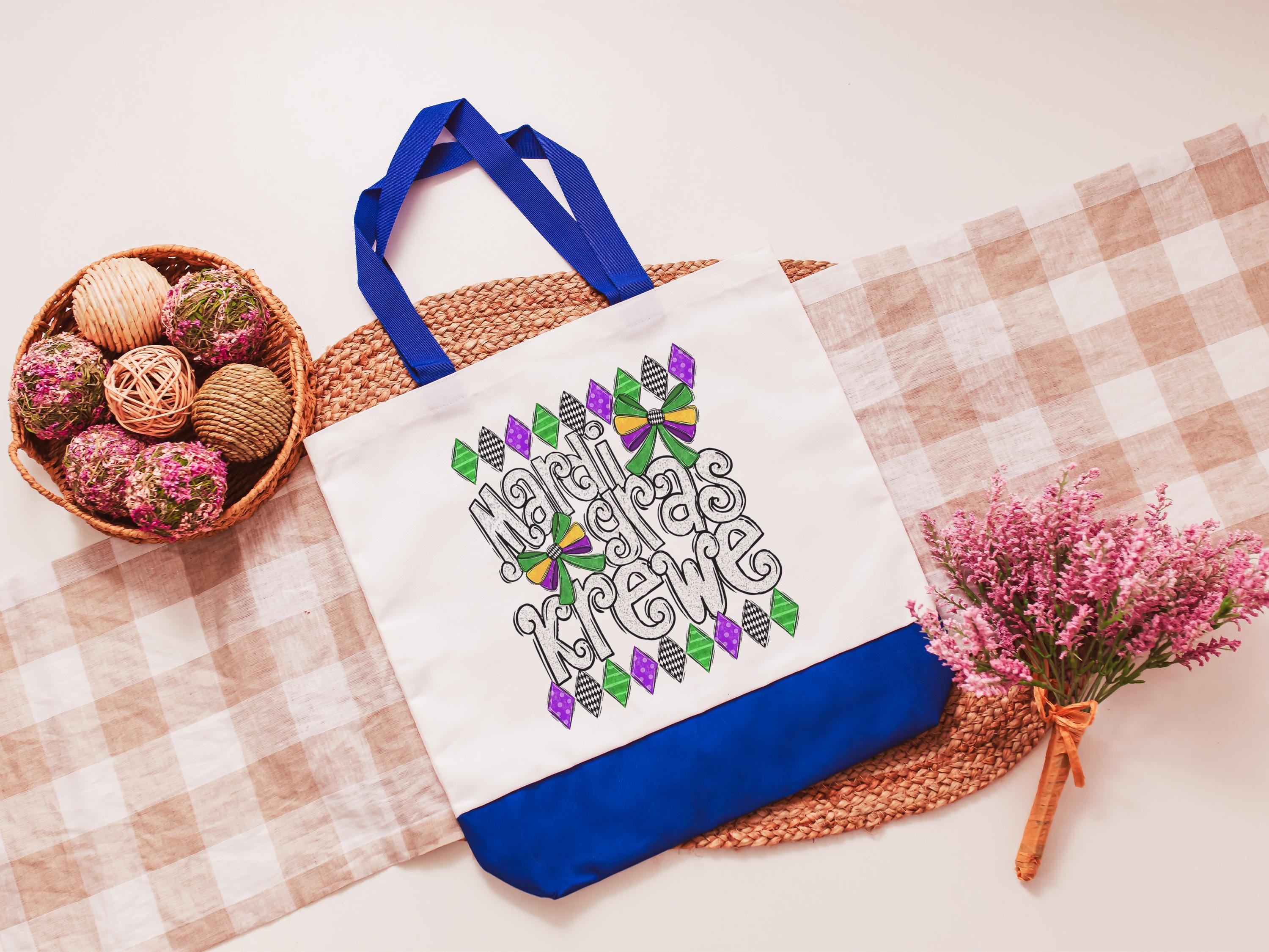Mardi Gras krewe vibes tote bag for girls trip, Fat Tuesday party favors for guests, Louisiana gifts for women, reusable bag coworker gifts