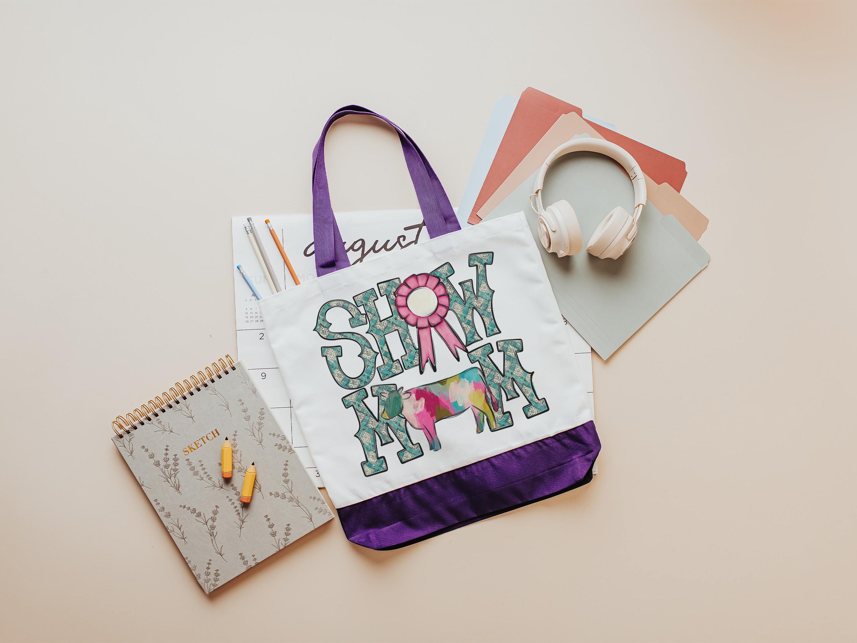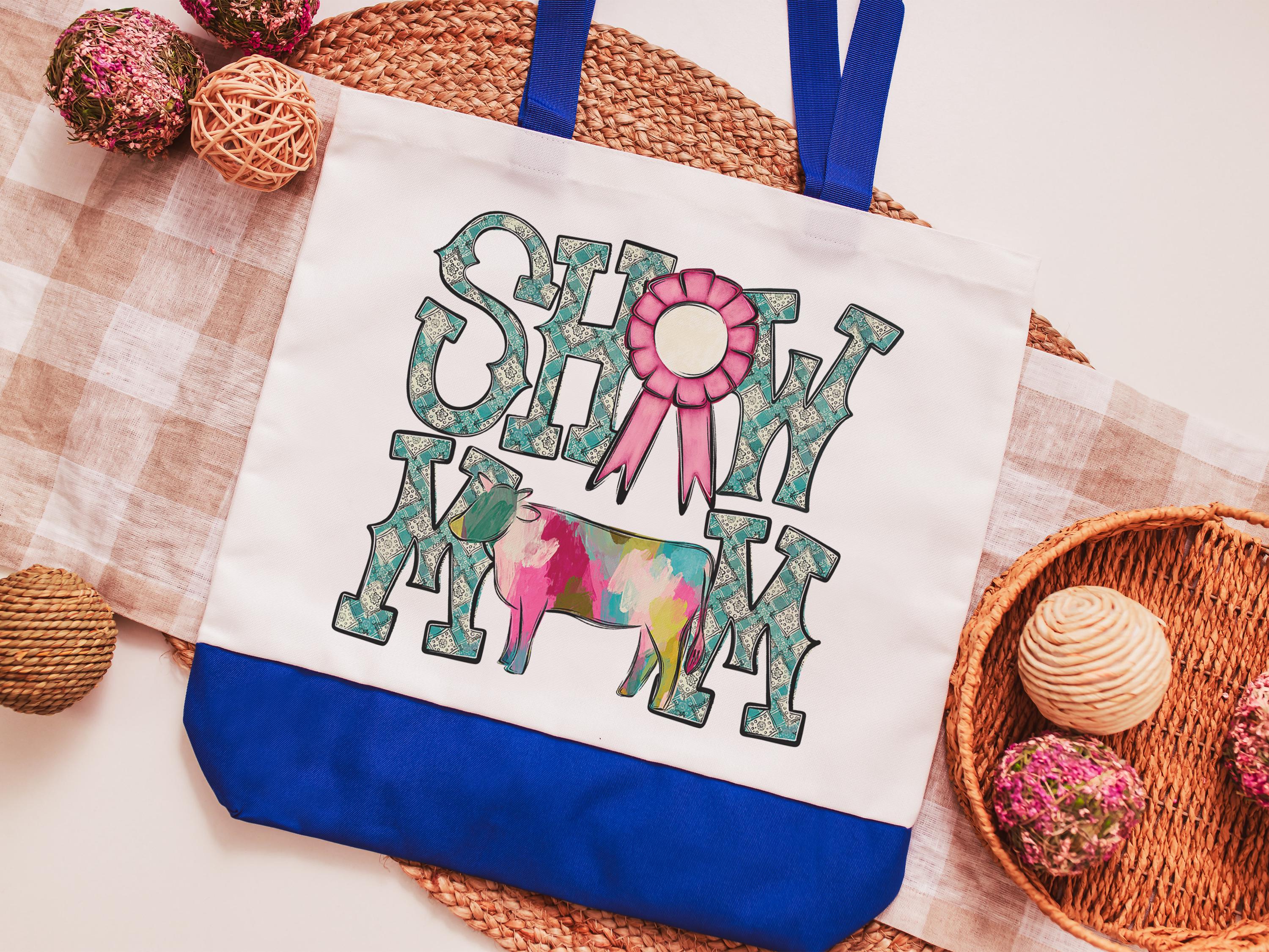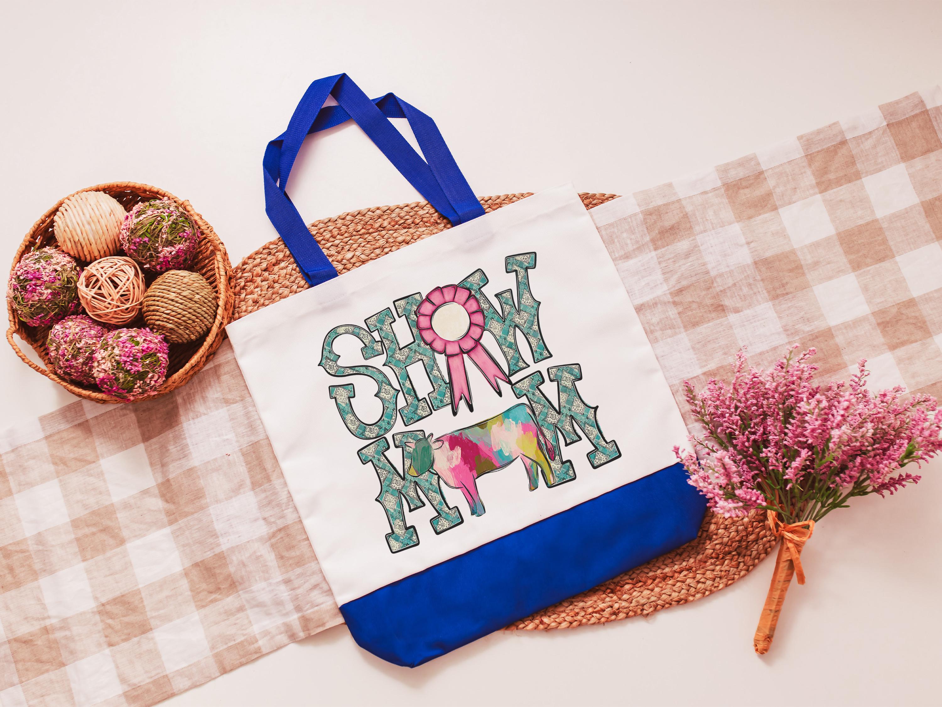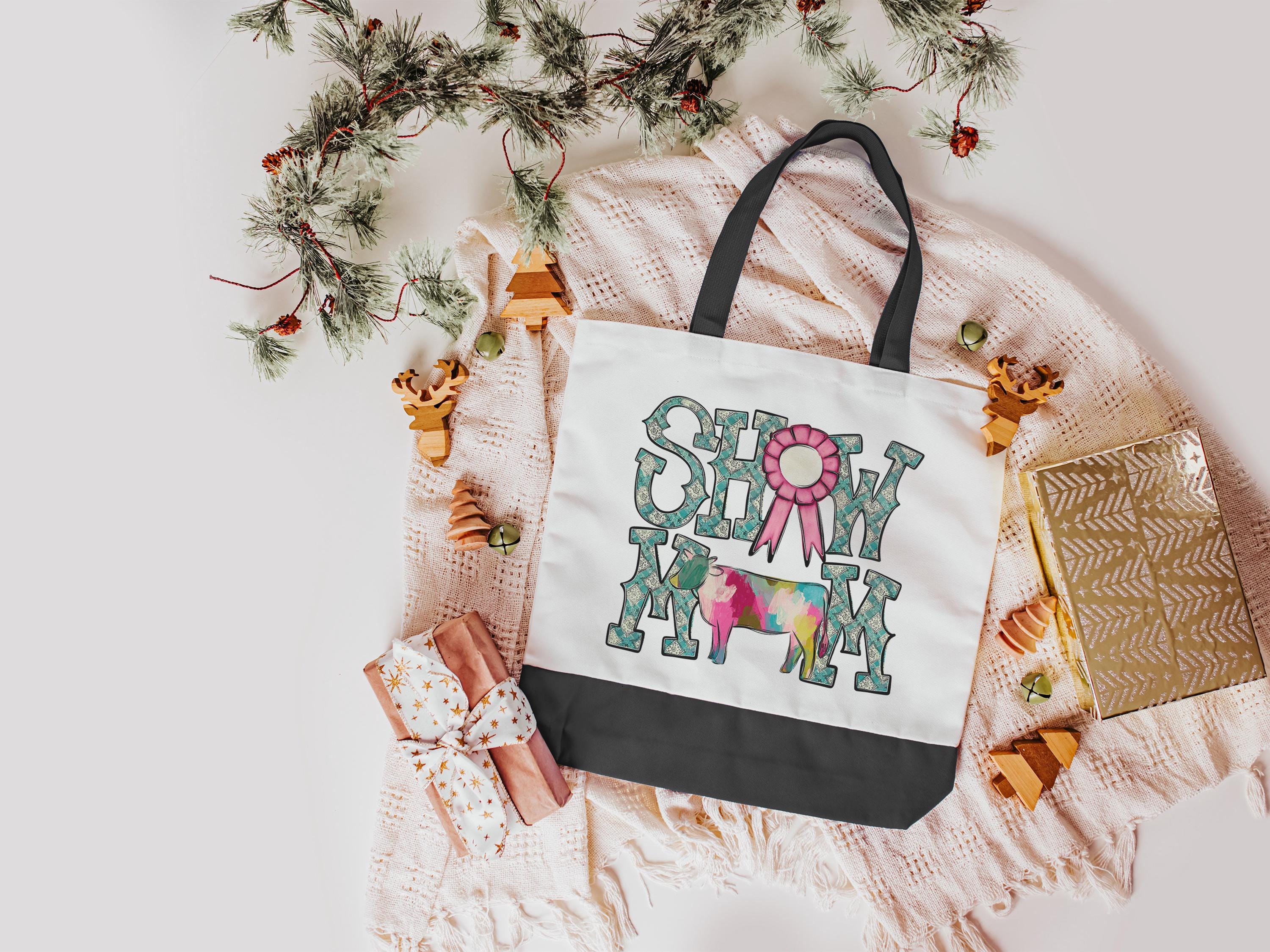 show mom cow tote bags for women, country girl gifts, farmers market bag, cow farmer Xmas gifts for farmers, Hereford cow gifts for cow