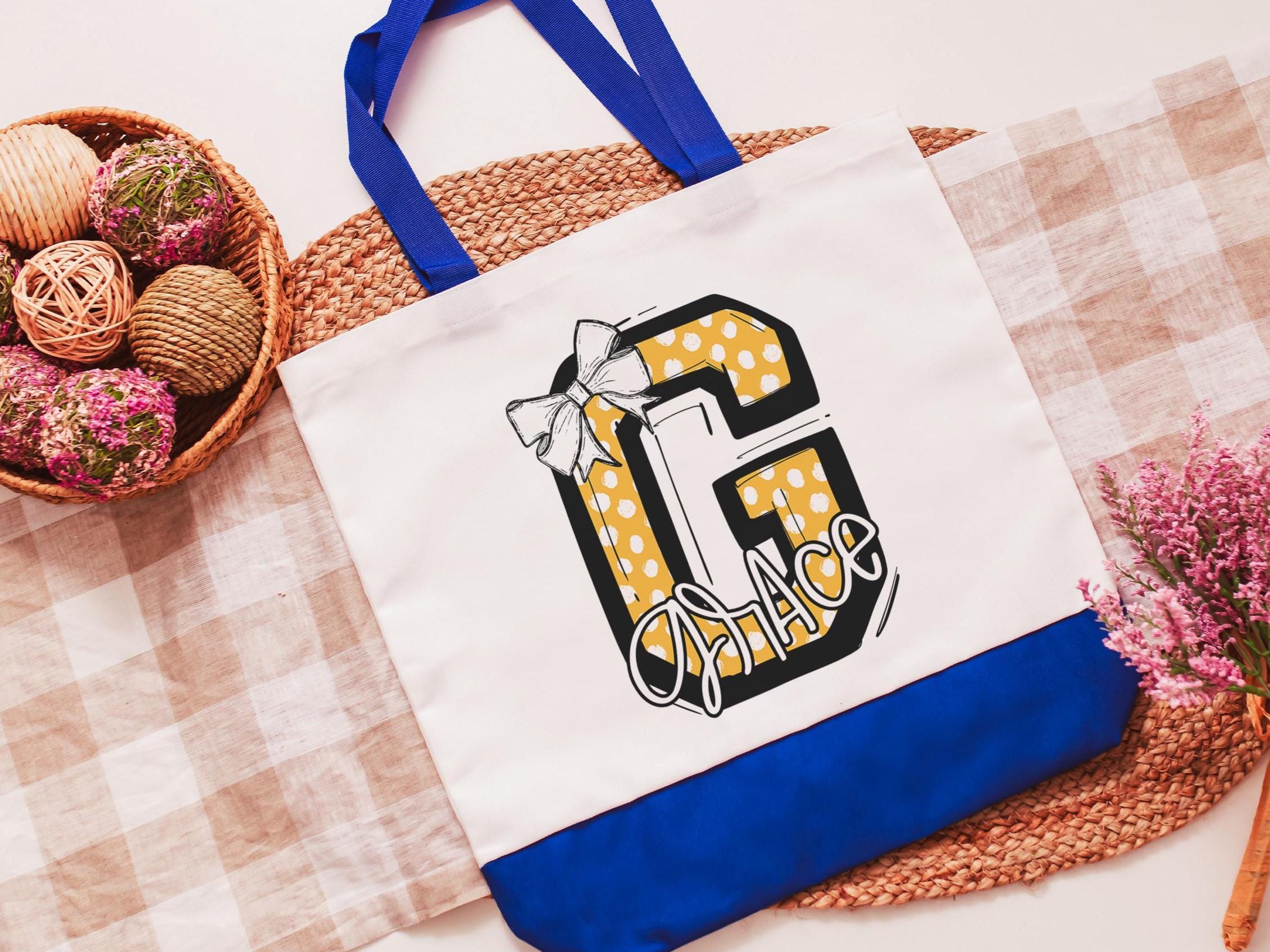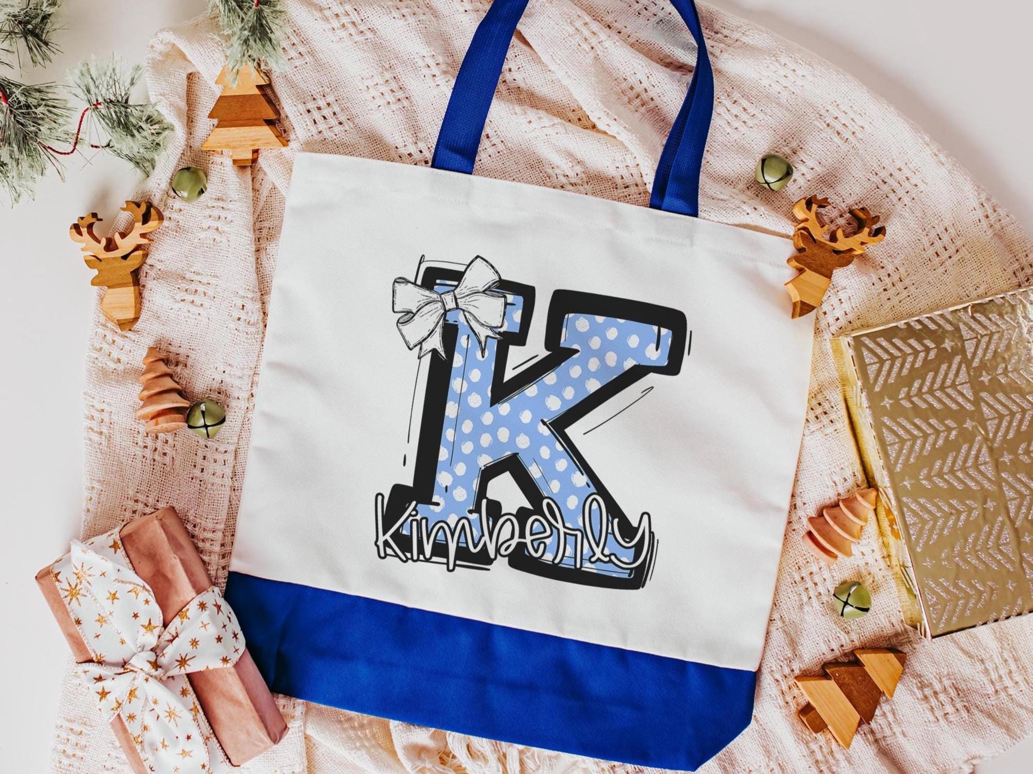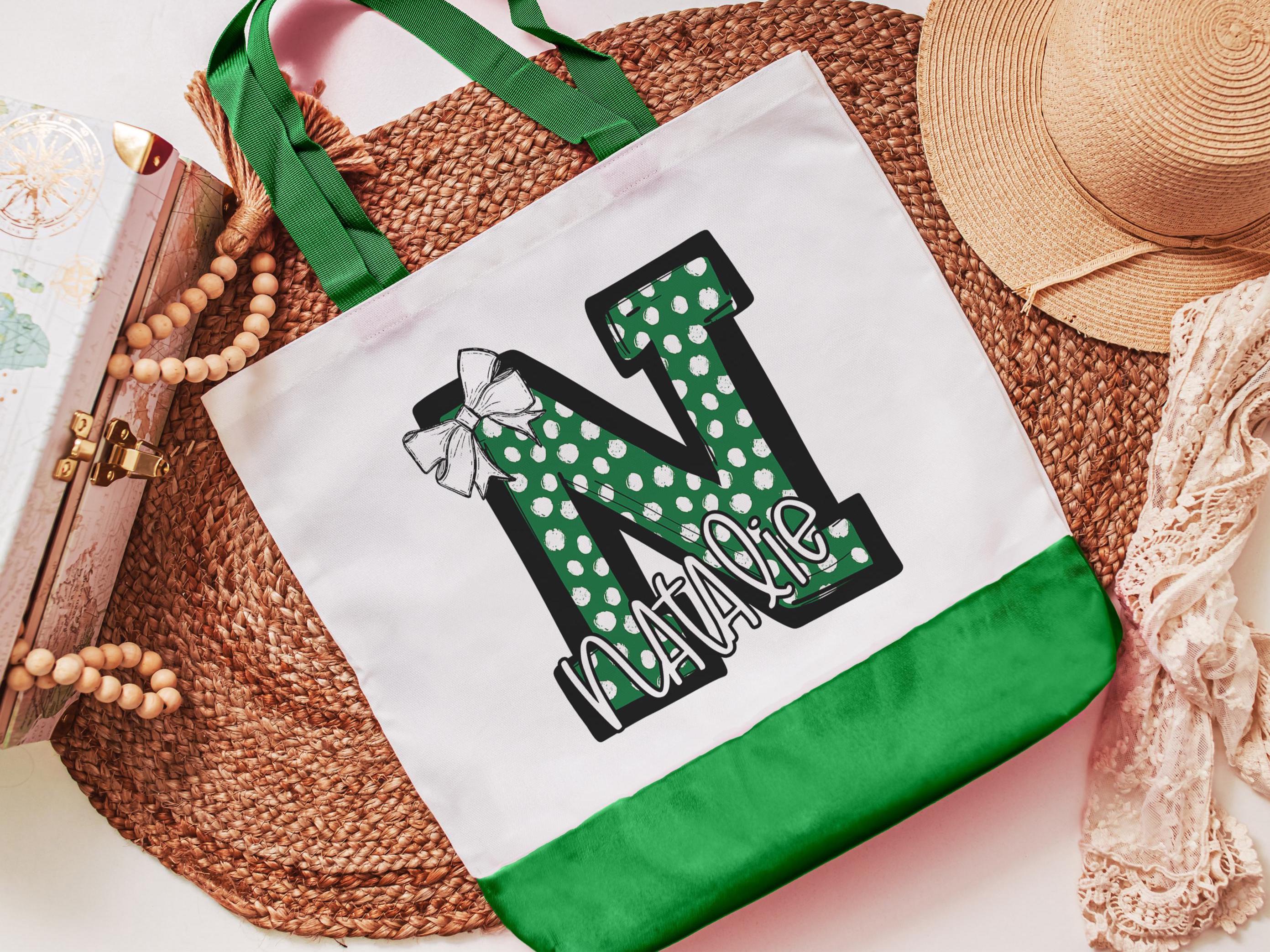personalized initial tote bag for girlfriend, green coquette Christmas gifts for cheerleaders, custom name tote book bag for girls, secret
