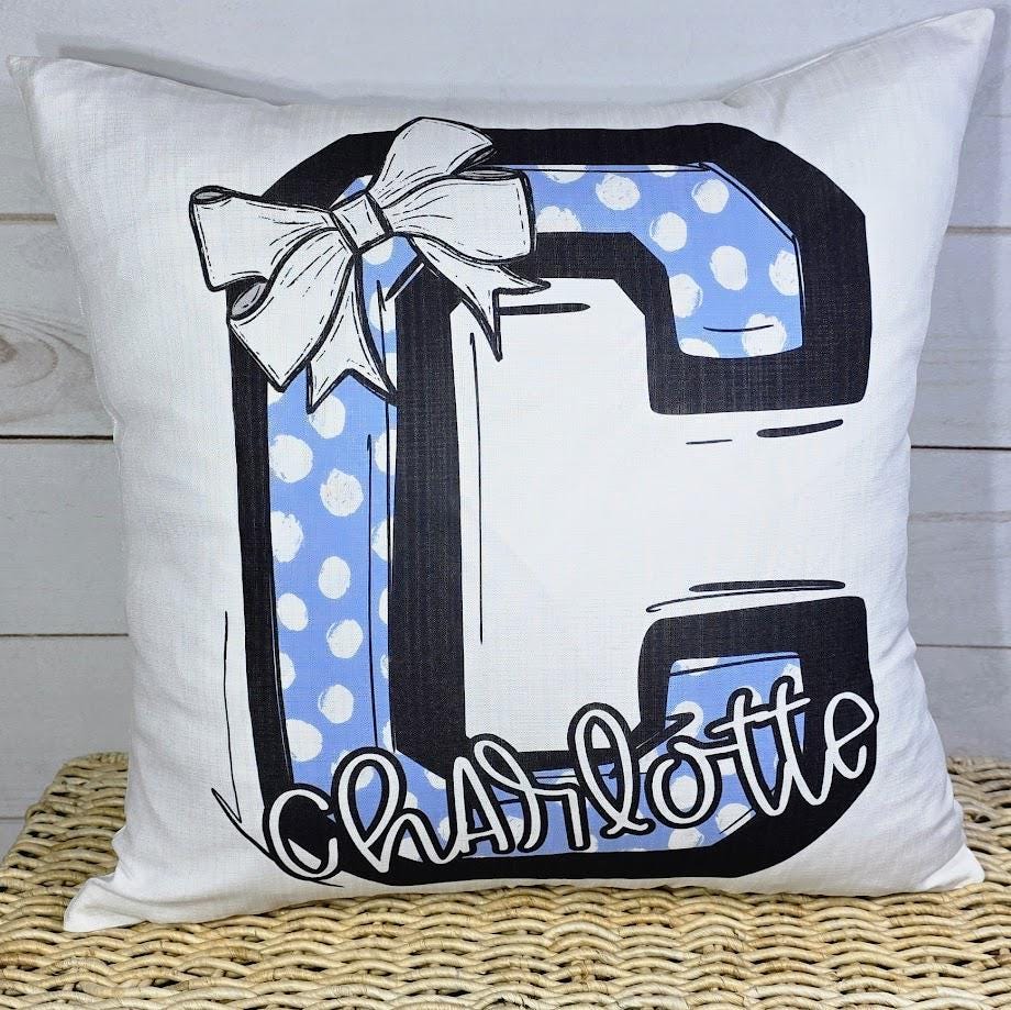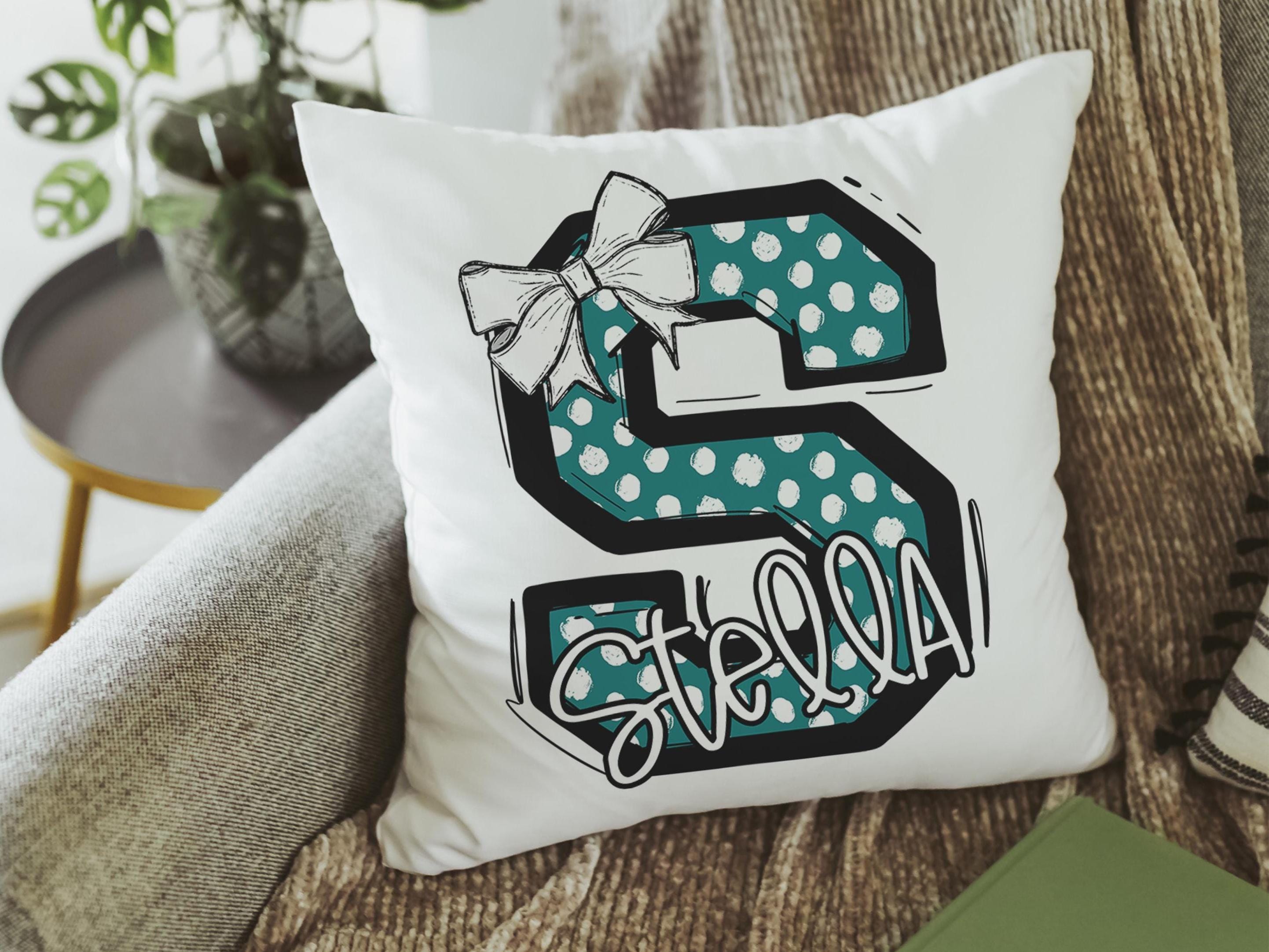 personalized initial throw pillows for little girls, best Christmas gifts for young women, white and teal name pillow cases for teens, dorm