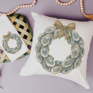 Bring seaside cheer to the season with oyster shell Christmas tree pillows and matching towel sets. Perfect for cozy winter decorating on the couch or in the kitchen, they make the best coastal Christmas gifts for neighbors or a beautiful holiday surprise. Available to purchase as throw pillows or towels, sold separately or as sets.