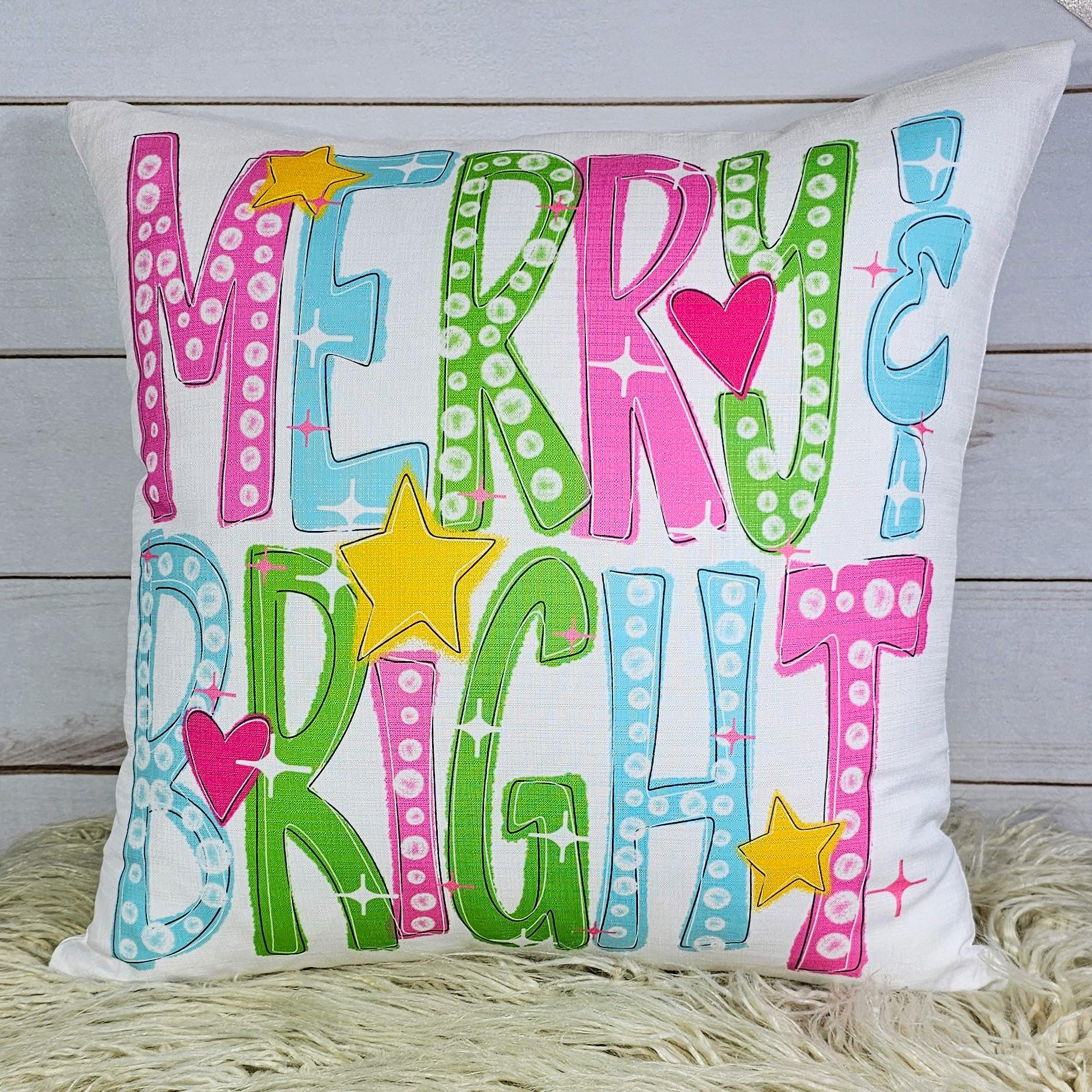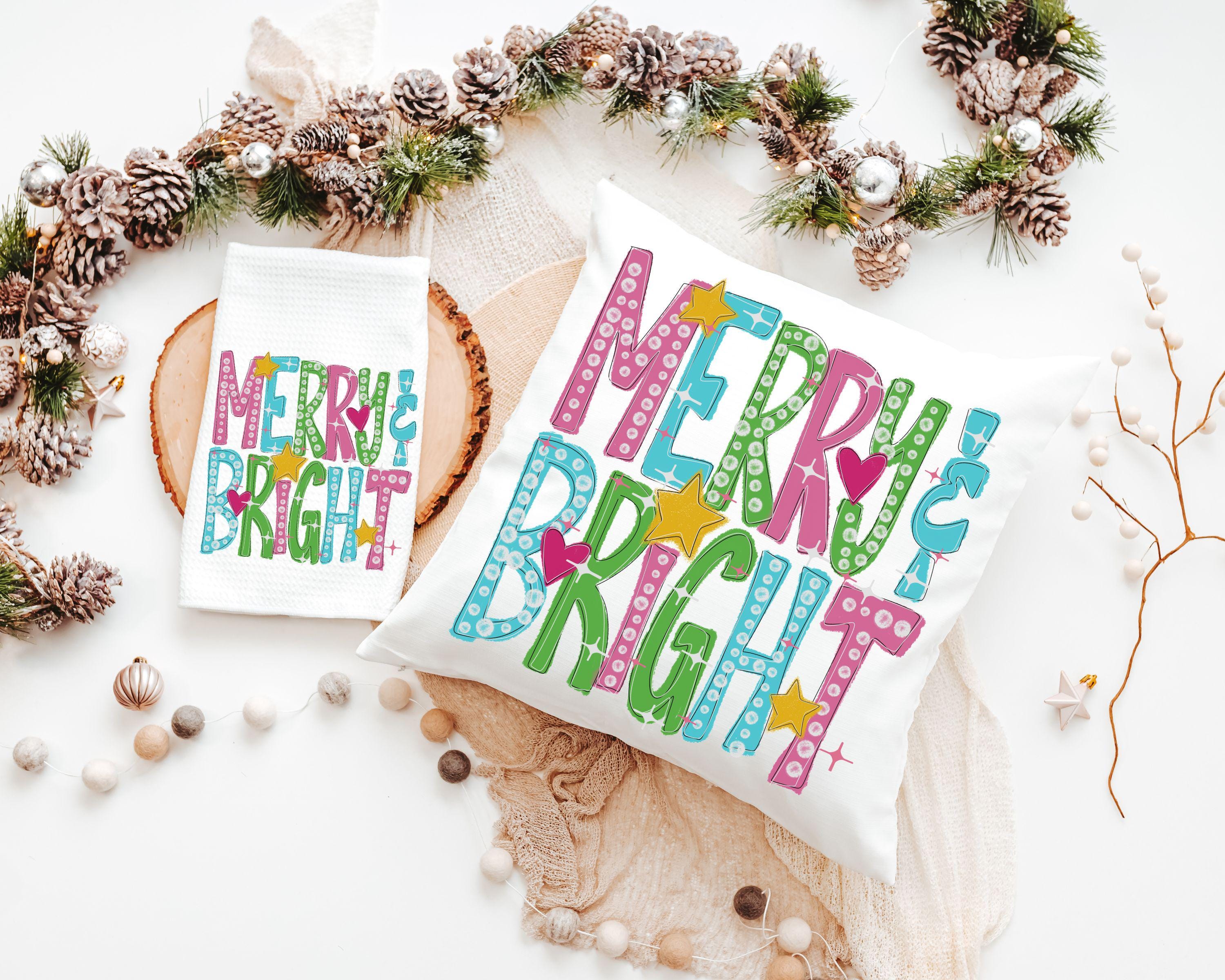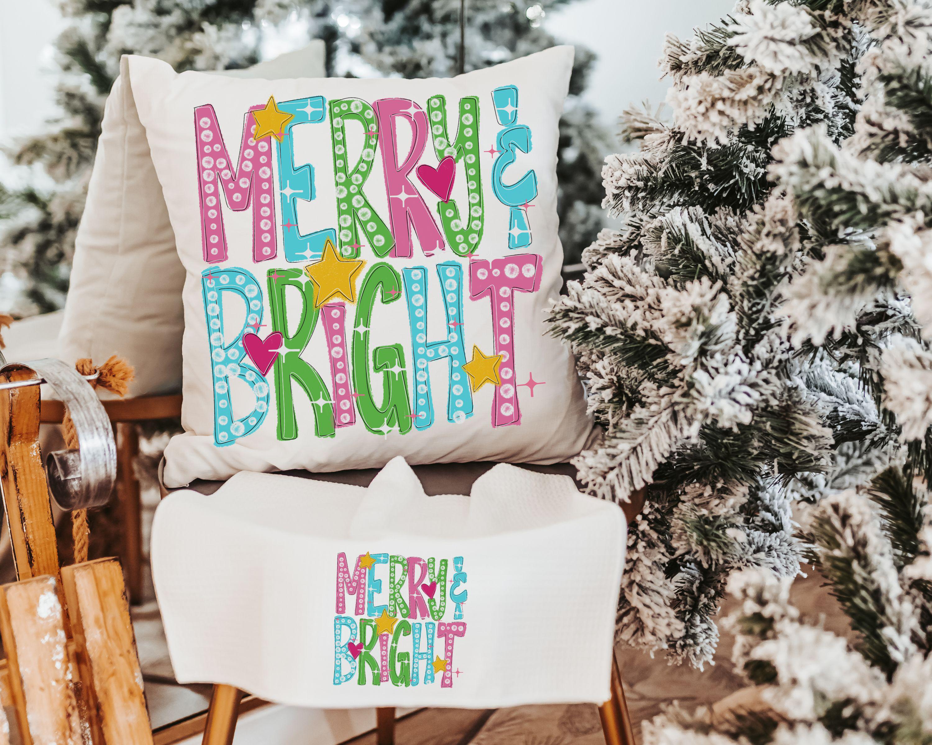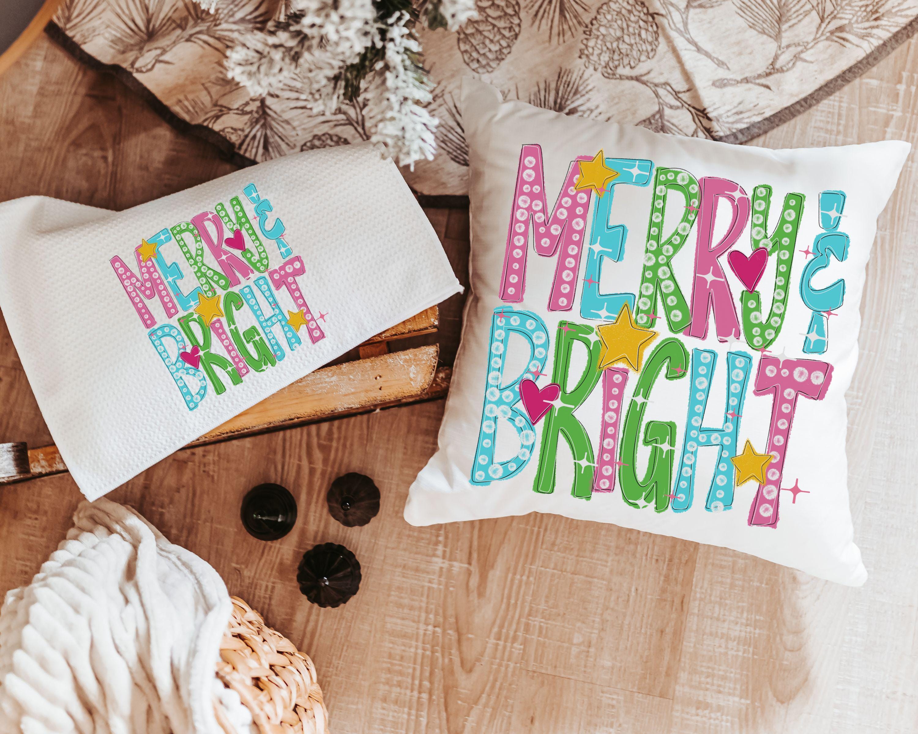 merry and bright holiday throw pillows for couch, colorful Christmas decorative pillows for bed, trending Christmas gifts for new homeowners
