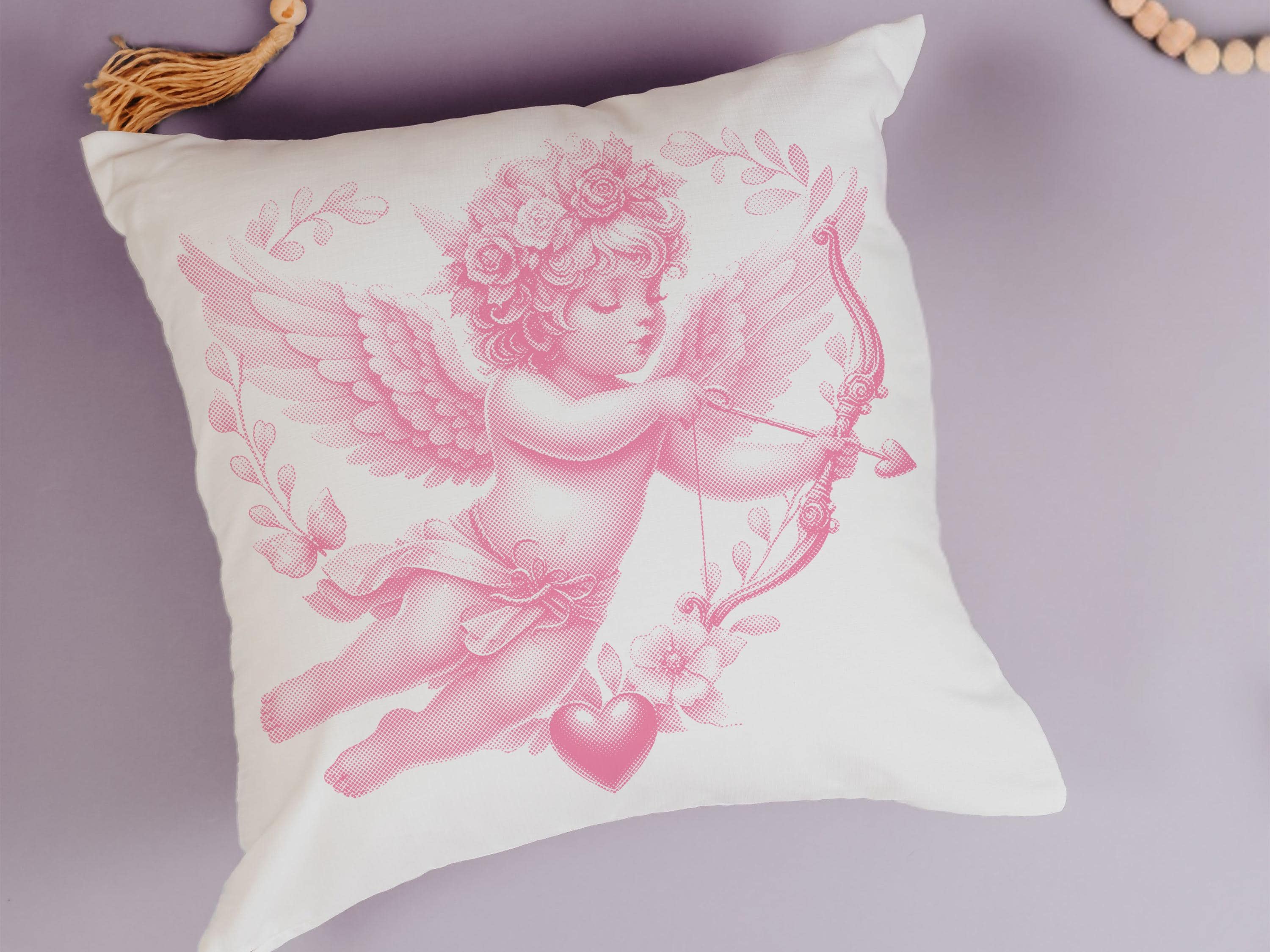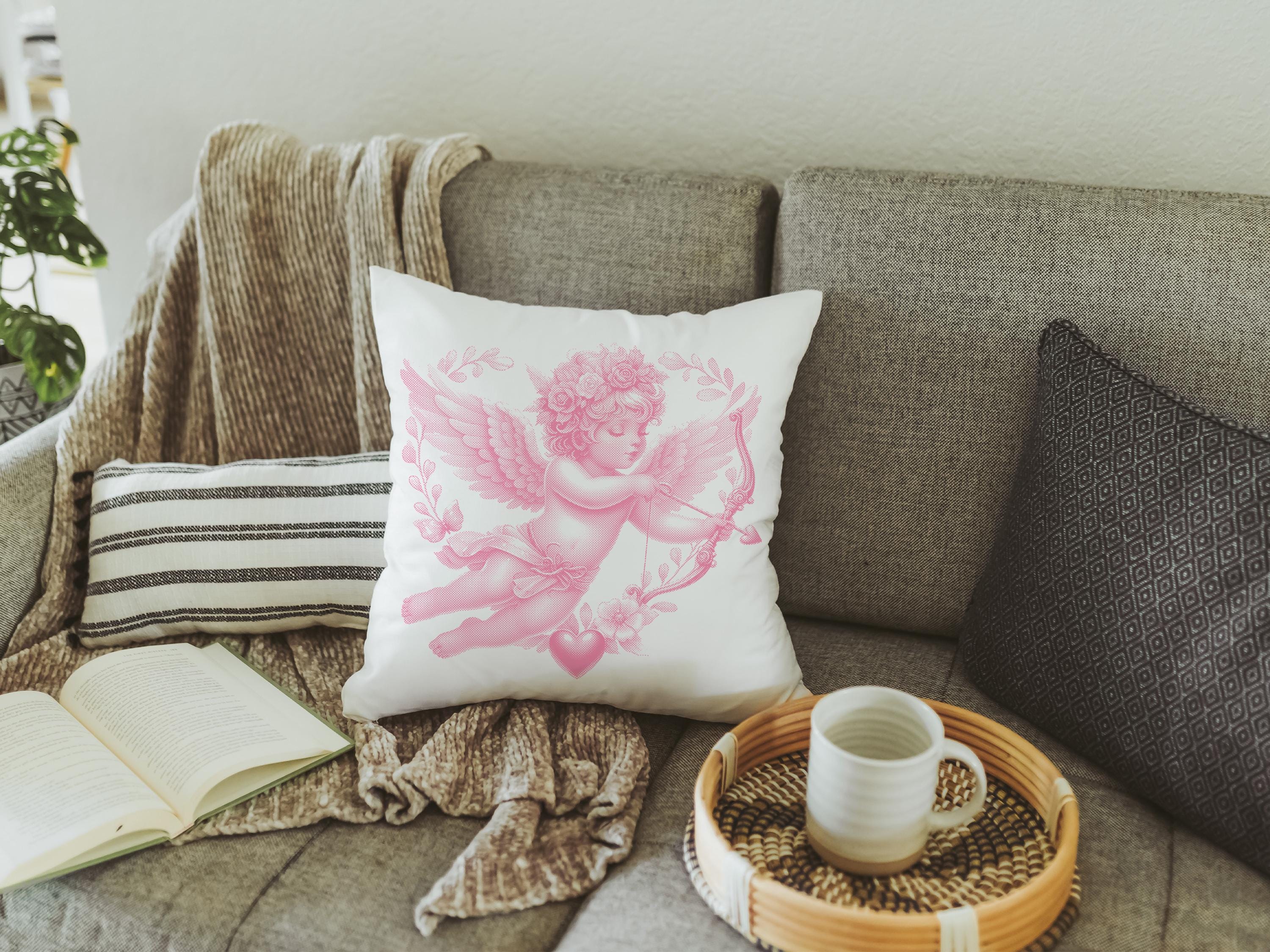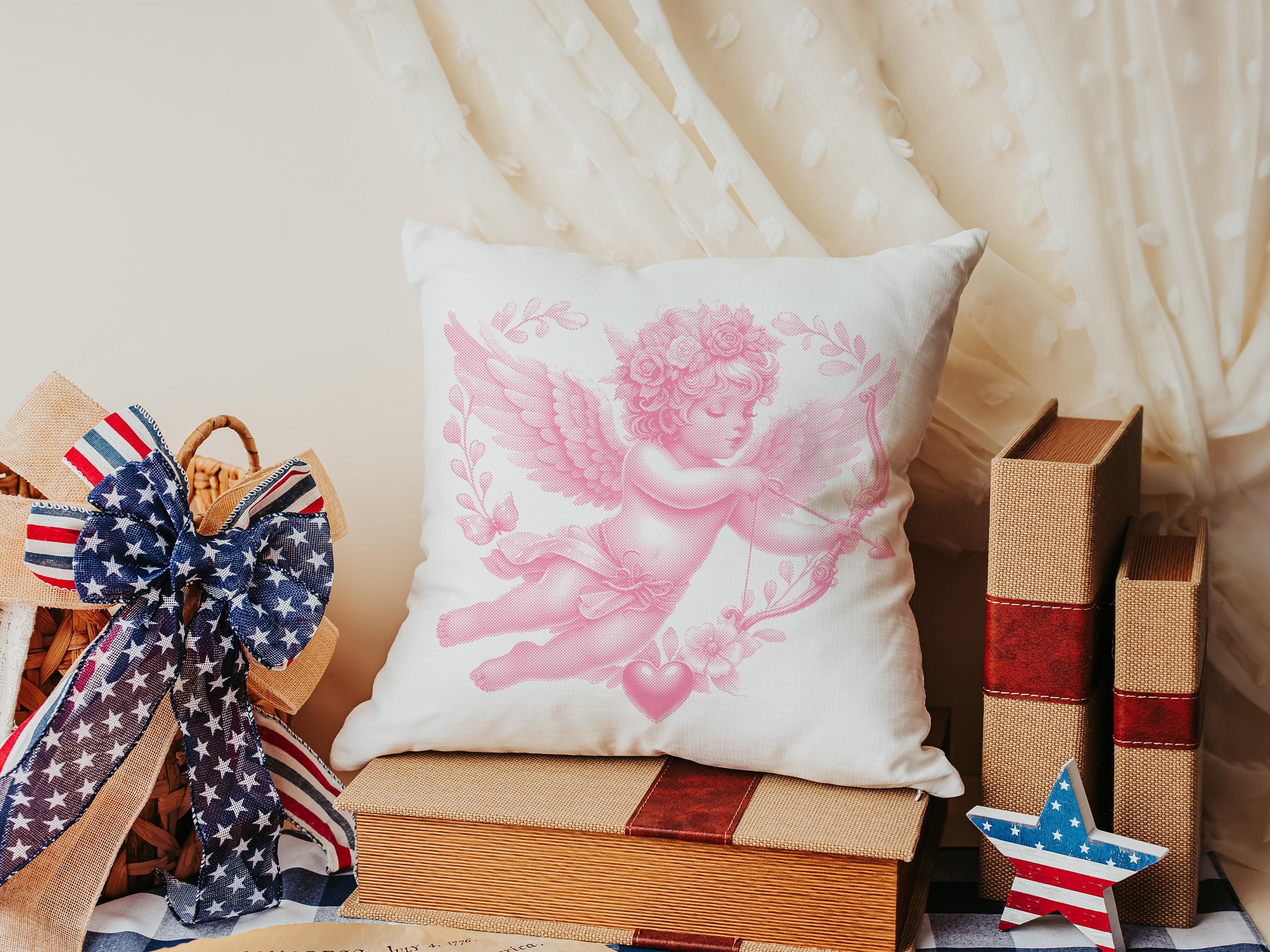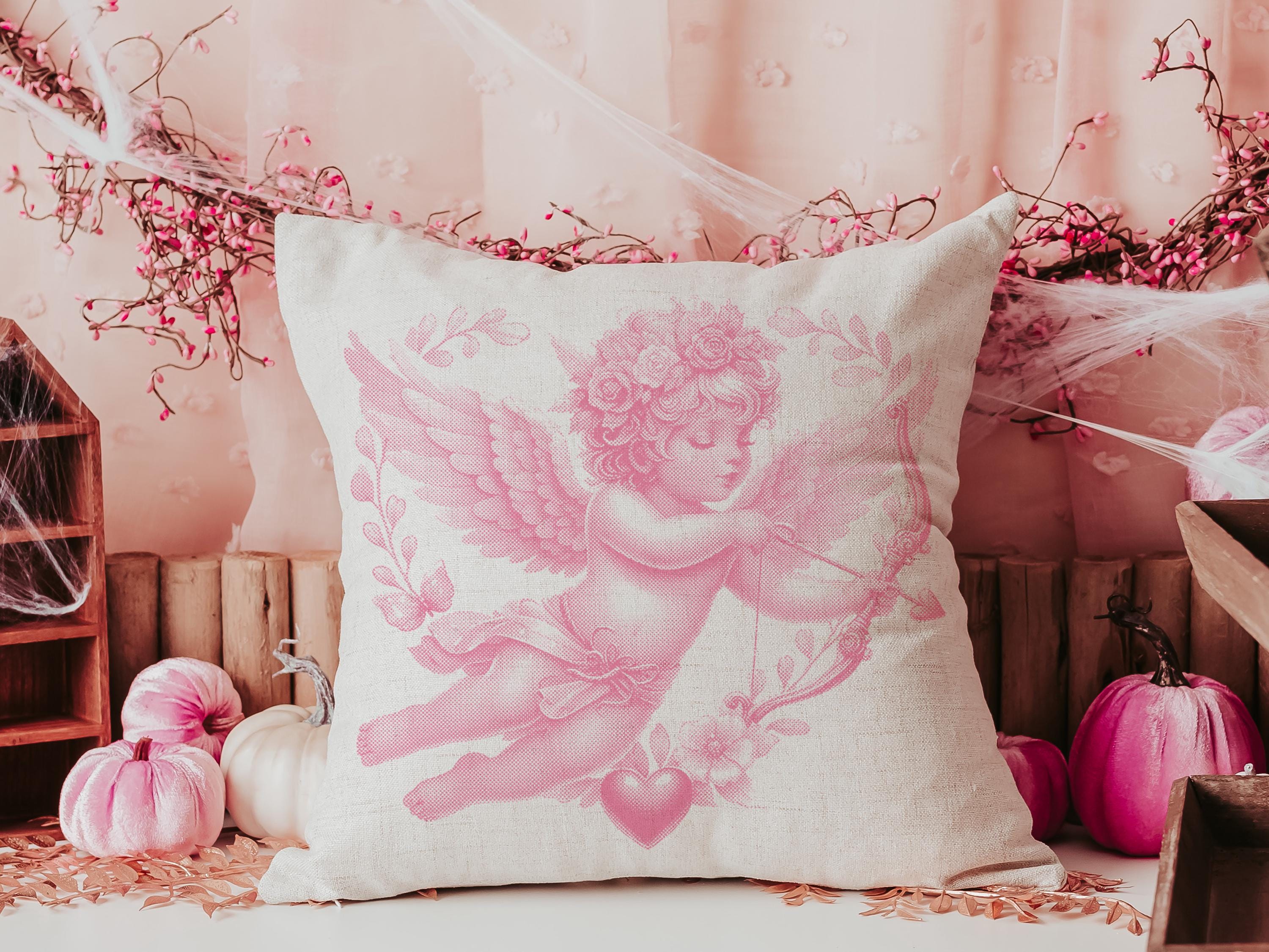 baby pink cupid coquette Valentines throw pillow covers 18x18, Galentines day gifts for friends, Valentines day decorative pillows for girls