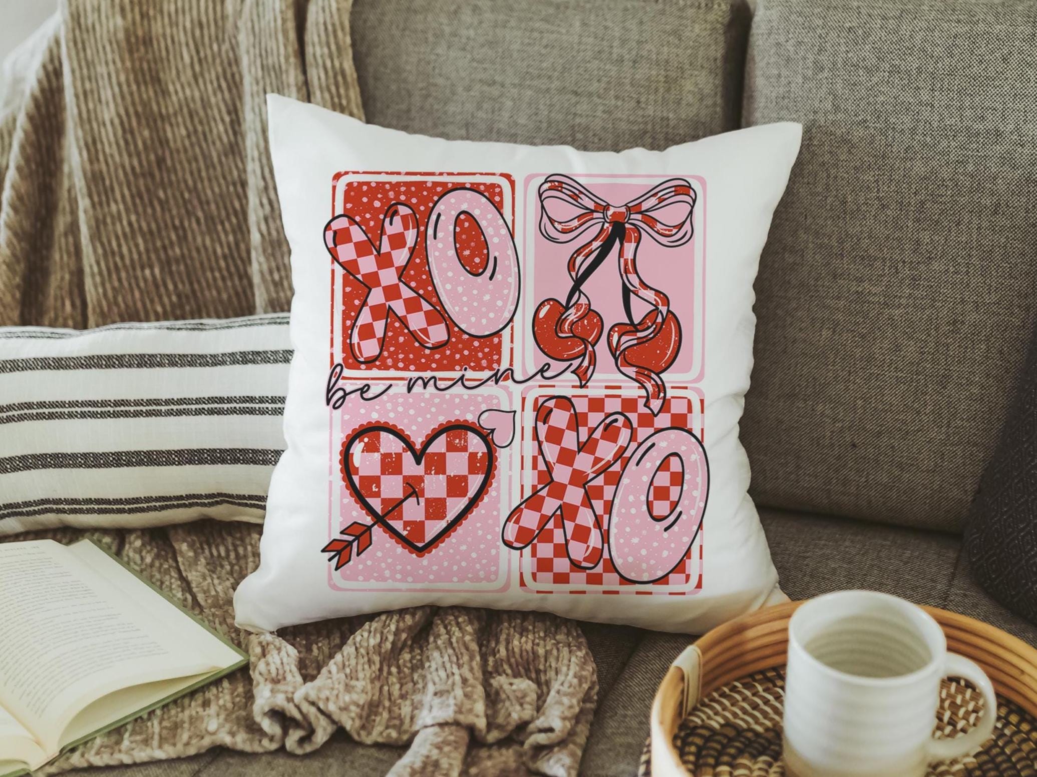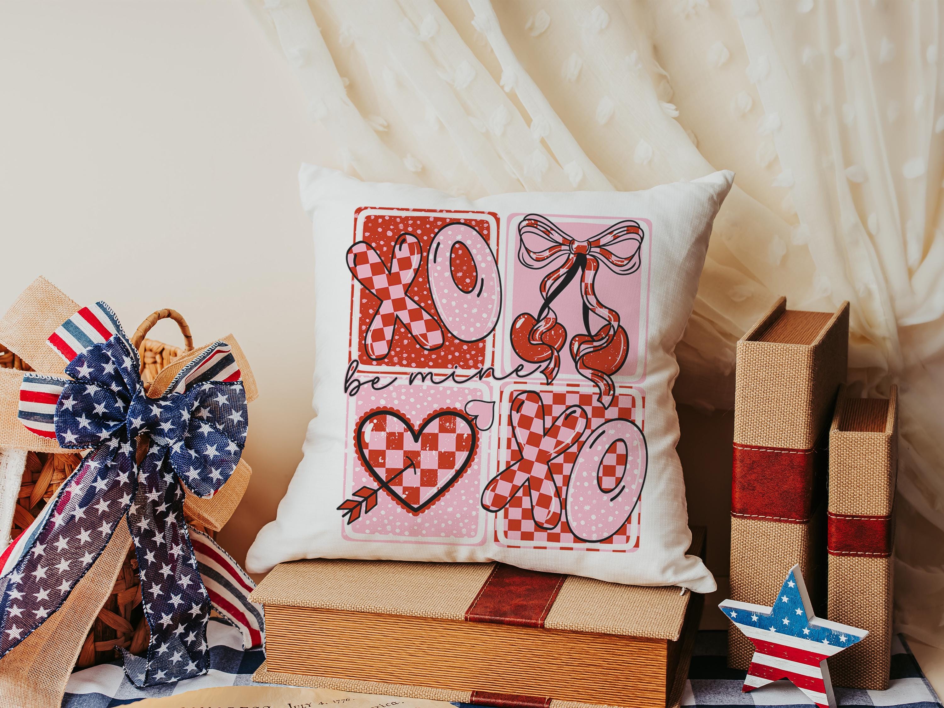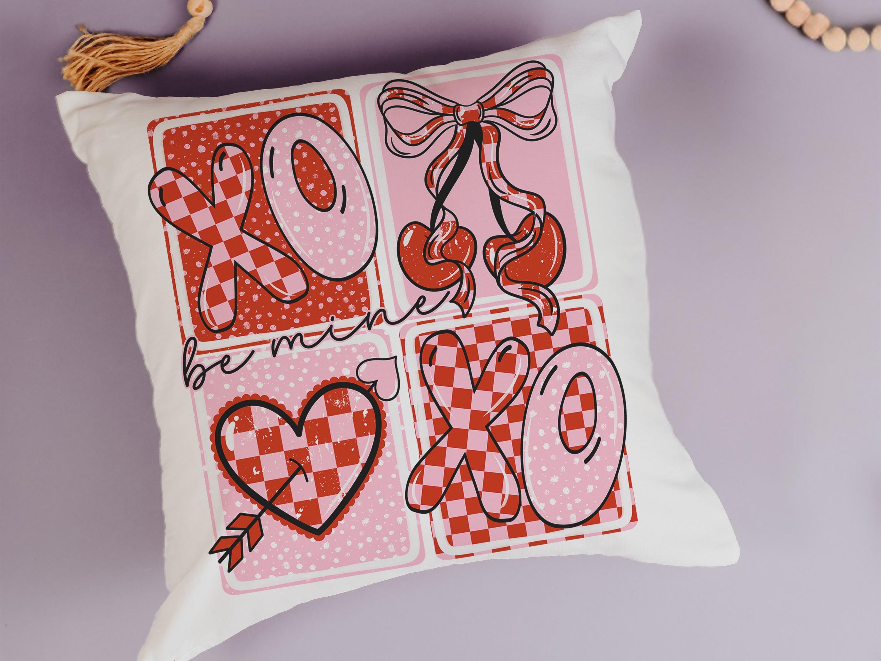 be mine throw pillows for couch red and pink checkered cherry decor, xoxo Valentines Day decorative pillow covers 18x18, Galentines day gift