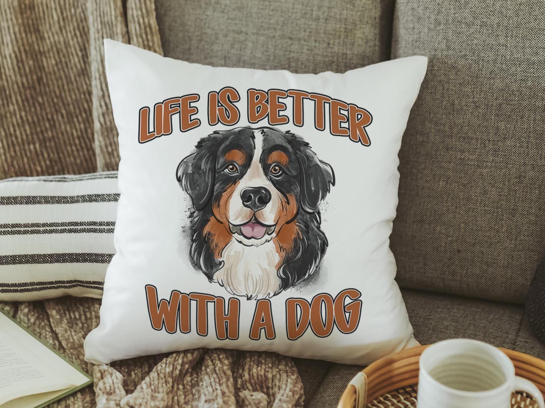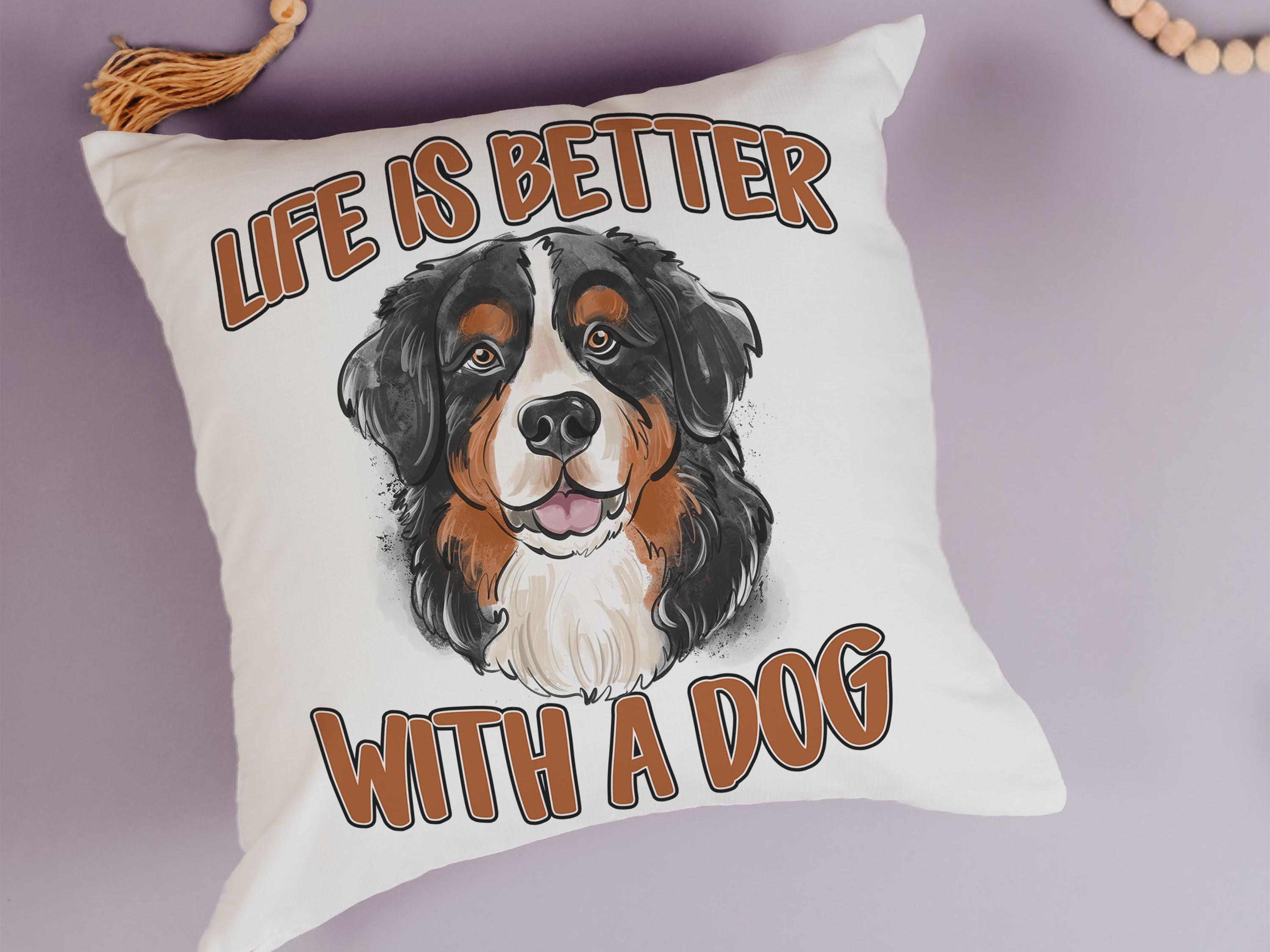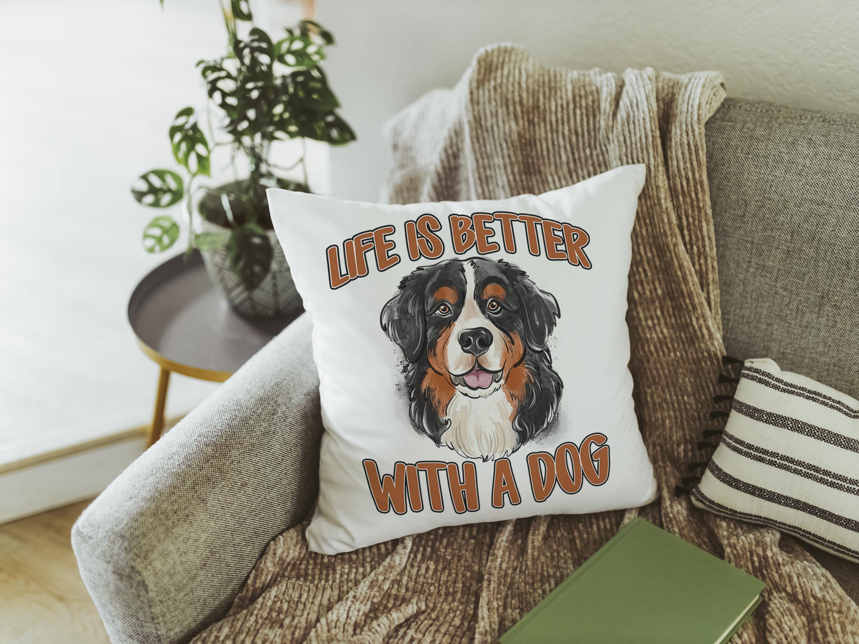 Life is better with a dog throw pillows for sofa, bernese mountain dog gifts, dog lover gift for women, berner decor, cute dog gifts for