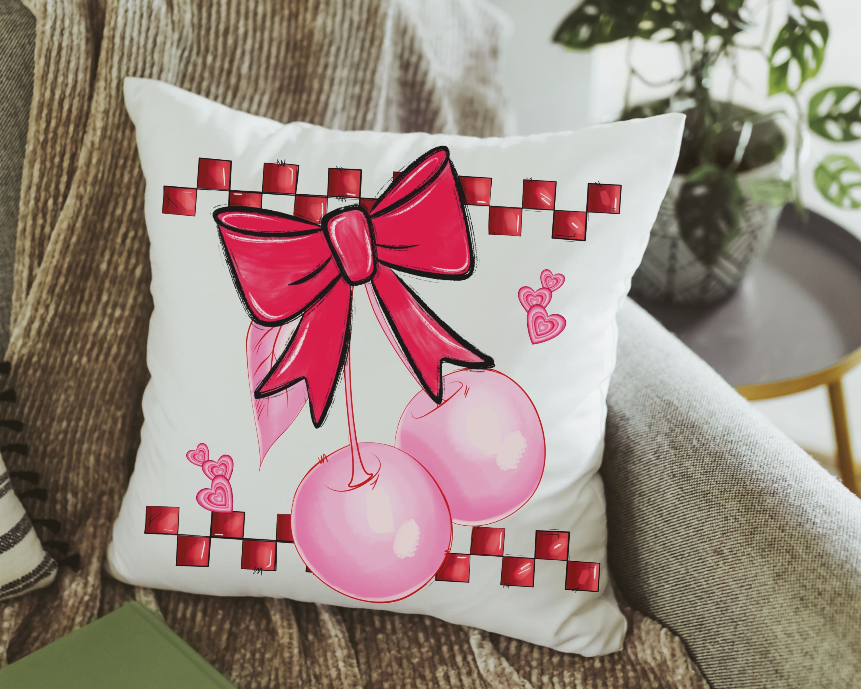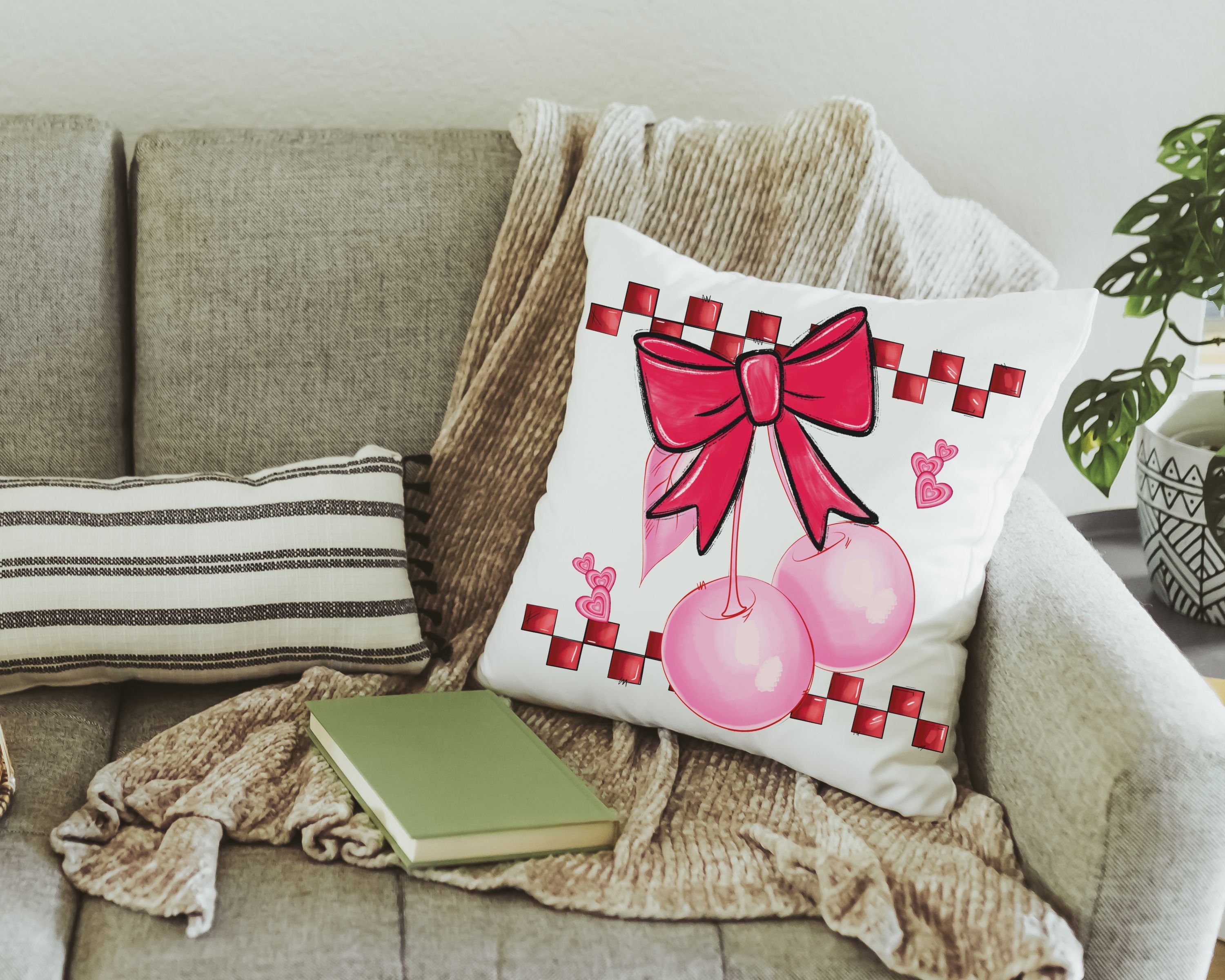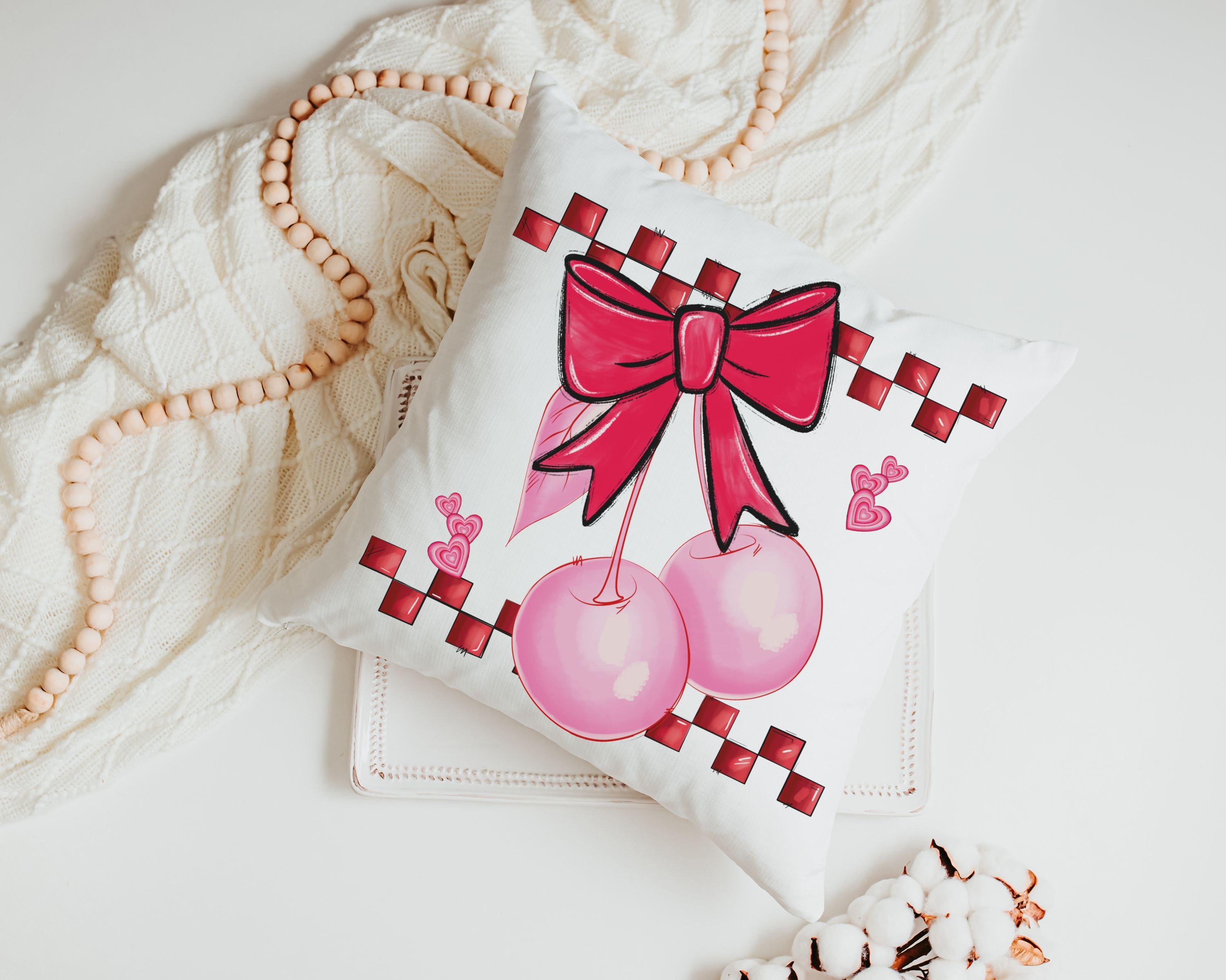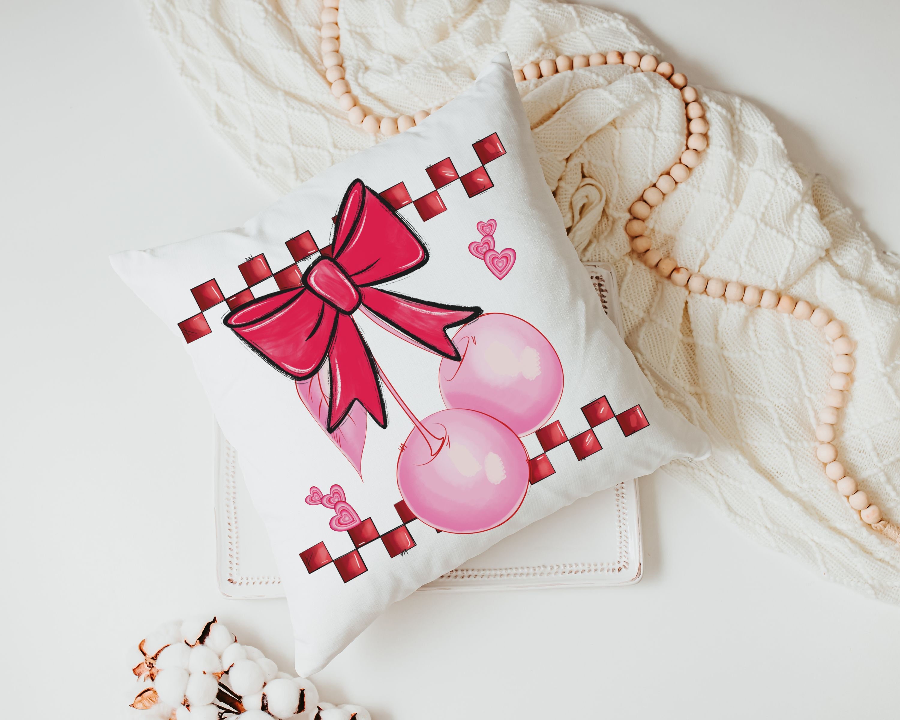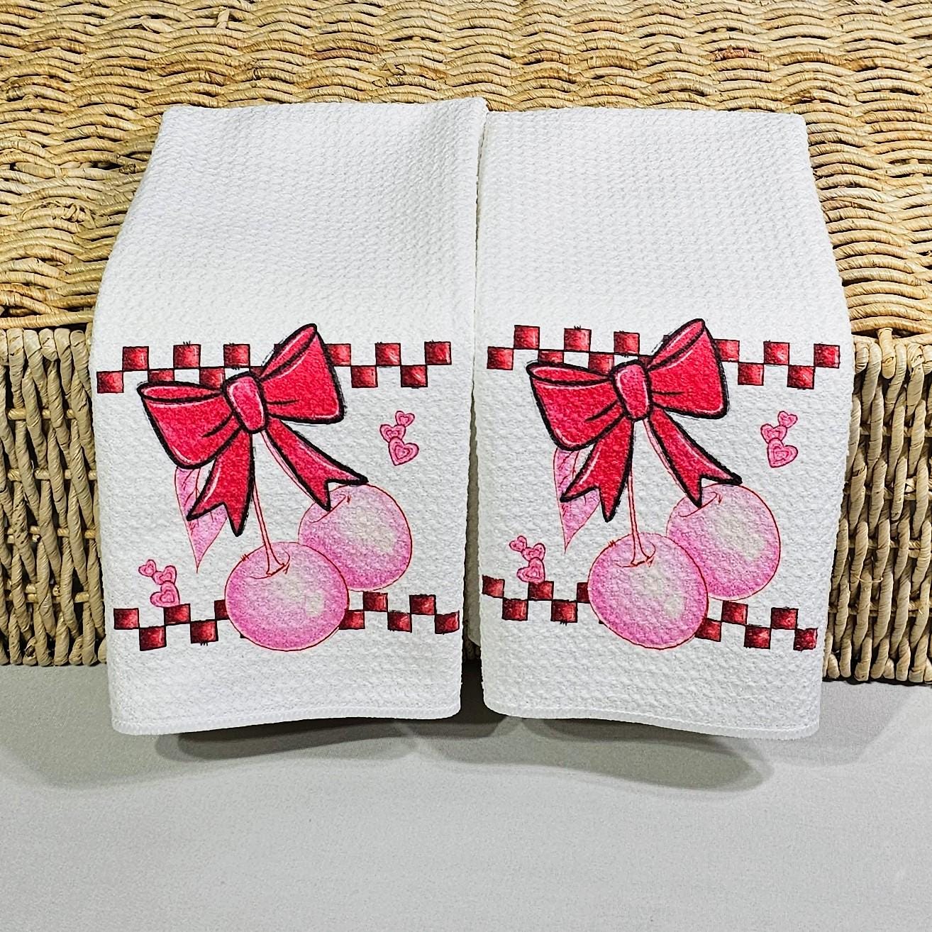 Add a touch of retro style with our cherry bow coquette kitchen towels and matching throw pillows—perfect for the kitchen, bedroom or powder room. With 1950s-inspired rockabilly vibes, this fun design makes a sweet Valentine gift for a girlfriend, bestie, or anyone setting up a new apartment.