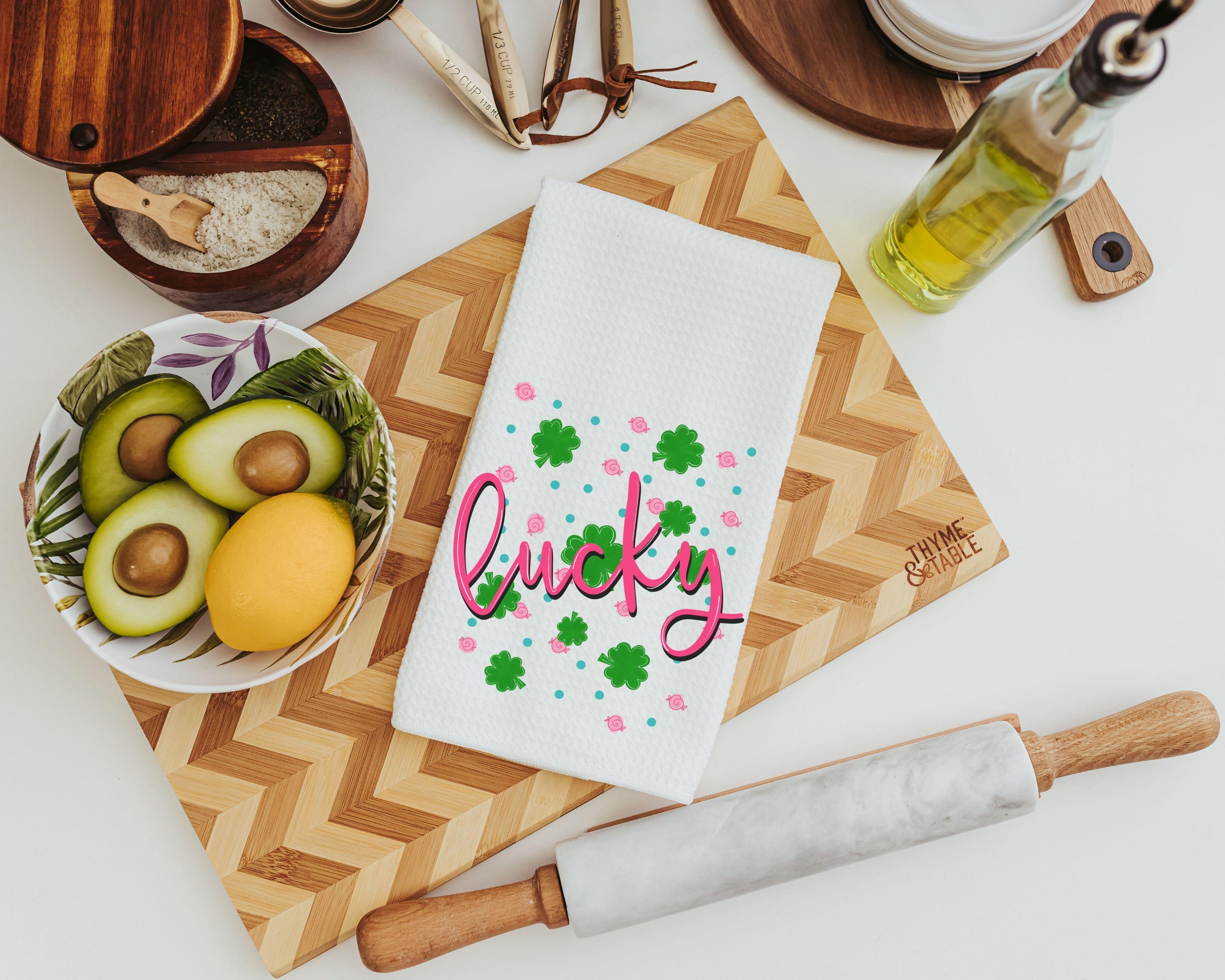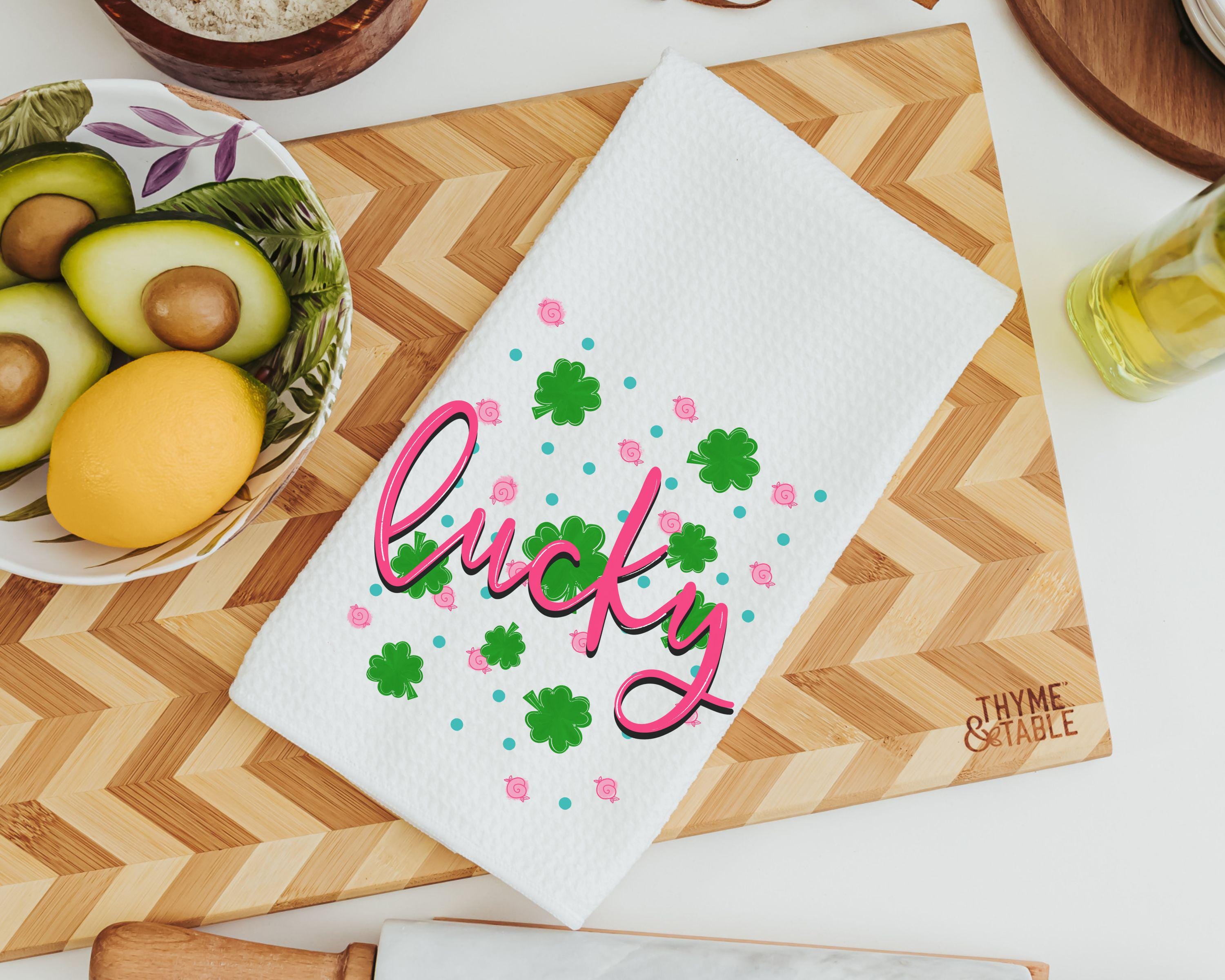 A stylish St. Patrick’s Day refresh for a couch or kitchen, with throw pillows and matching towels that carry the look from room to room. Hot pink Lucky Vibes paired with green shamrock details keeps it fun. A great Irish-inspired gift for friends, Mom, or women who love standout seasonal decor.