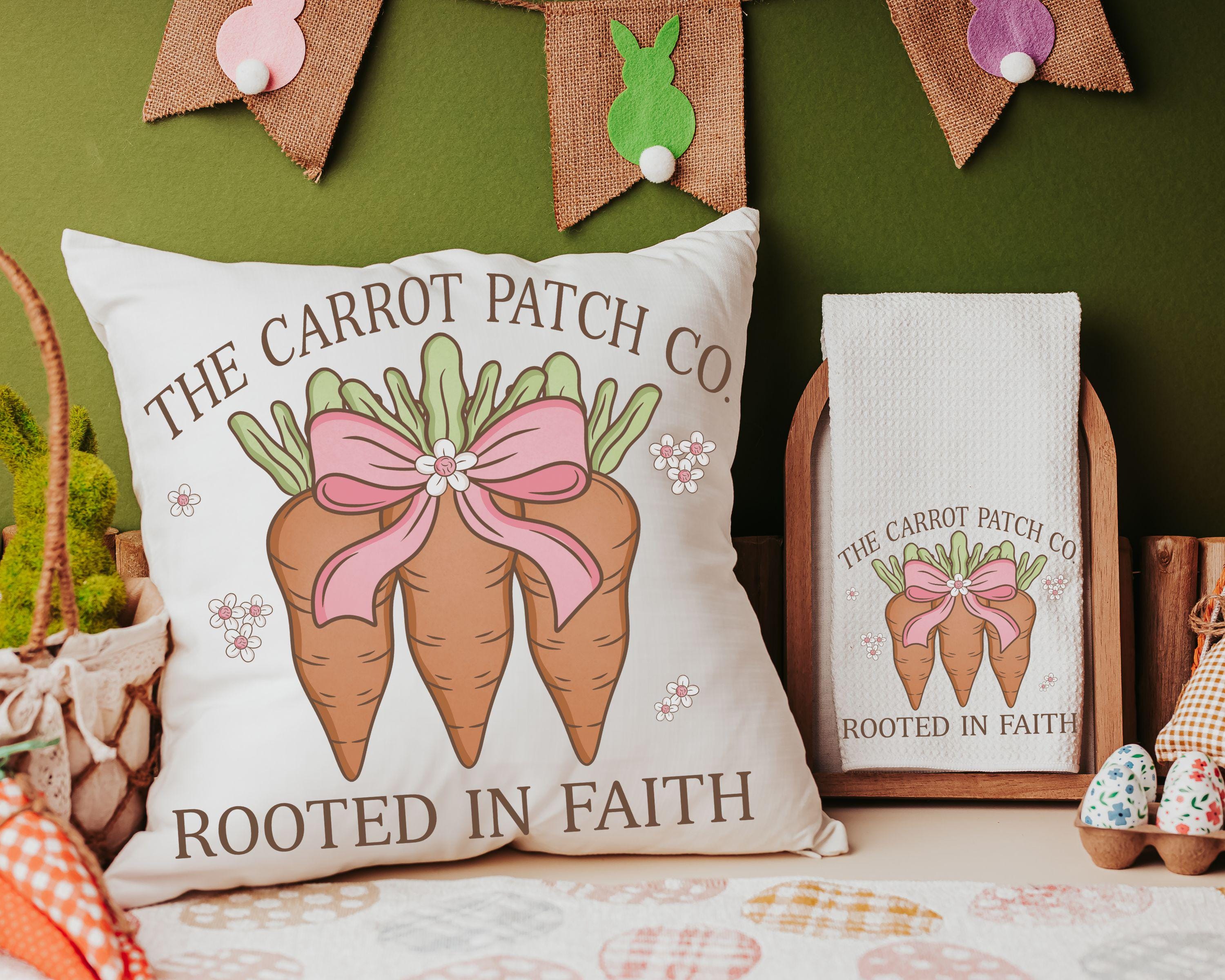 A fresh spring update for the kitchen or guest bath, with coordinating towels and throw pillows that make gifting simple. Rooted in Faith paired with carrot patch details fits nicely for Easter, gardening season, or everyday decor. A thoughtful gift for women who enjoy faith-inspired and garden-style home touches.
