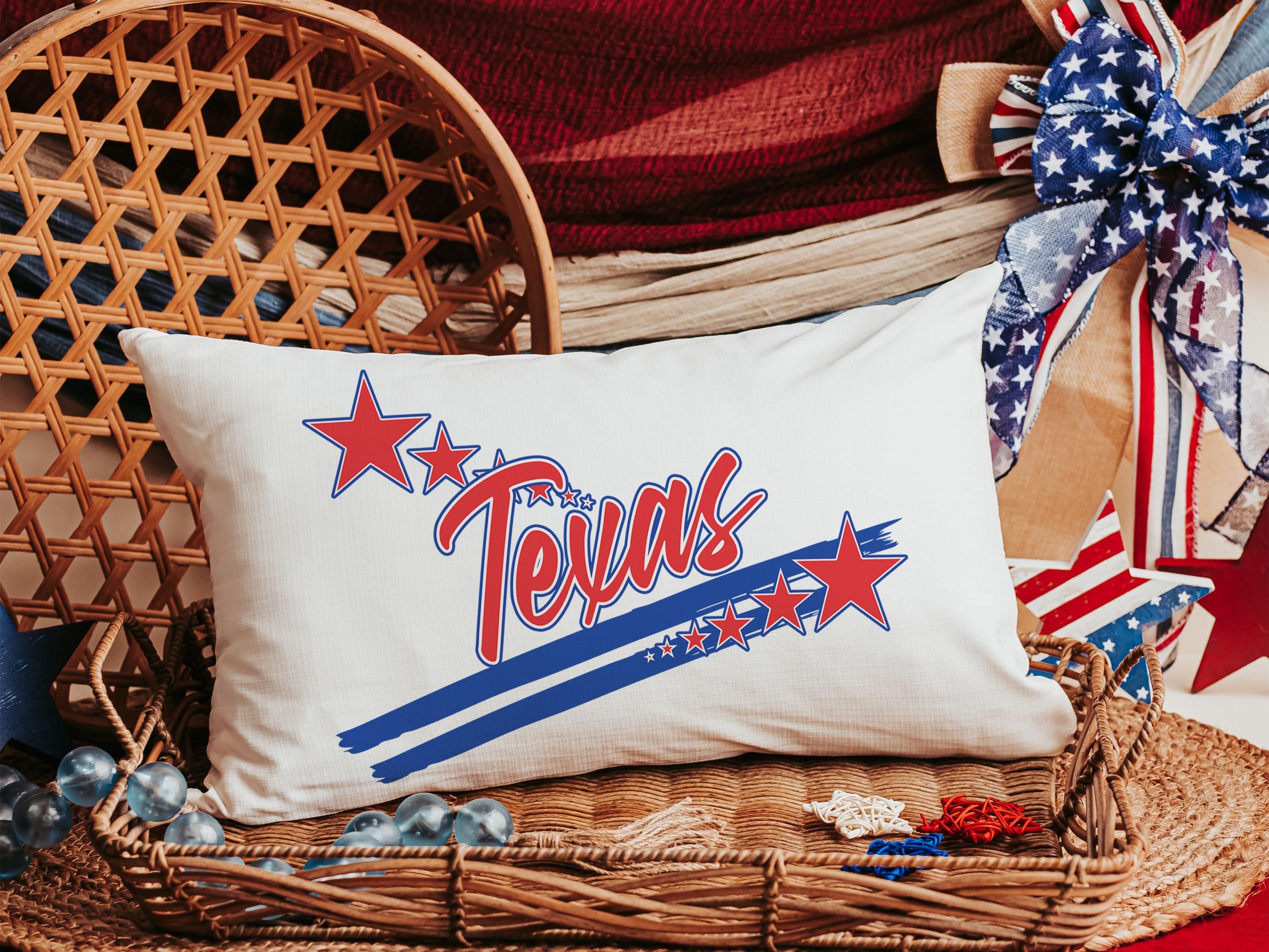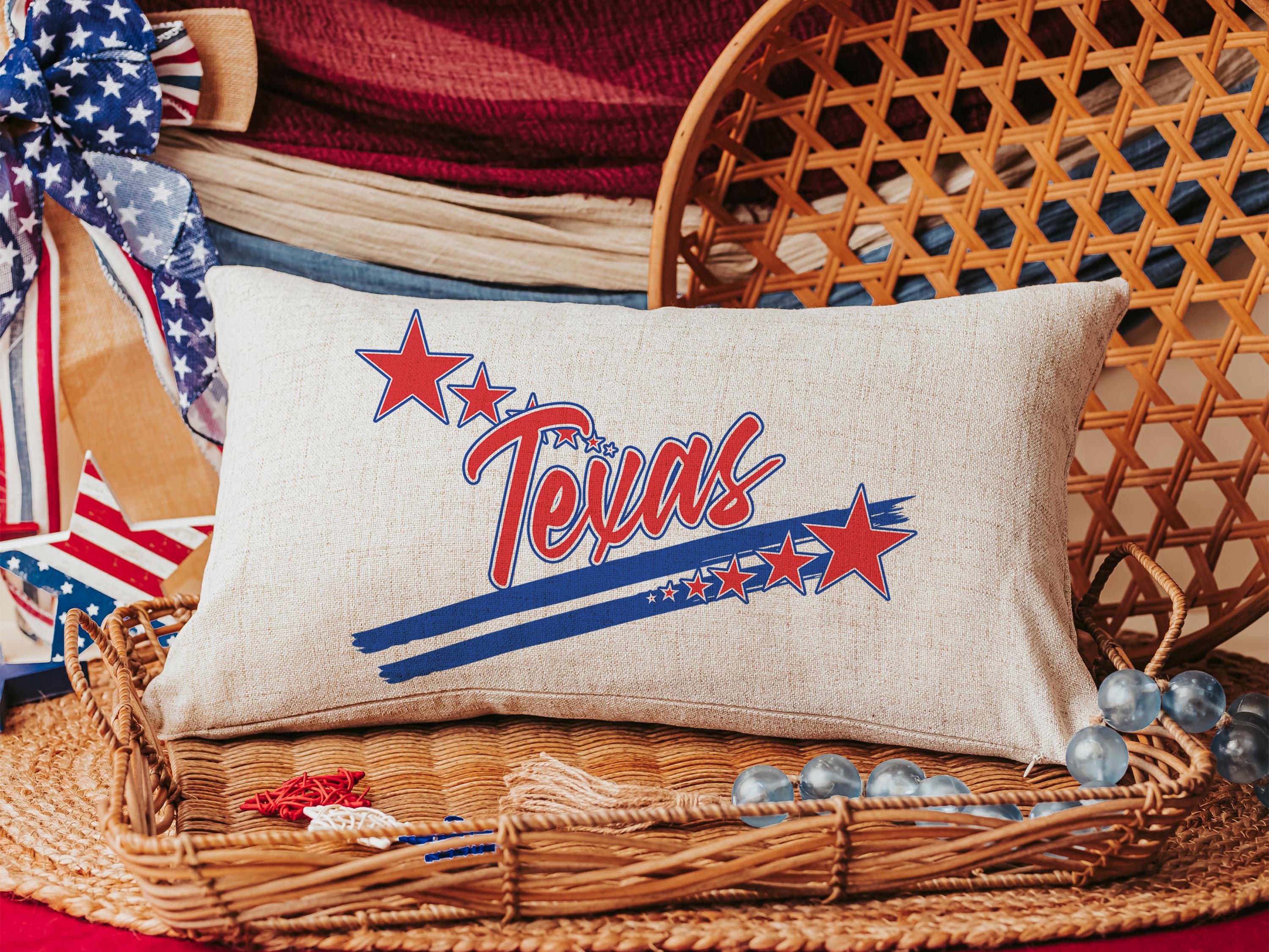 Custom Texas patriotic lumbar pillow for couch, TX gifts, red white and blue decor, college gifts for her, college dorm decor, for realtors