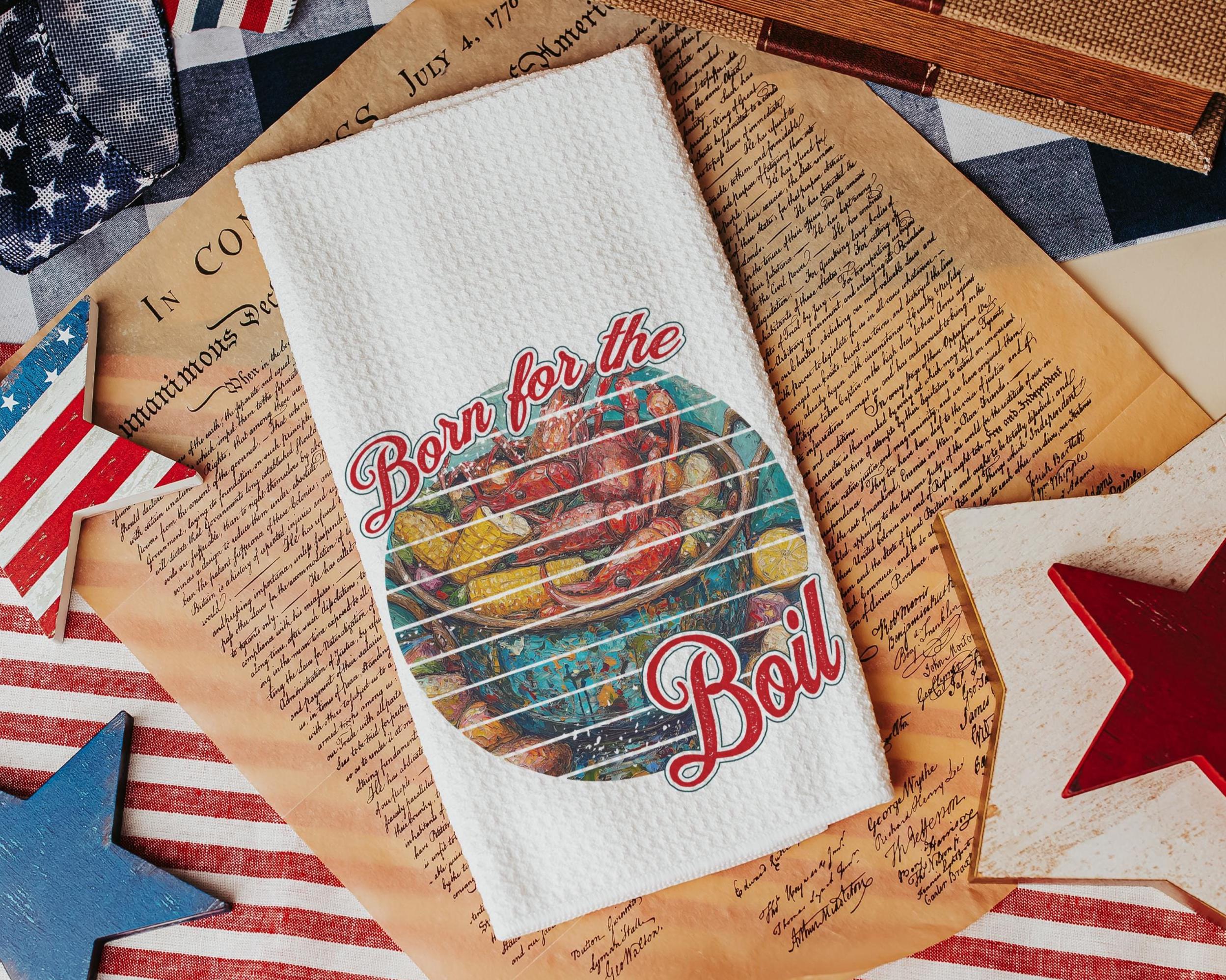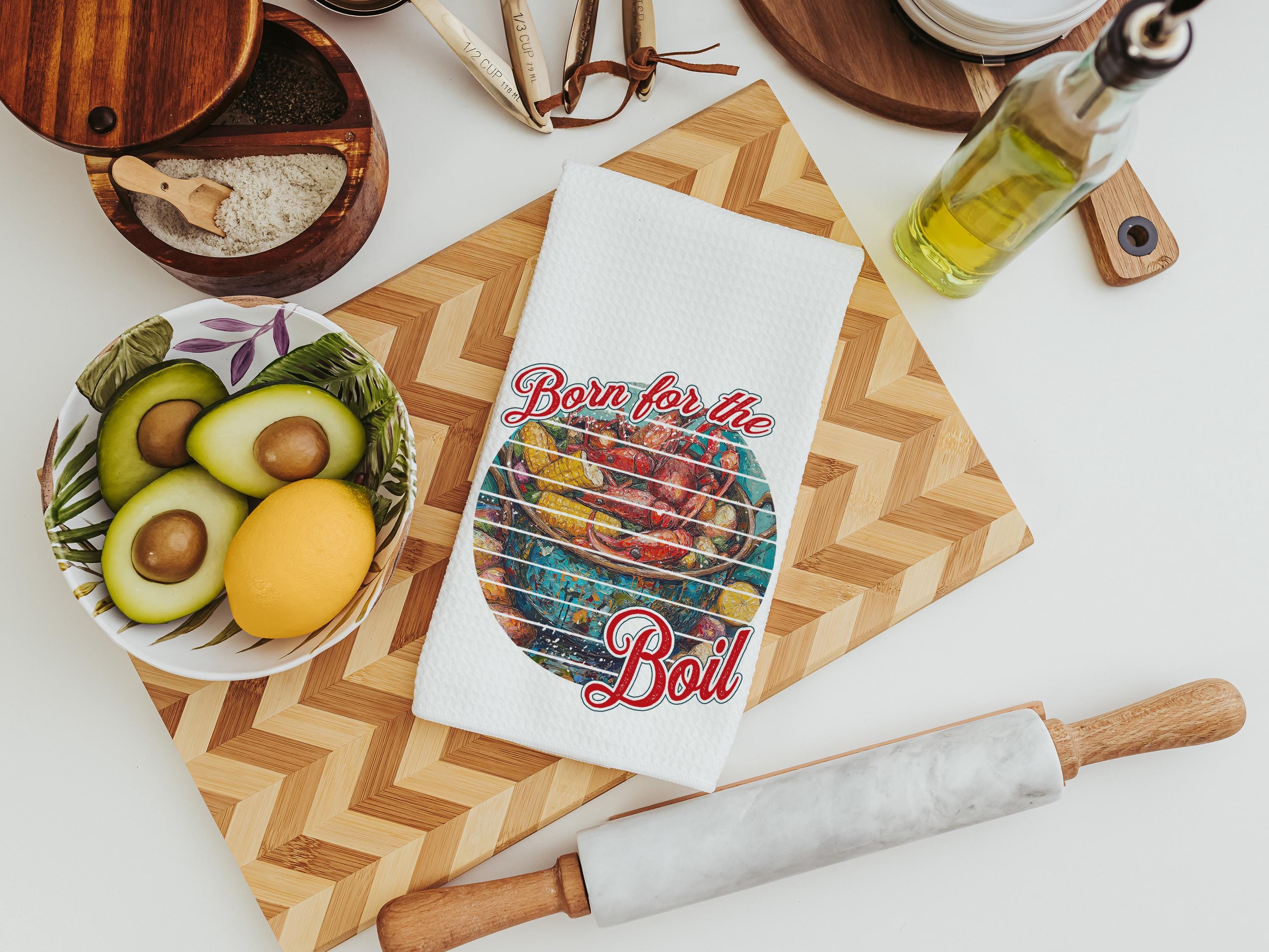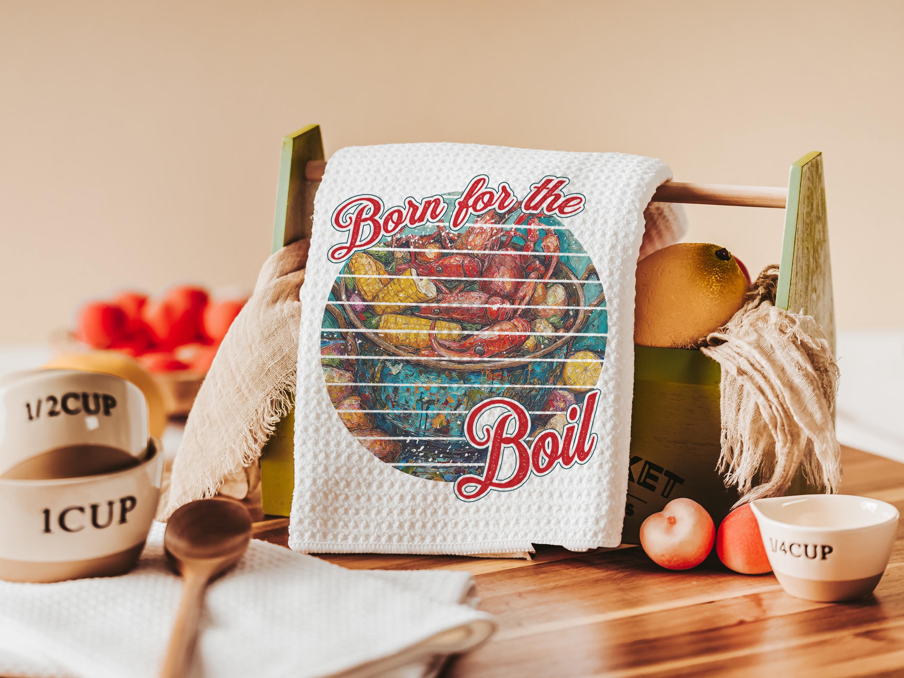 Born for the boil crawfish kitchen towels, Creole cooking crawfish boil Cajun kitchen decor, pinch the tail Louisiana gifts, Southern gifts