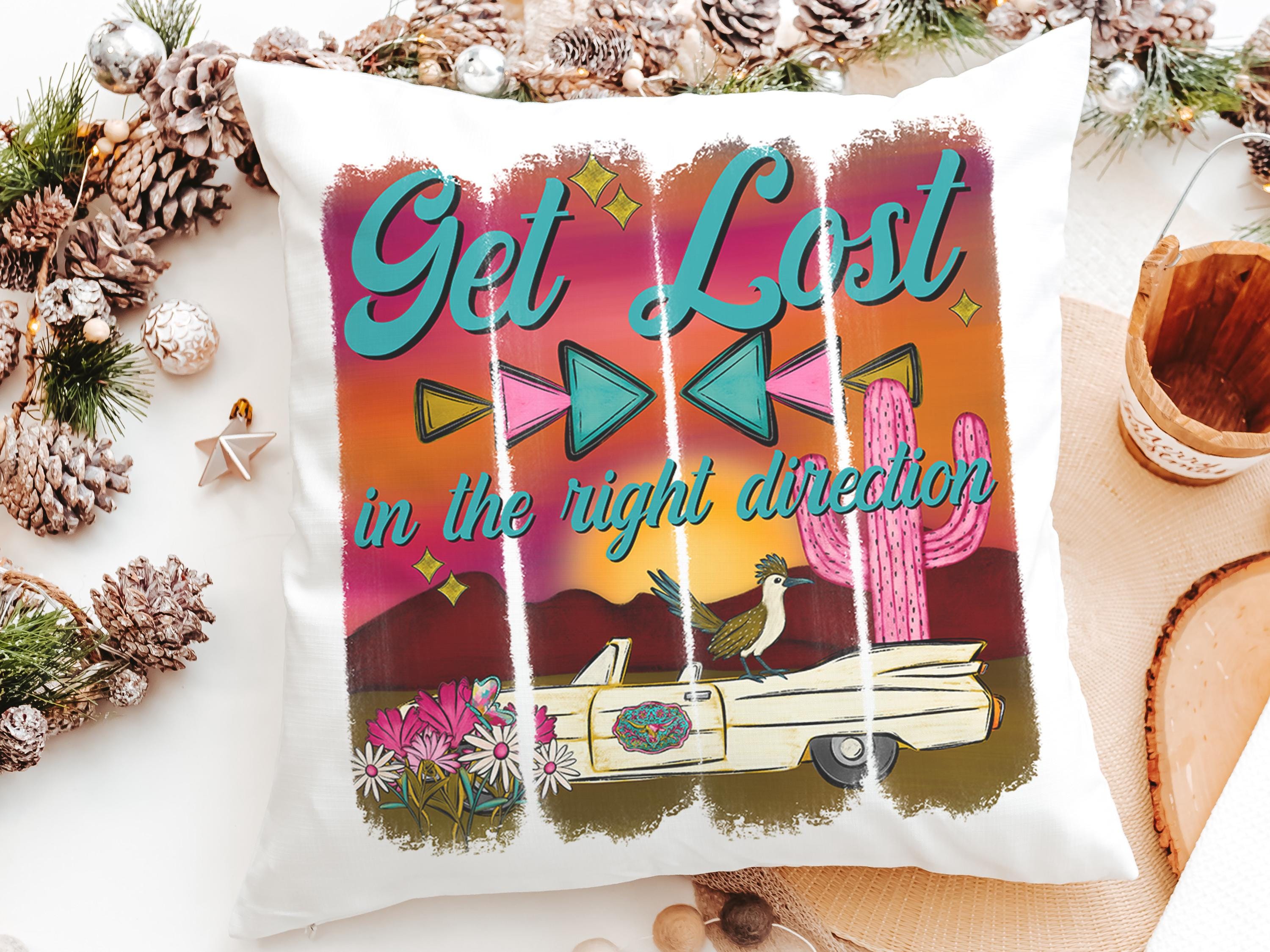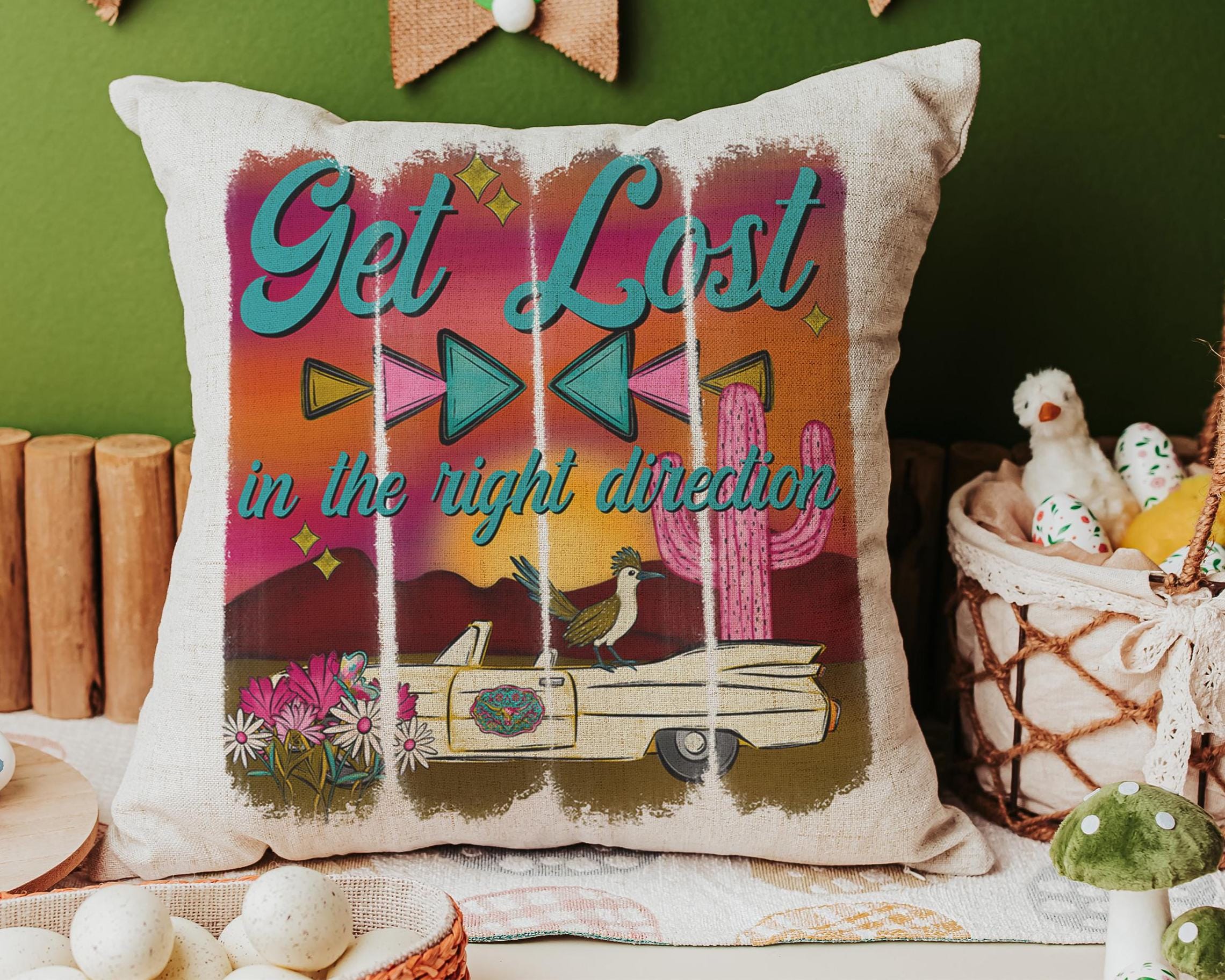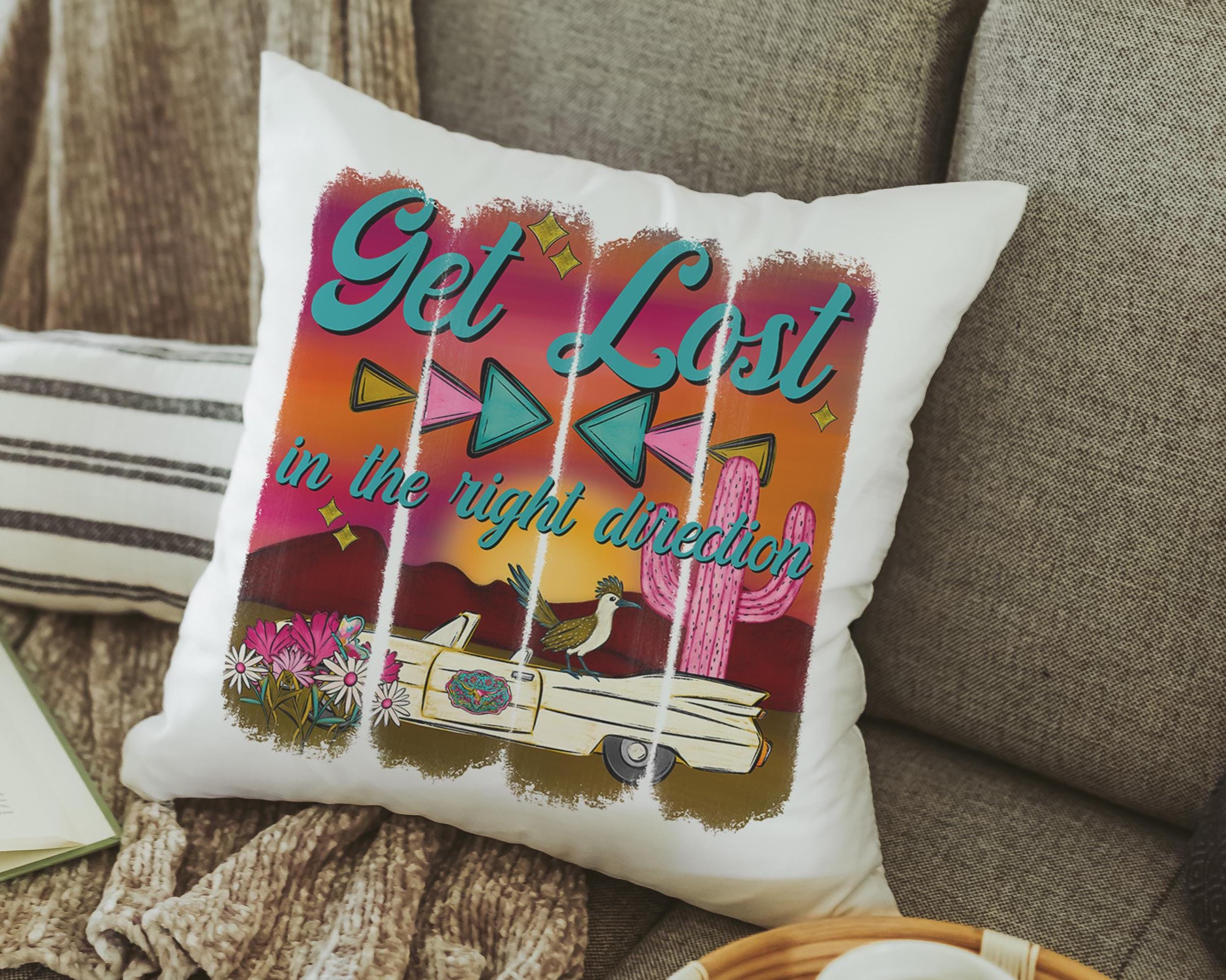Get lost in the right direction inspirational throw pillows for couch, summer road trip RV decorations for inside, glamping bachelorette