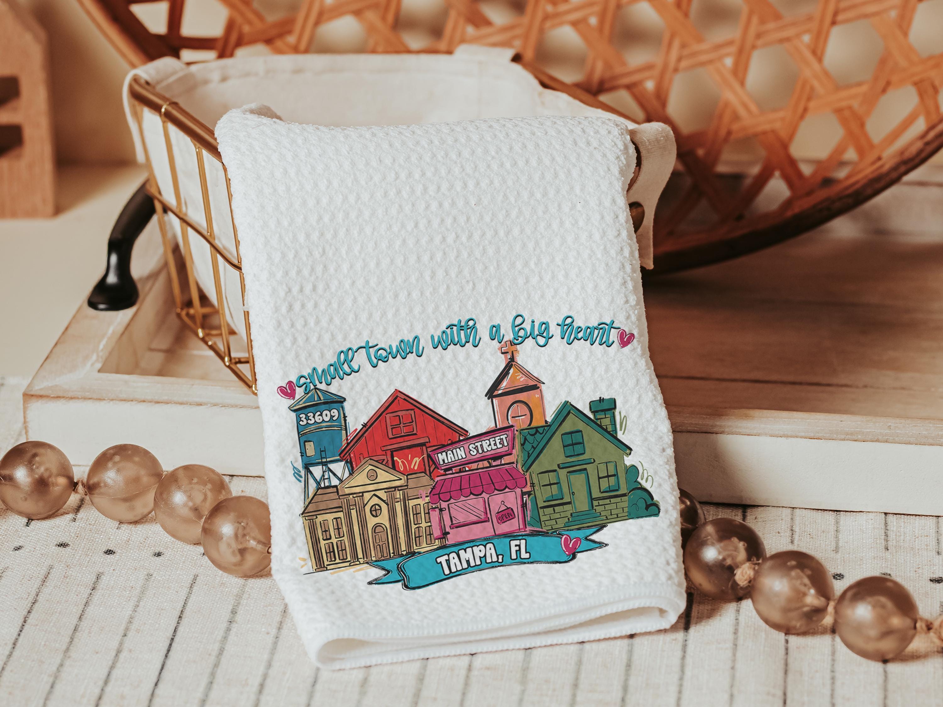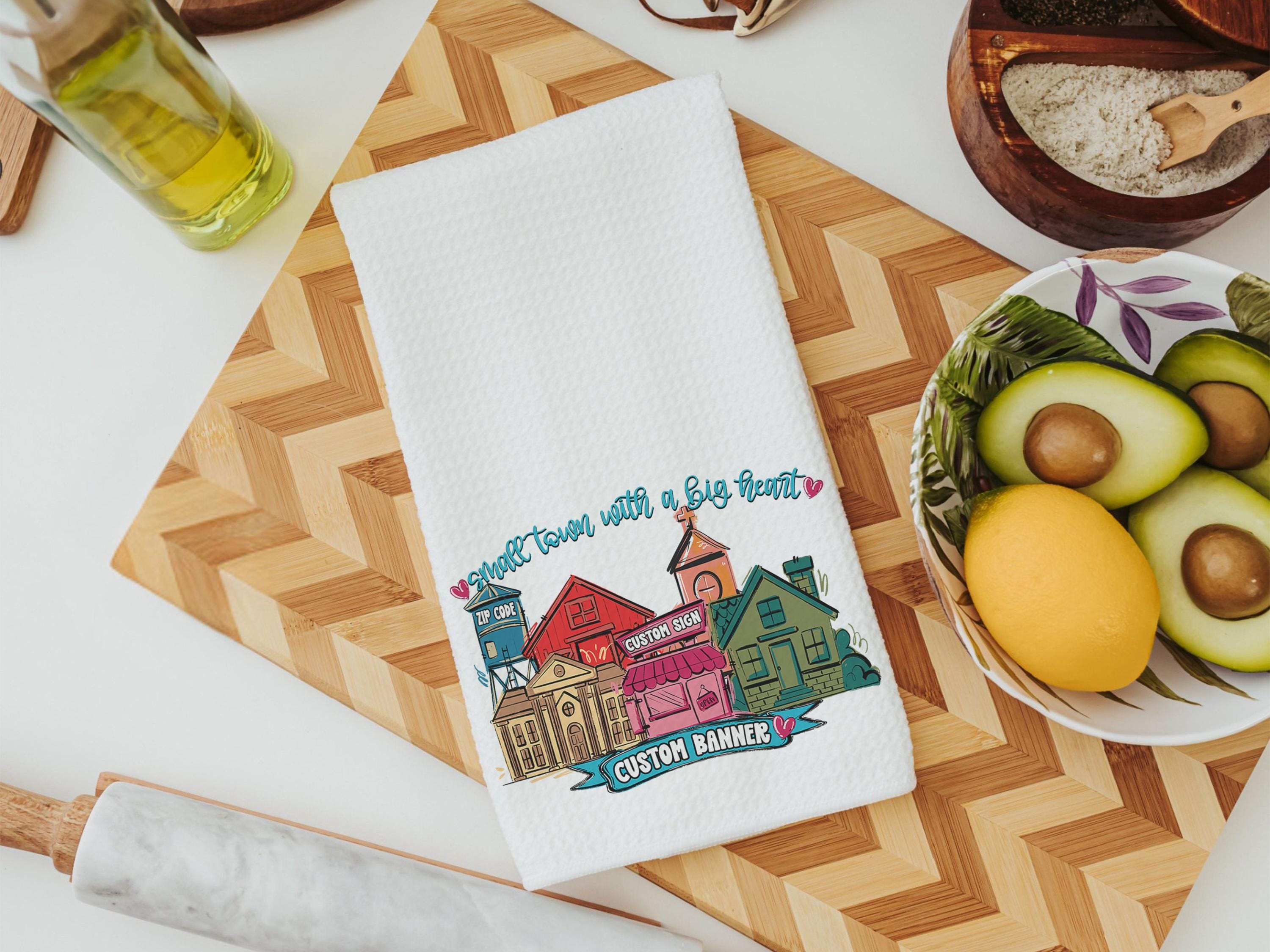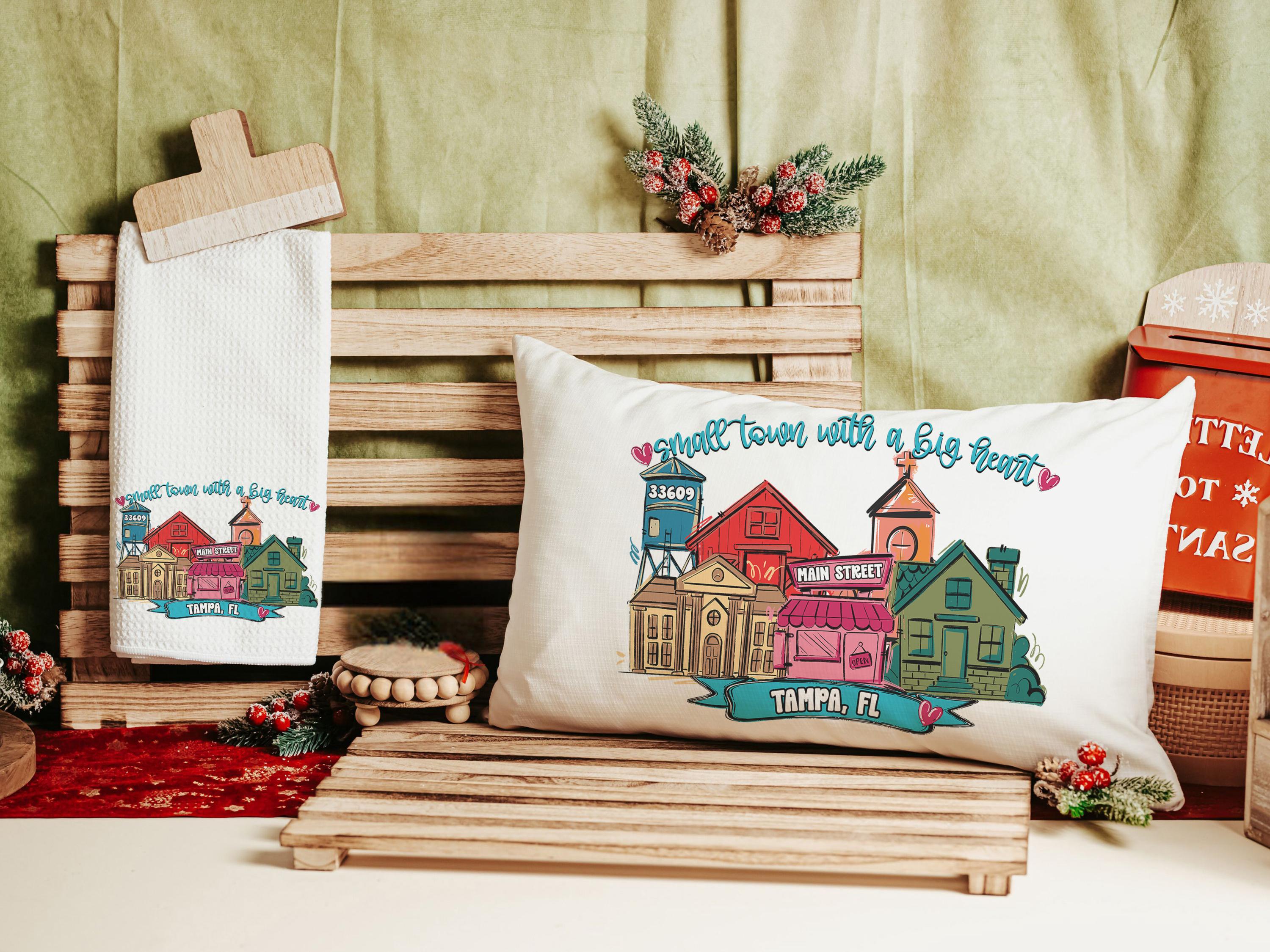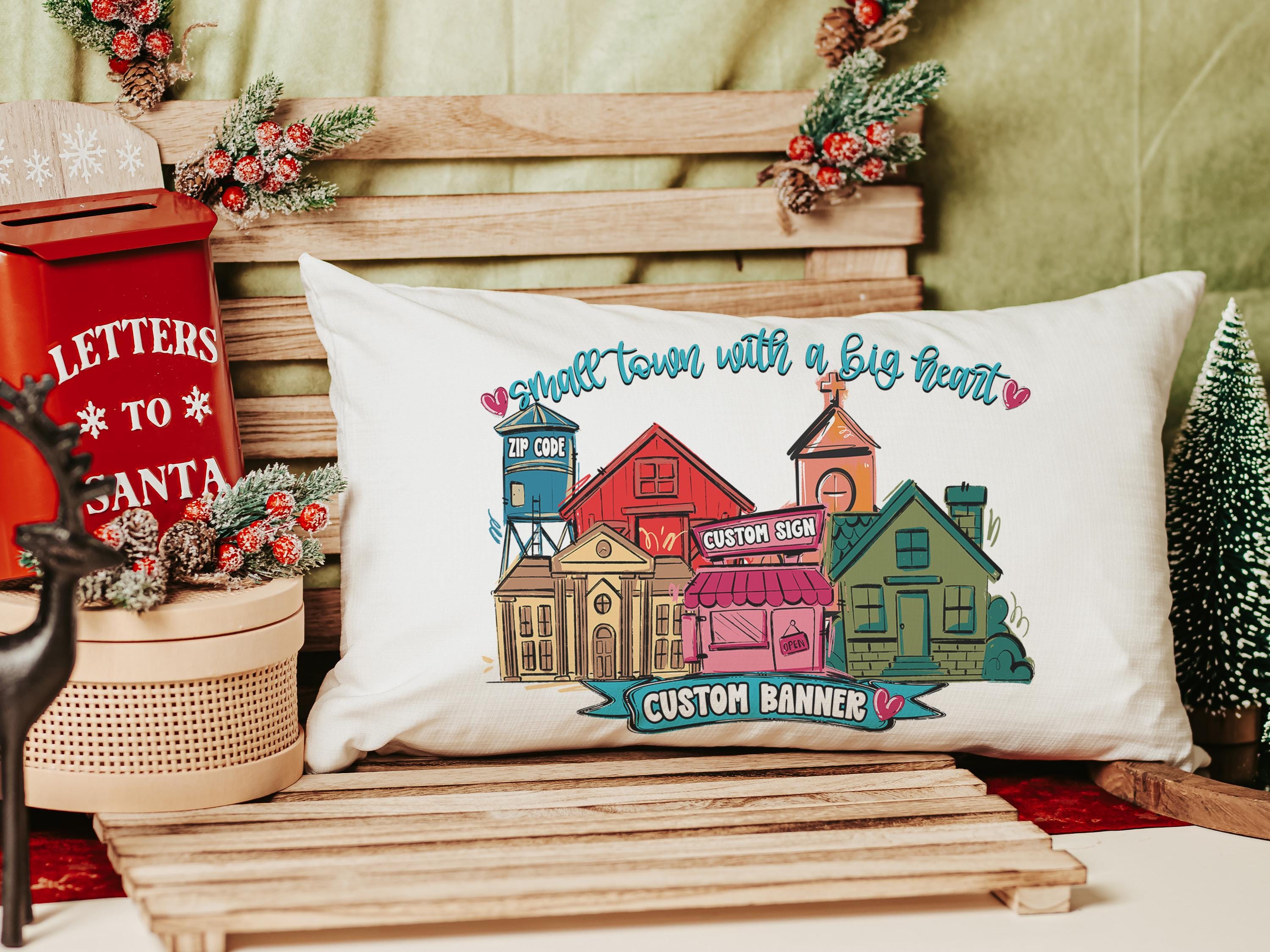 A cute Valentine update for a couch or kitchen, with throw pillows and matching towels that celebrate small town pride. Personalized with a town, state, zip code, and custom sign, it makes an easy gift for couples, in-laws, or a new home. A thoughtful way to share a little hometown love through everyday decor.