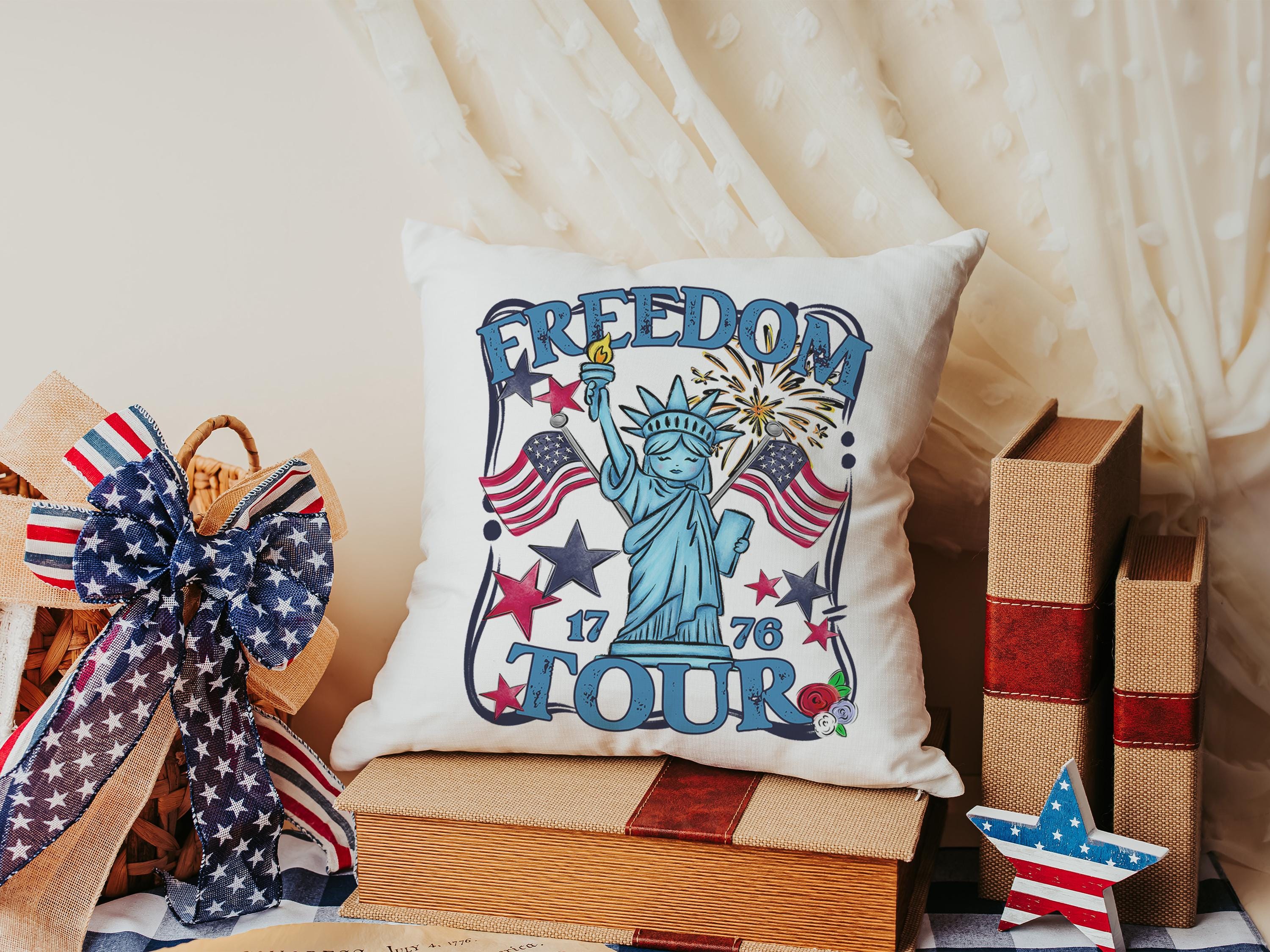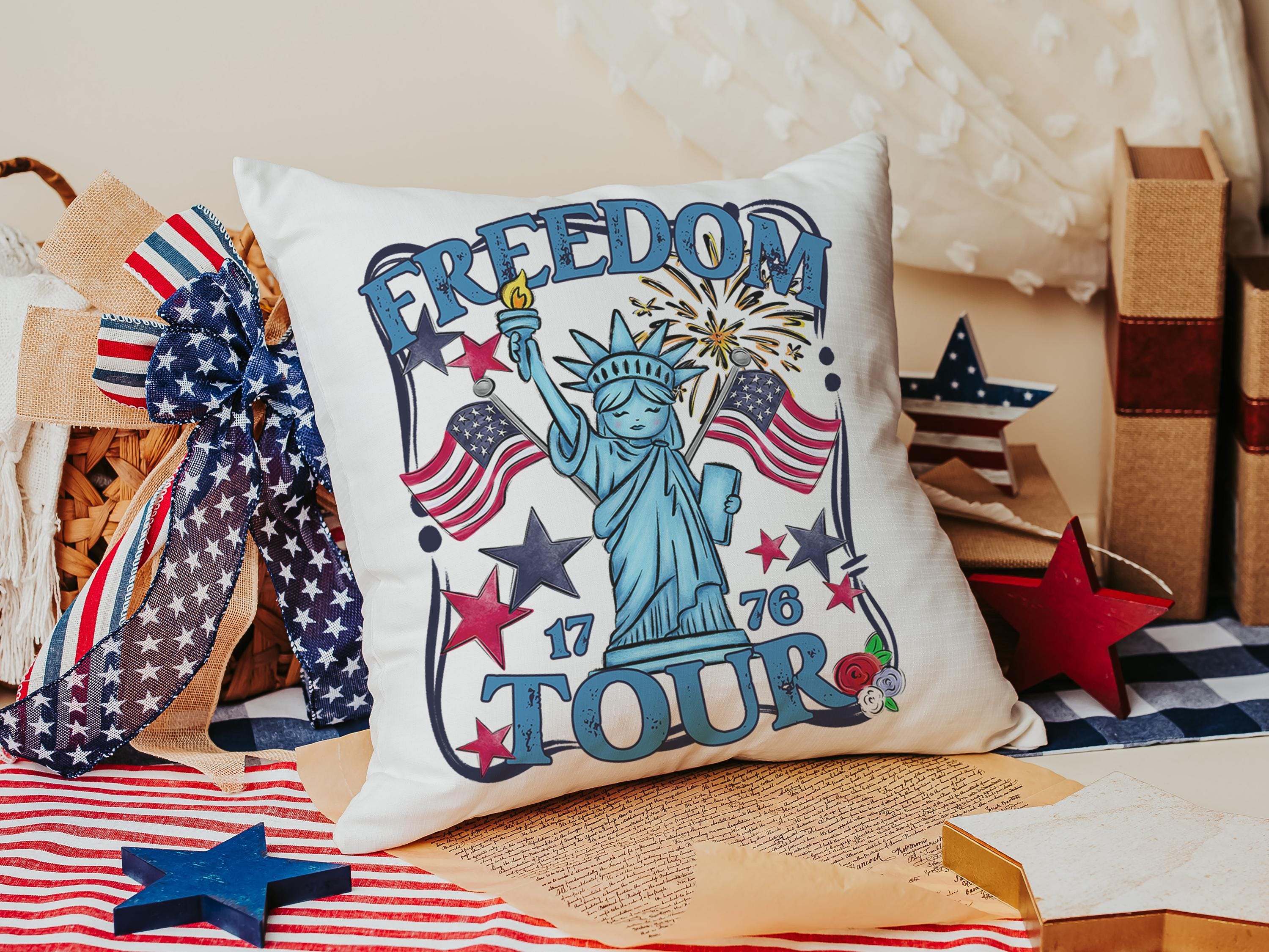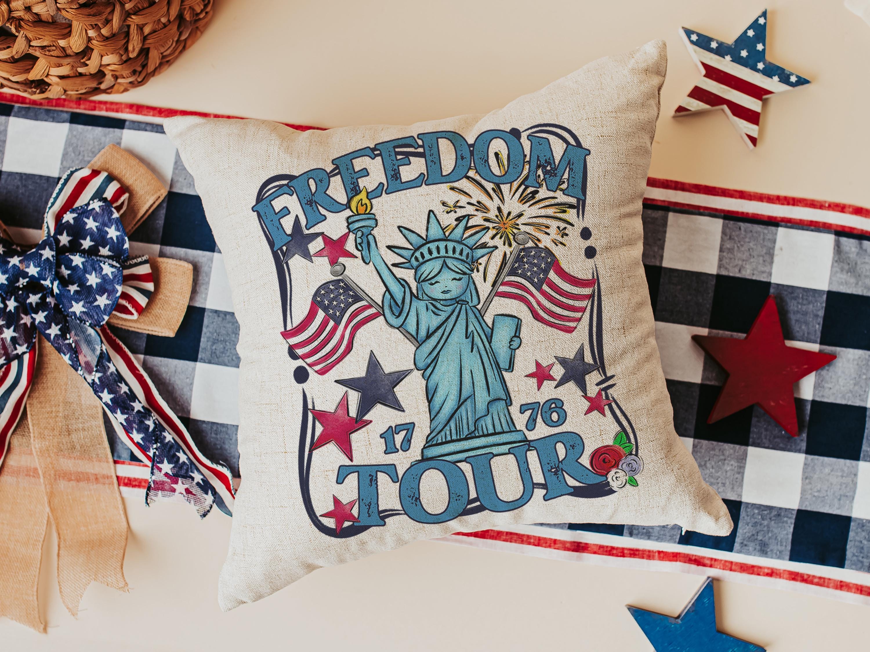 Freedom tour throw pillows for porch, Americana decor with red floral 4th of July home decor, patriotic gifts for women, military gifts