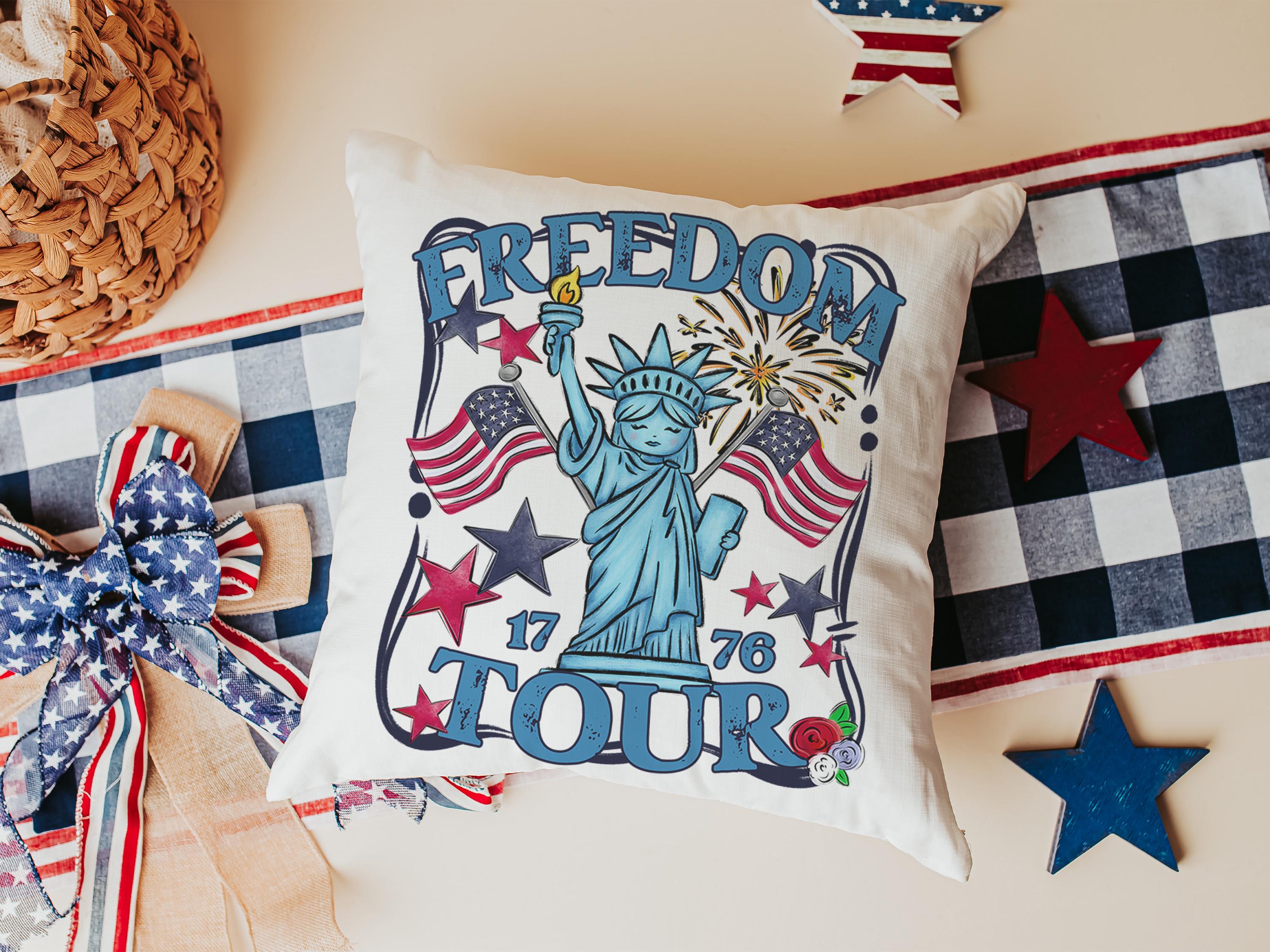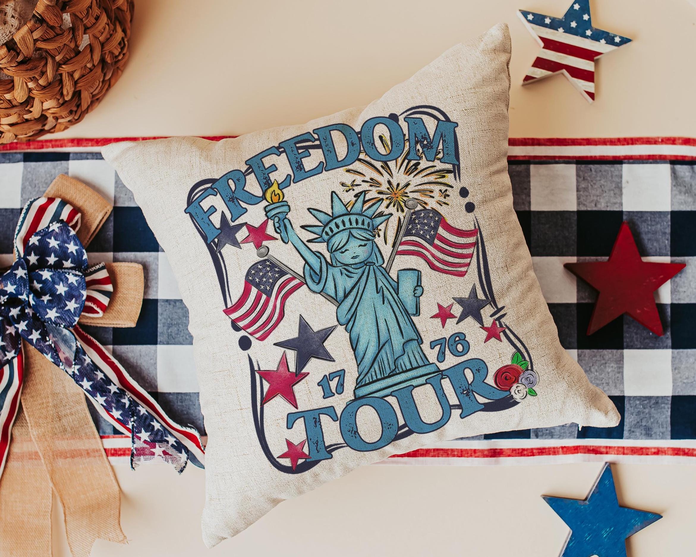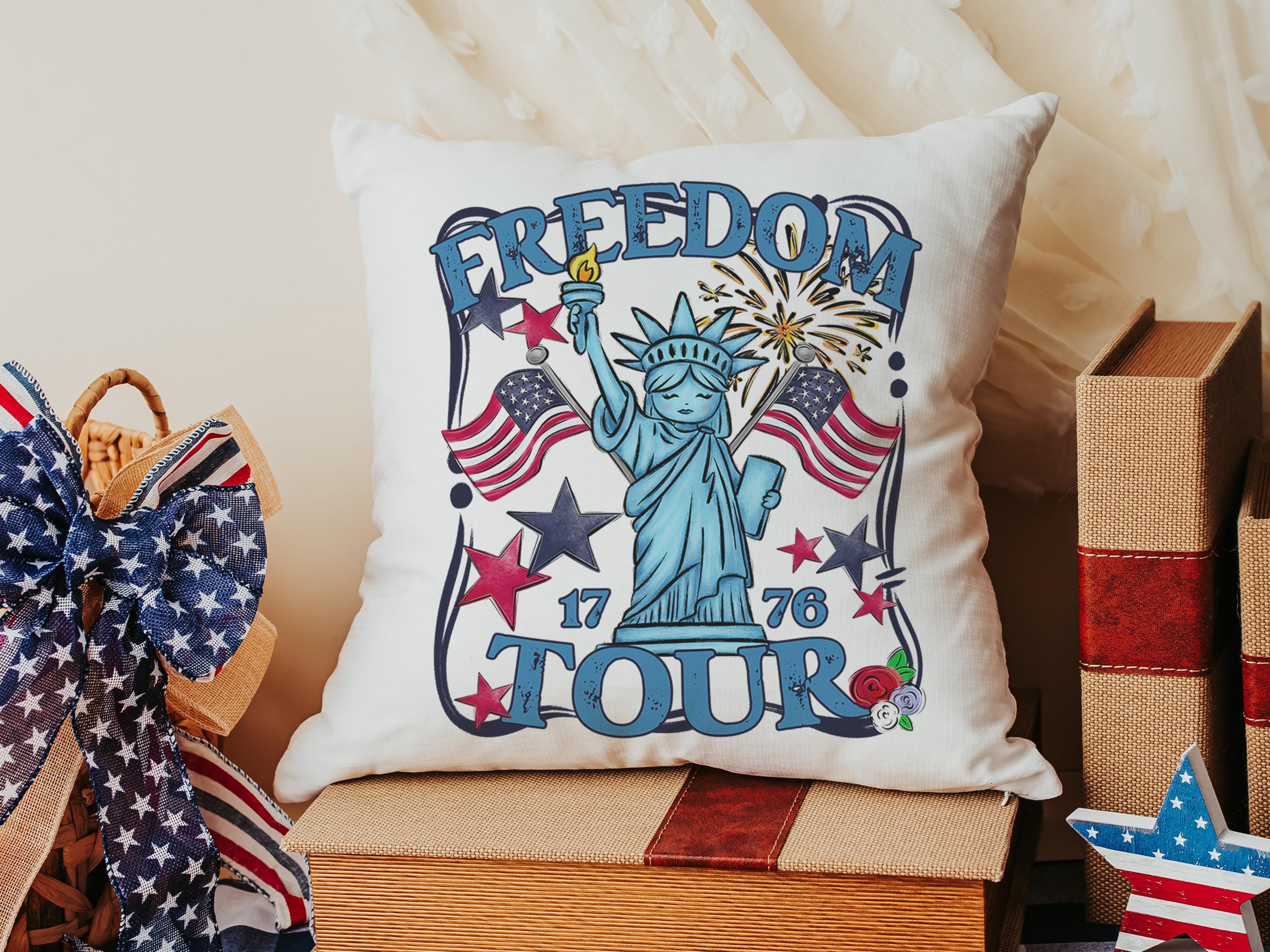 Freedom tour throw pillows for porch, Americana decor with red floral 4th of July home decor, patriotic gifts for women, military gifts