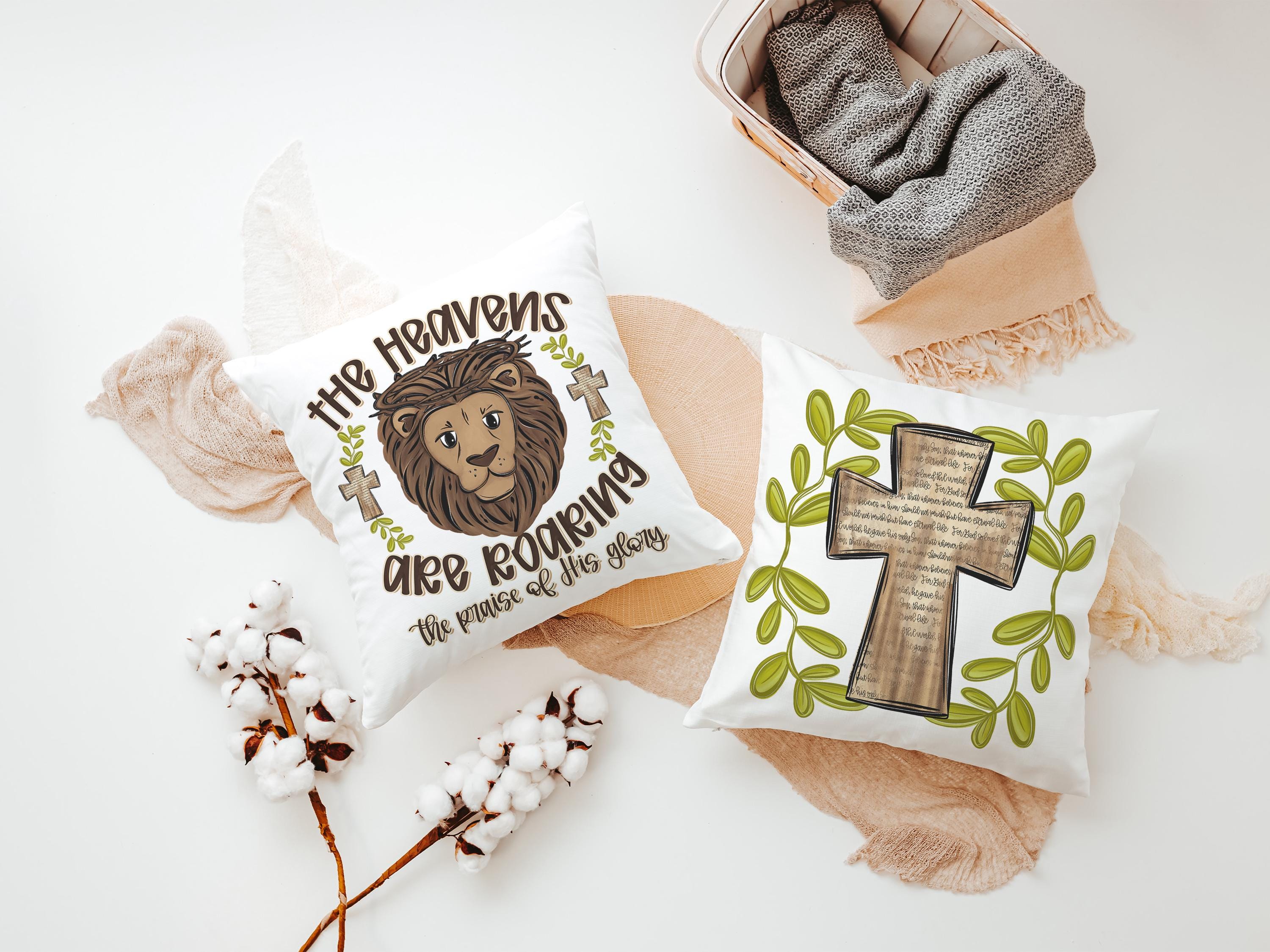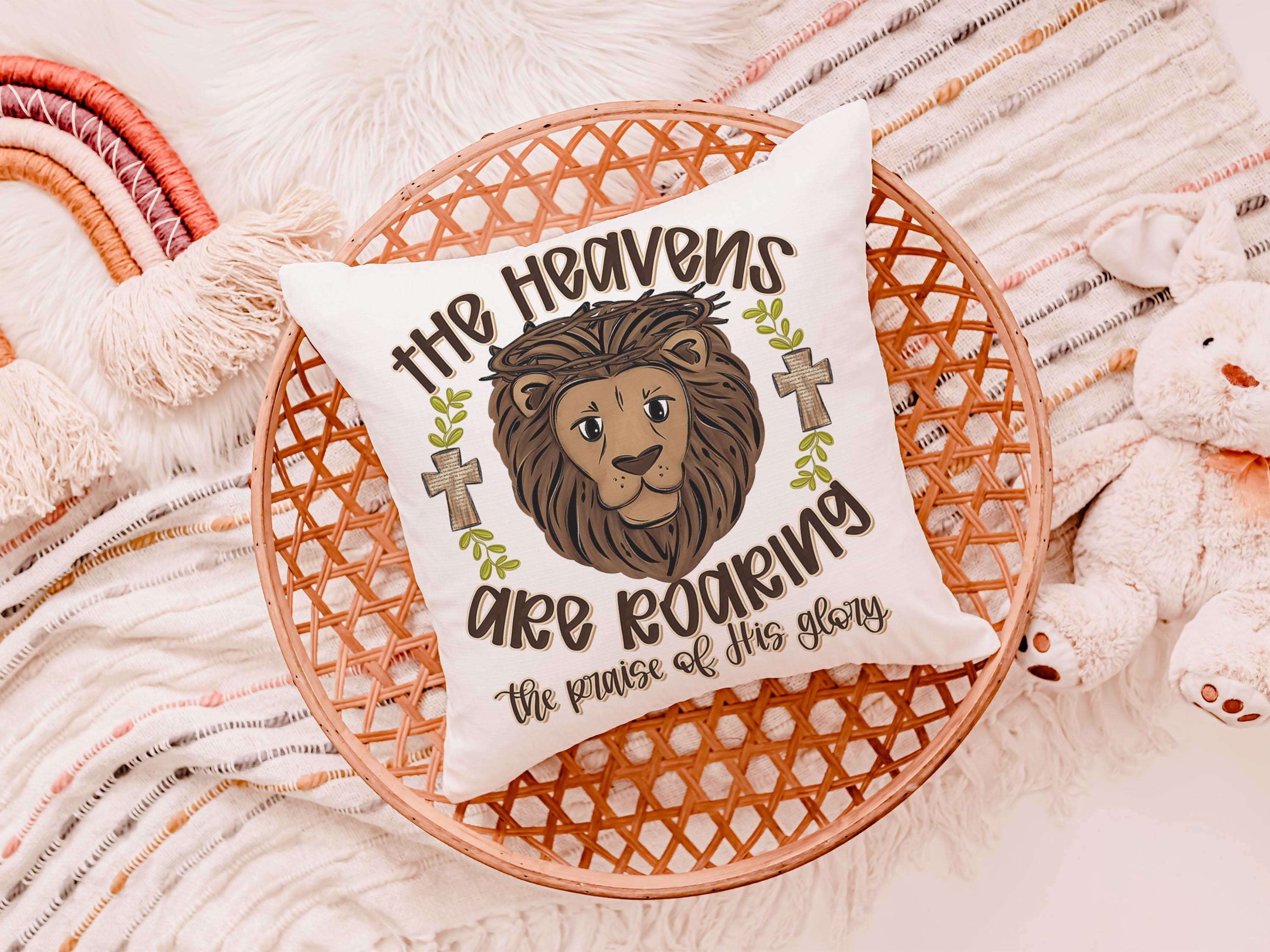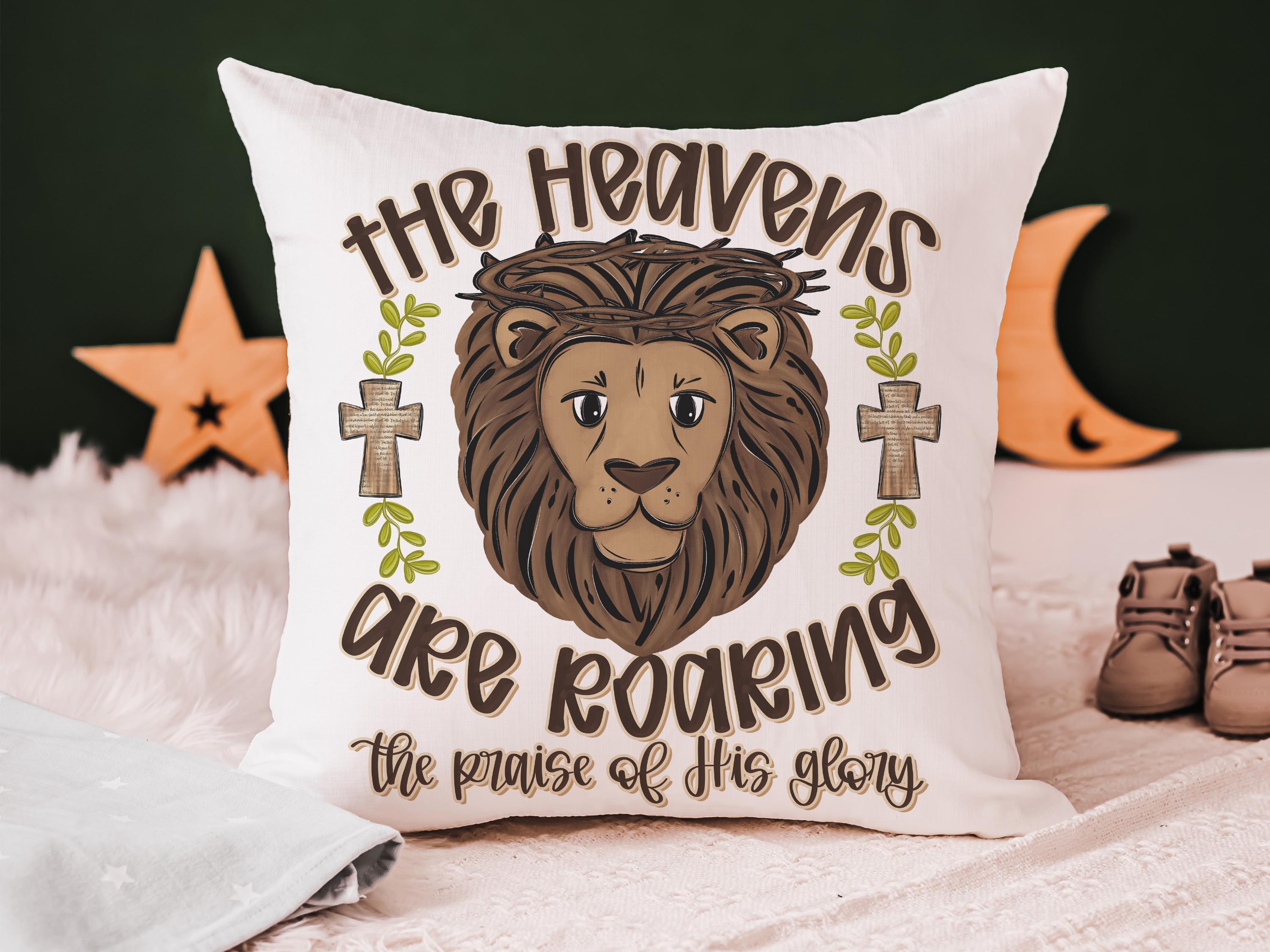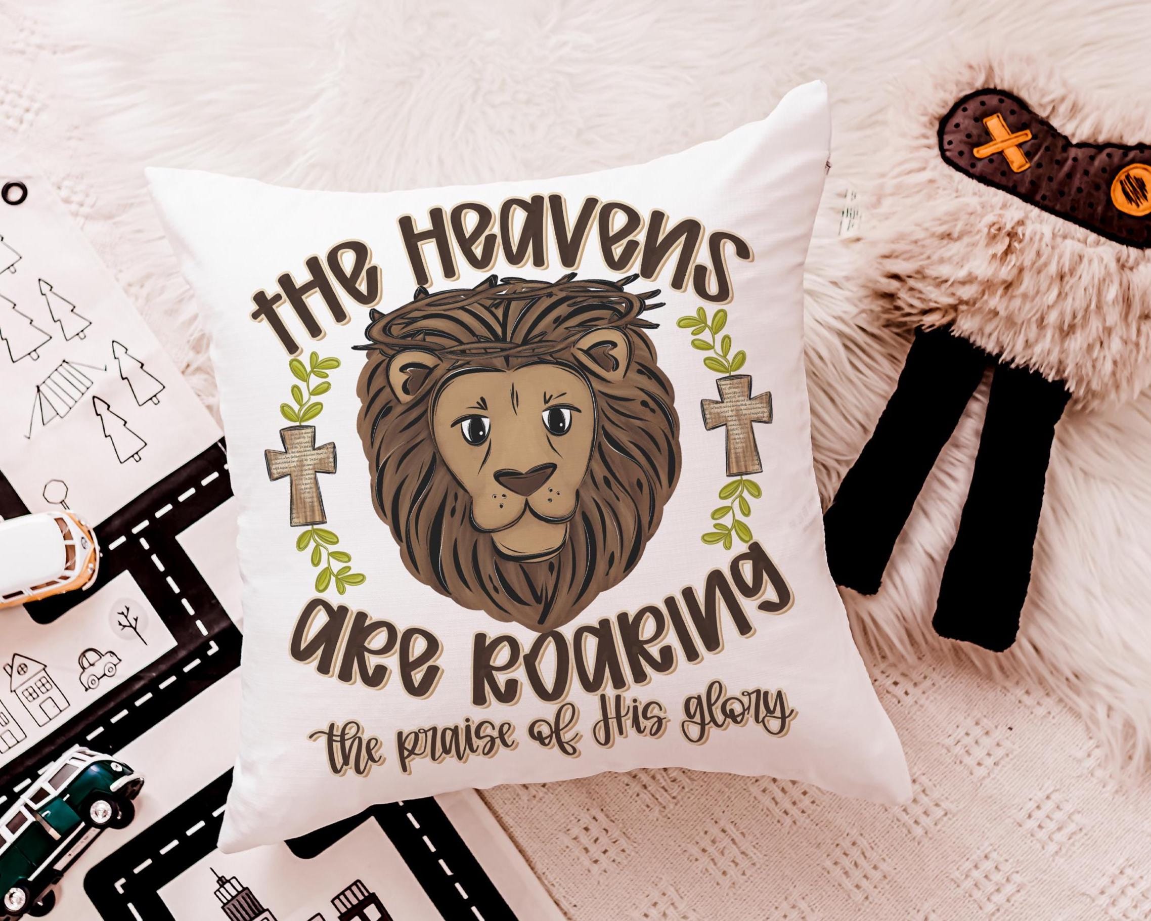 Heavens are roaring lion throw pillow for kids, Christian nursery decor, baptism gift for grandson, christening gifts for, lion nursery