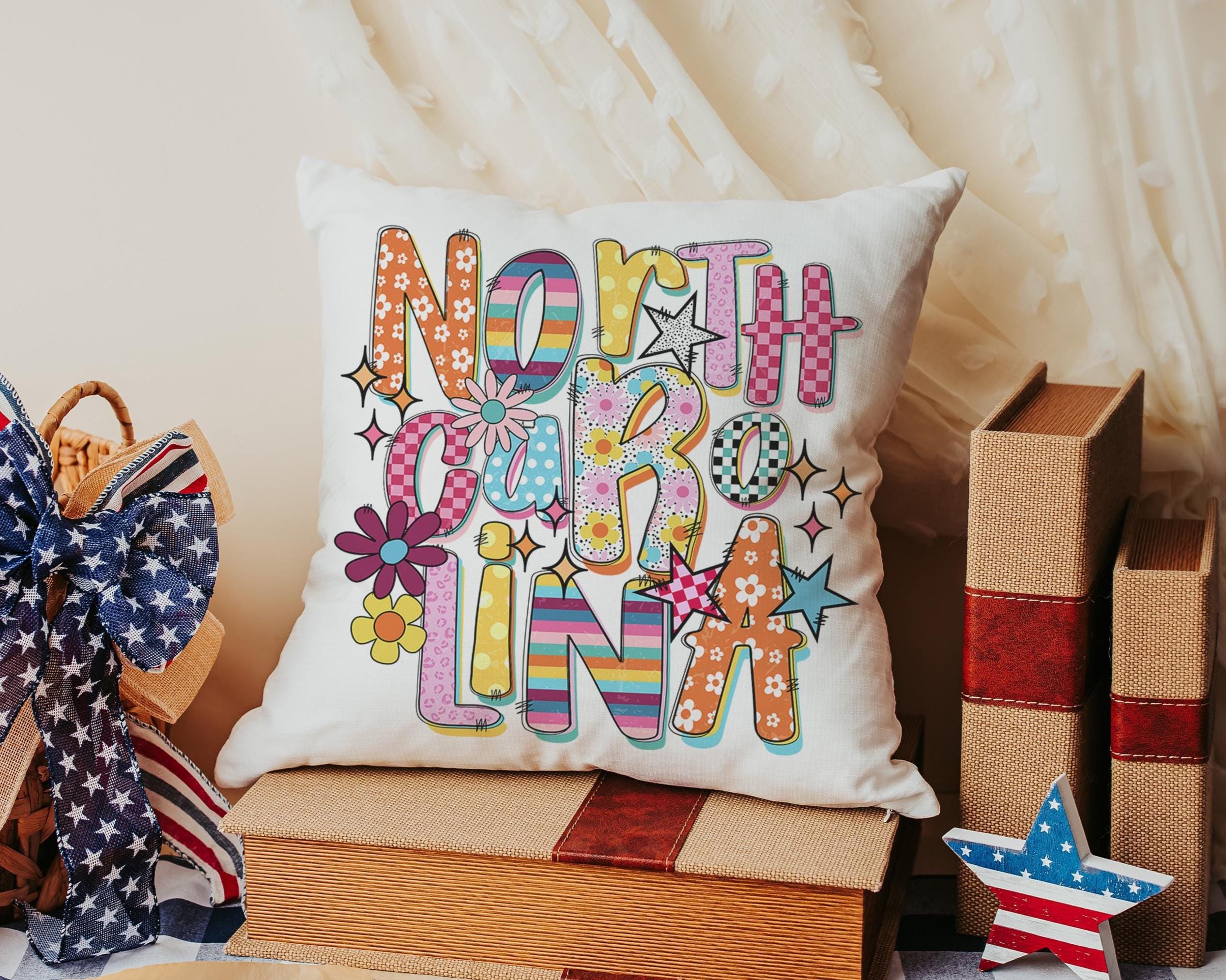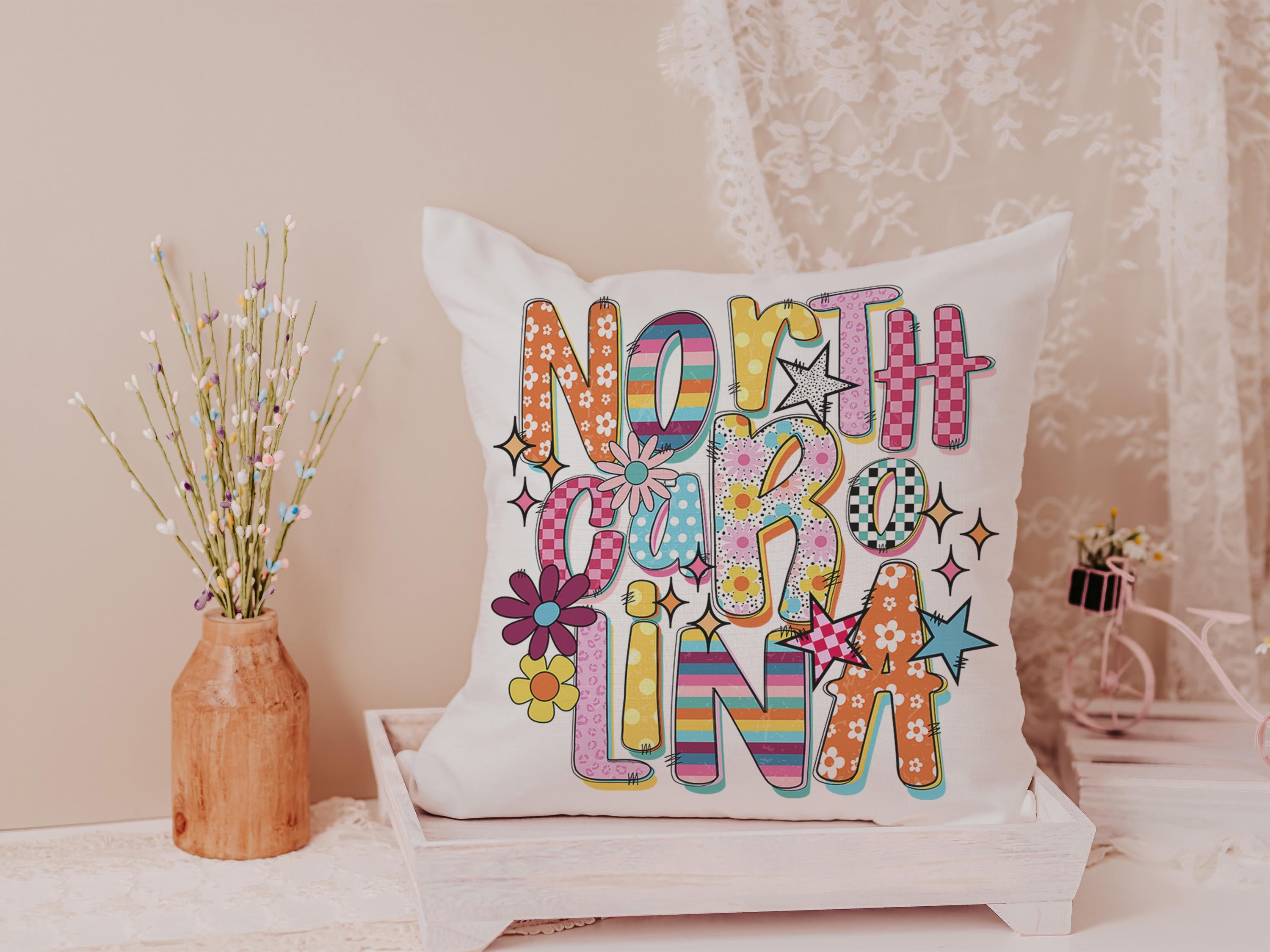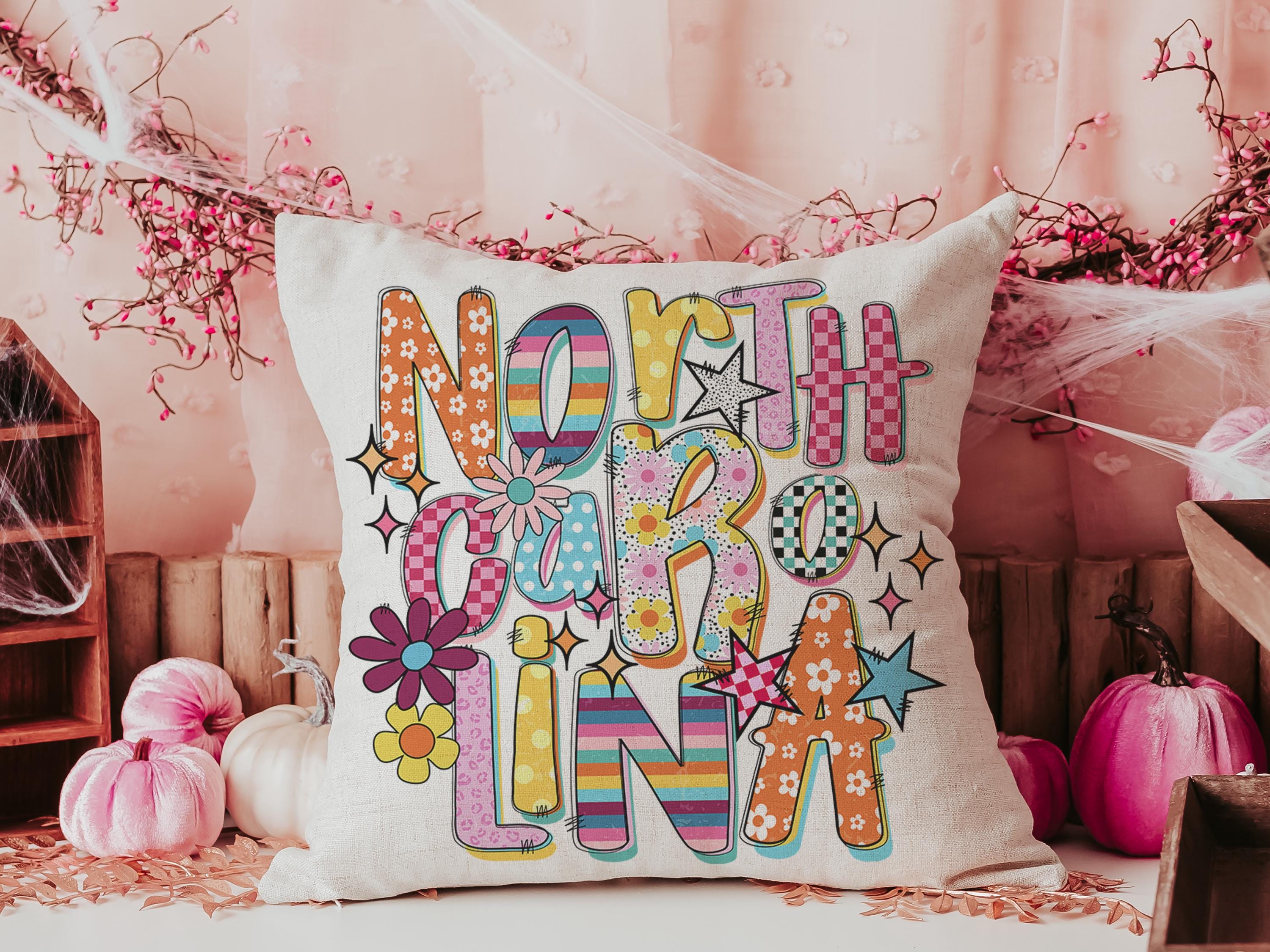 A colorful accent for a couch, dorm, or office space, bringing North Carolina pride into everyday decor. Floral, rainbow stripe, and checkered options make it a wonderful NC gift or a fresh touch for real estate offices. A nice pick for new realtor gifting or simple home updates.