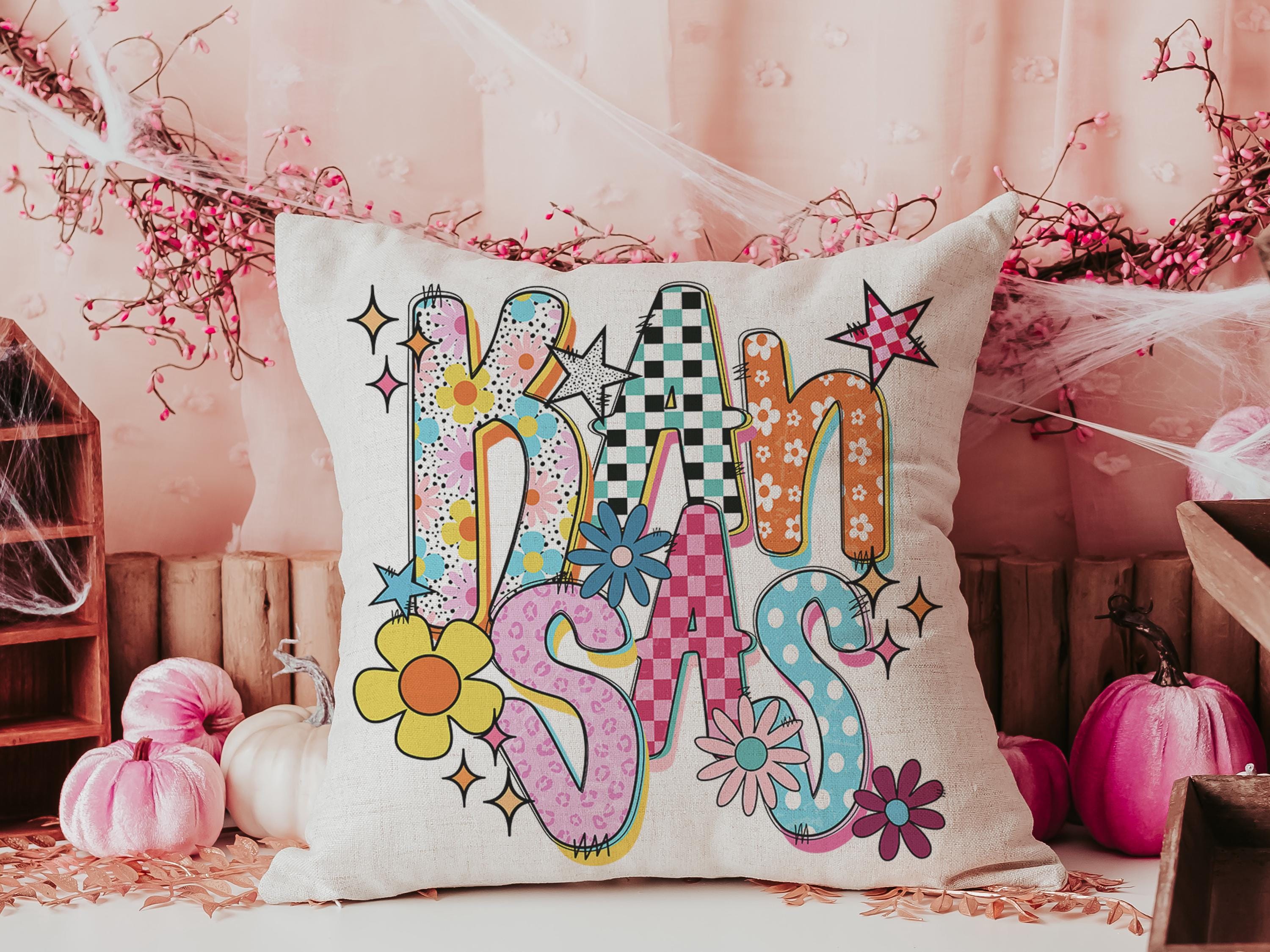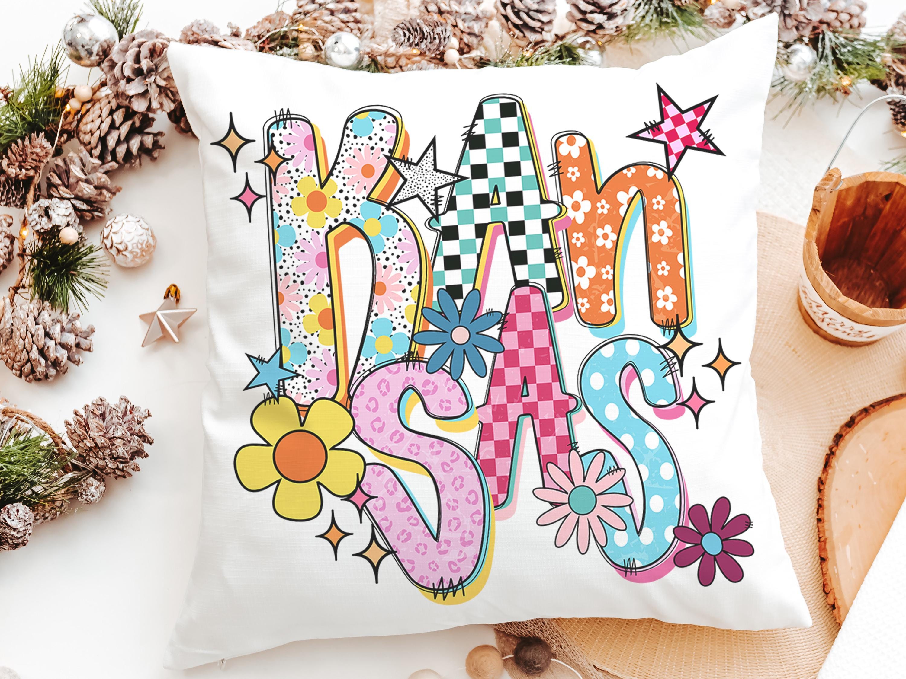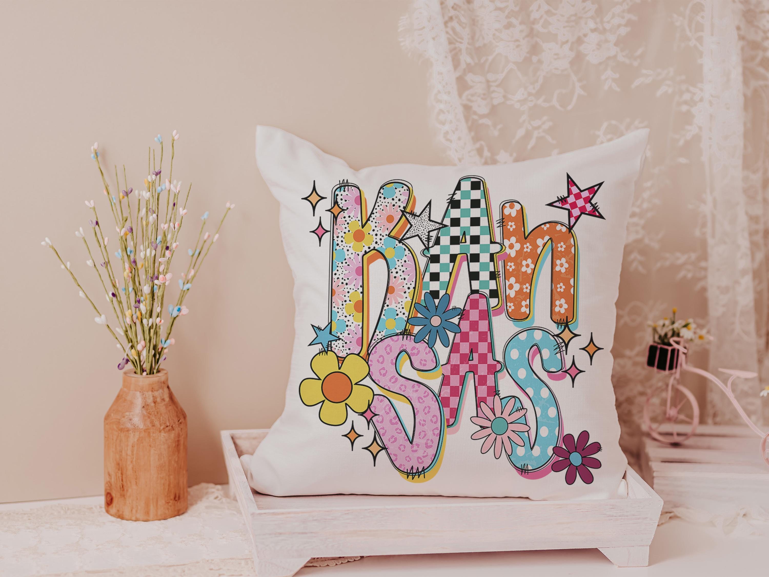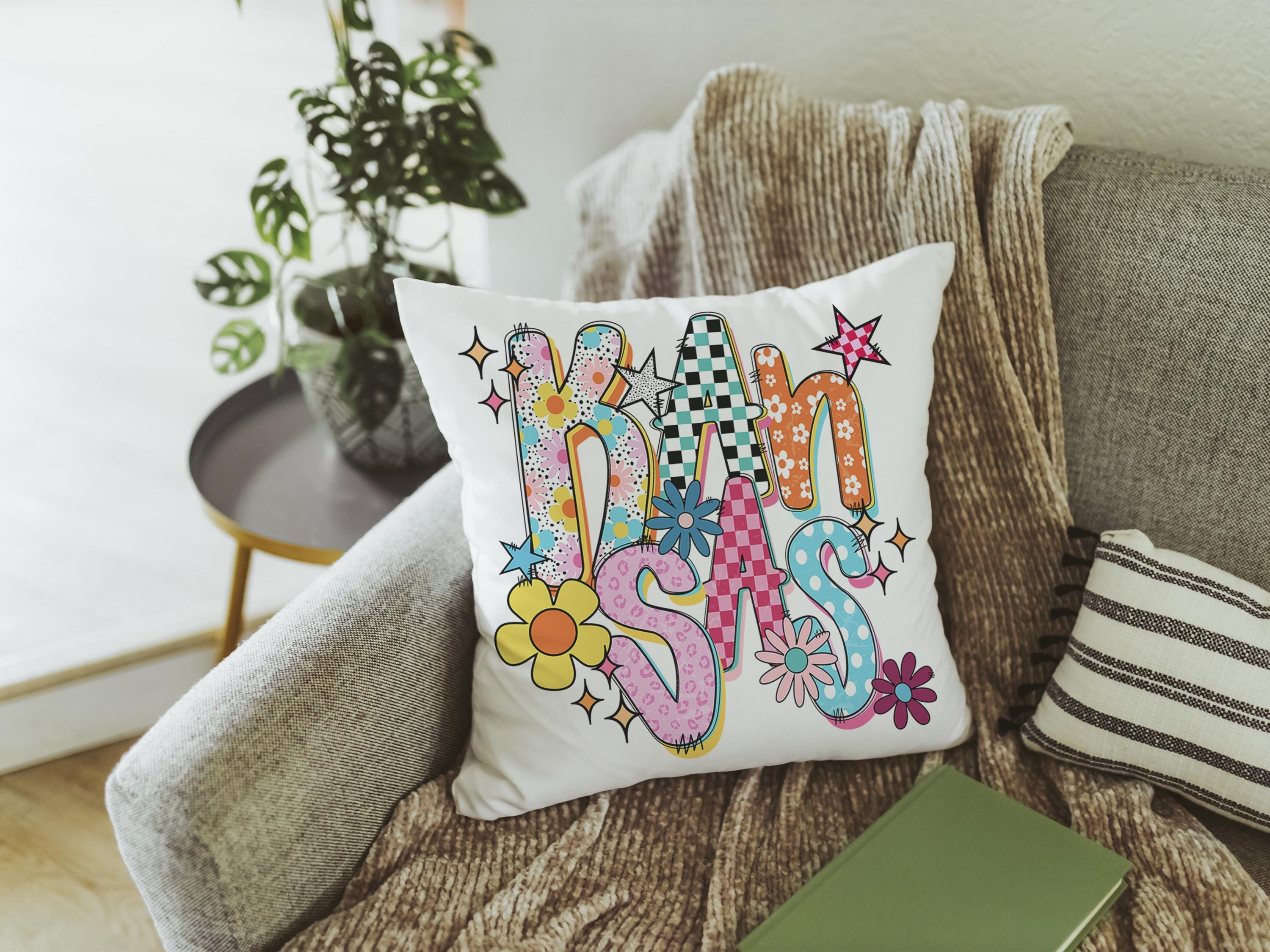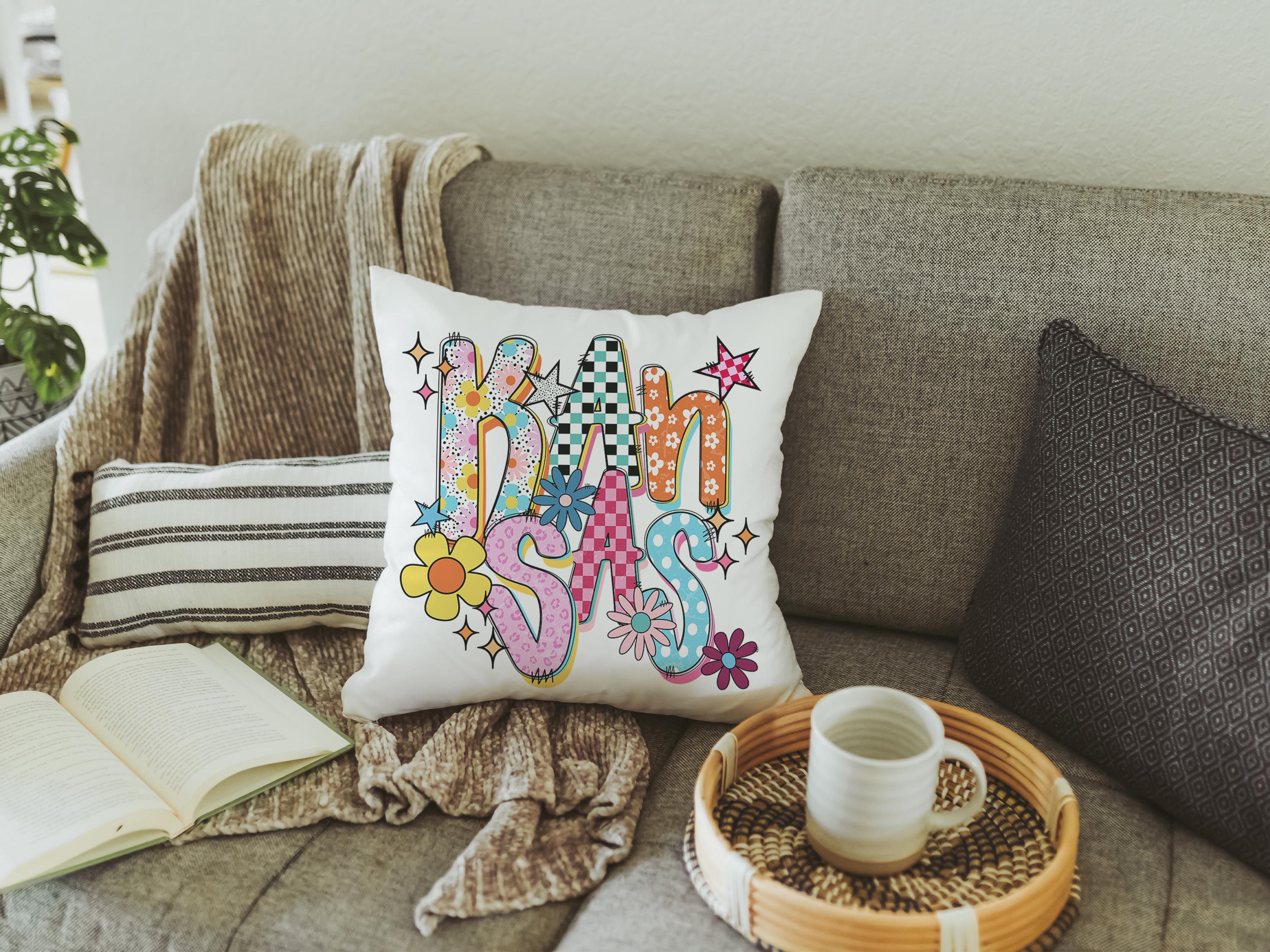 A colorful and fun accent for a couch, bed, or dorm that adds Kansas pride to everyday spaces. A fun pick for college care packages, moving-away gifts, or something thoughtful. Colorful hippie-style state decor makes it feel current, personal, and easy to gift.