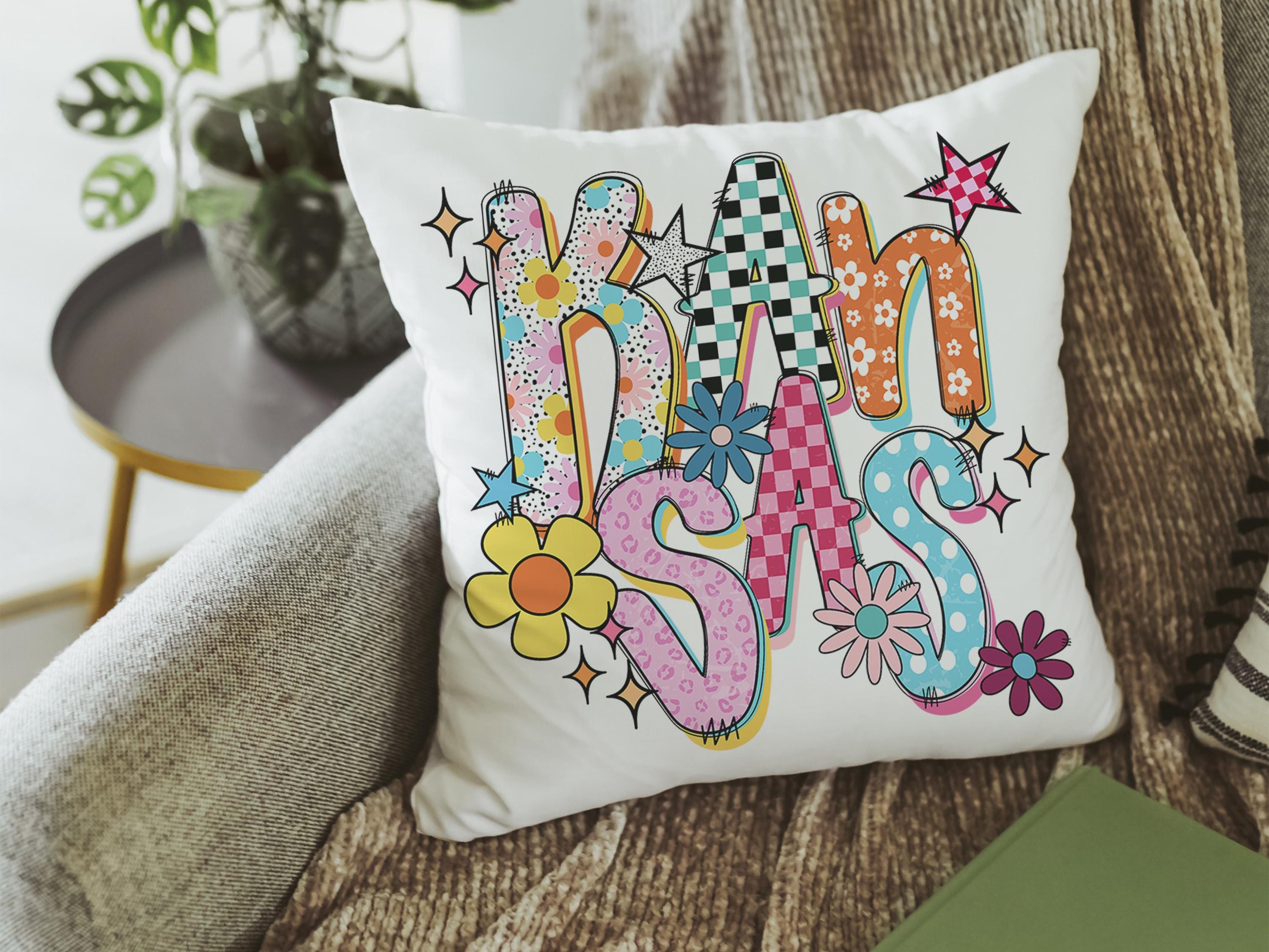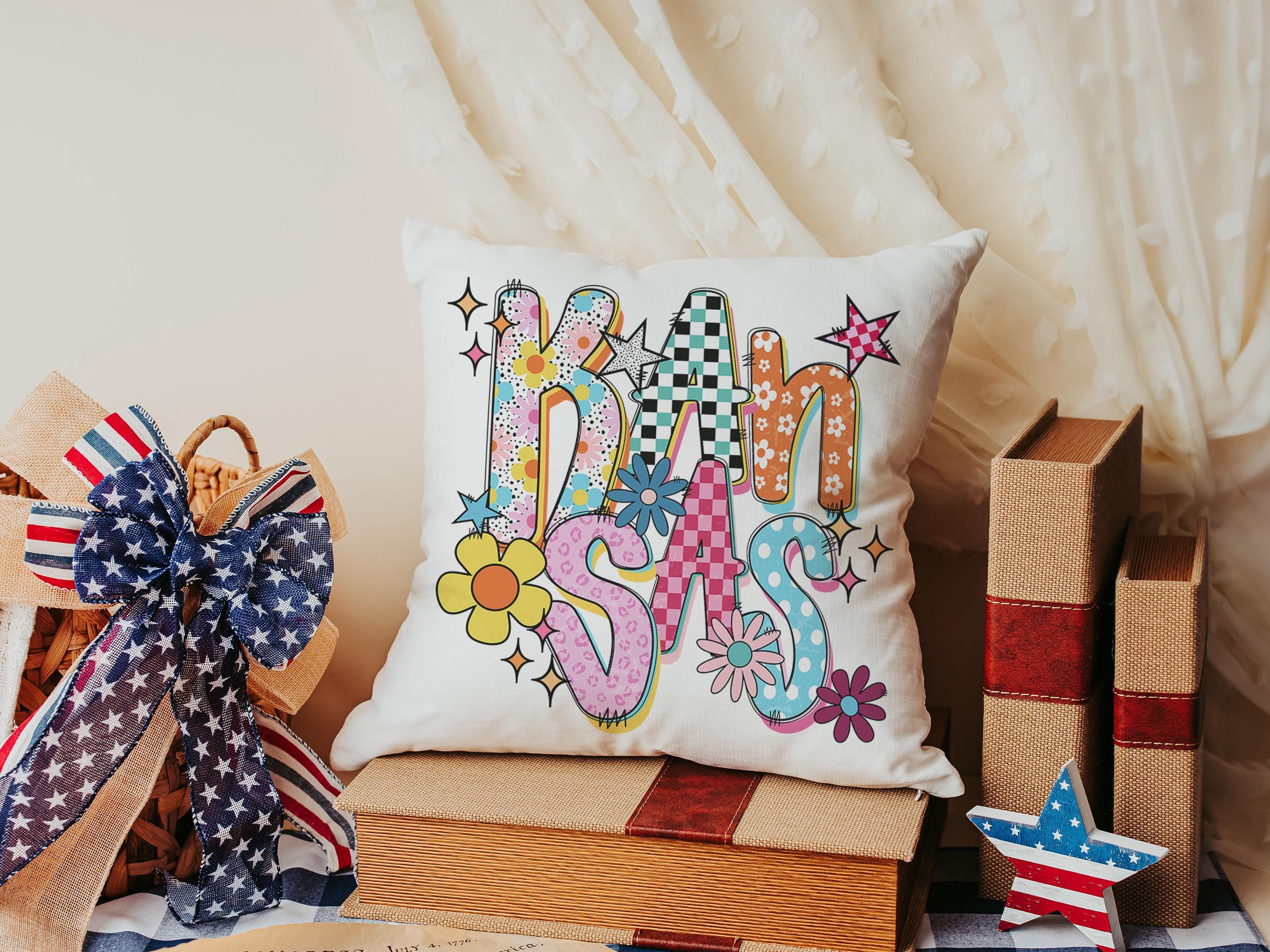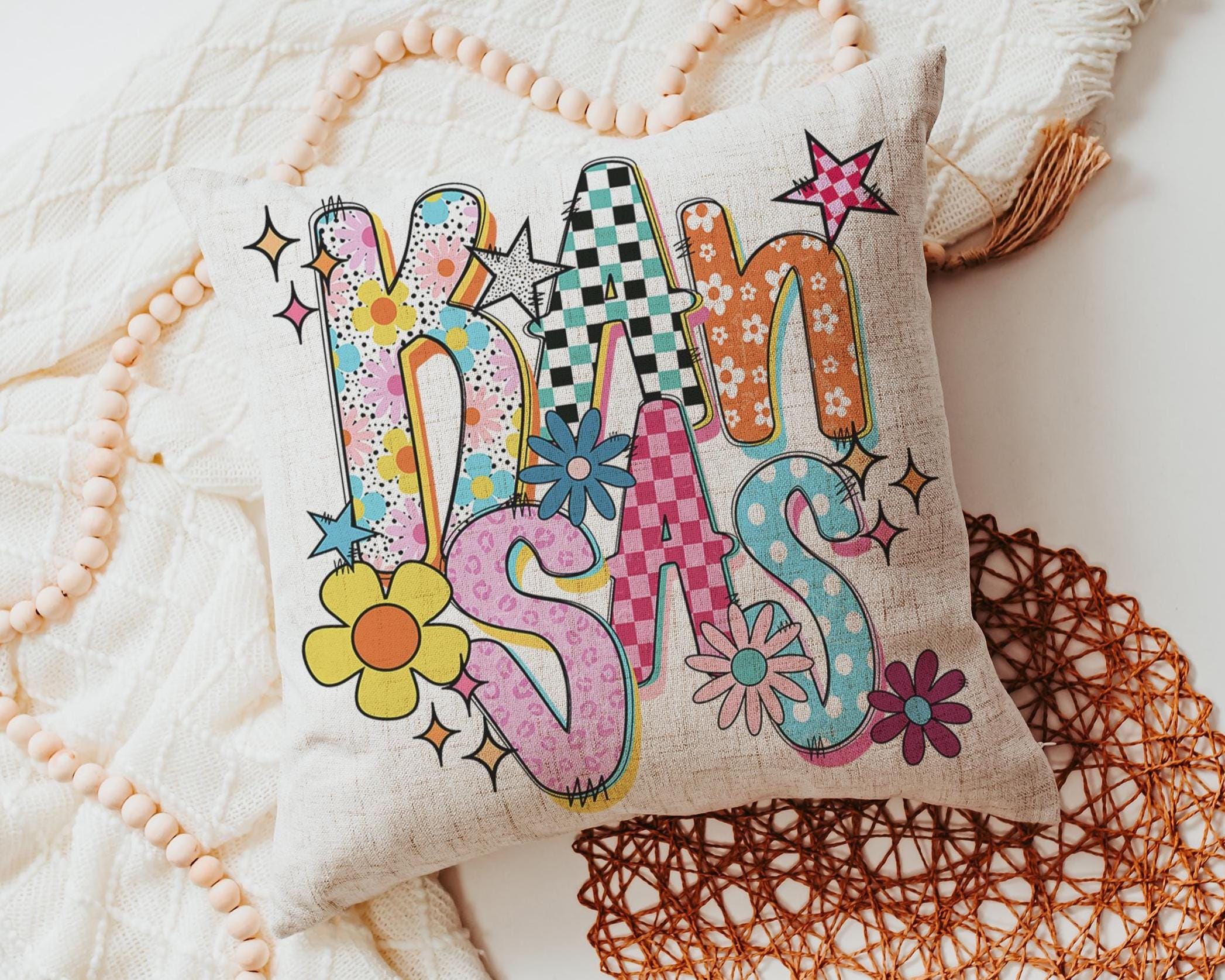 Custom Kansas state throw pillows for couch, colorful hippie pillows for bed, cute Kansas college care package for her, colorful pillows for