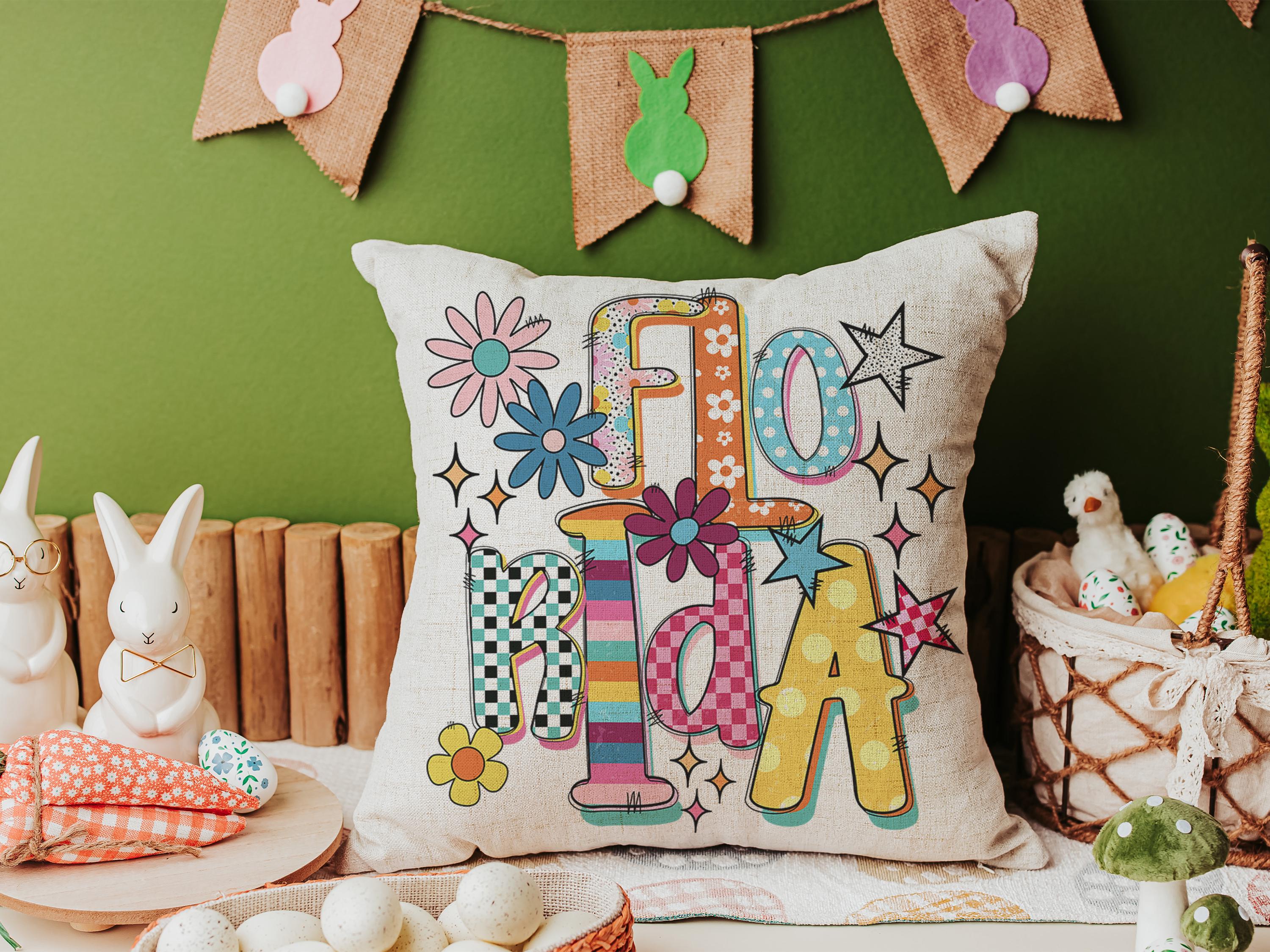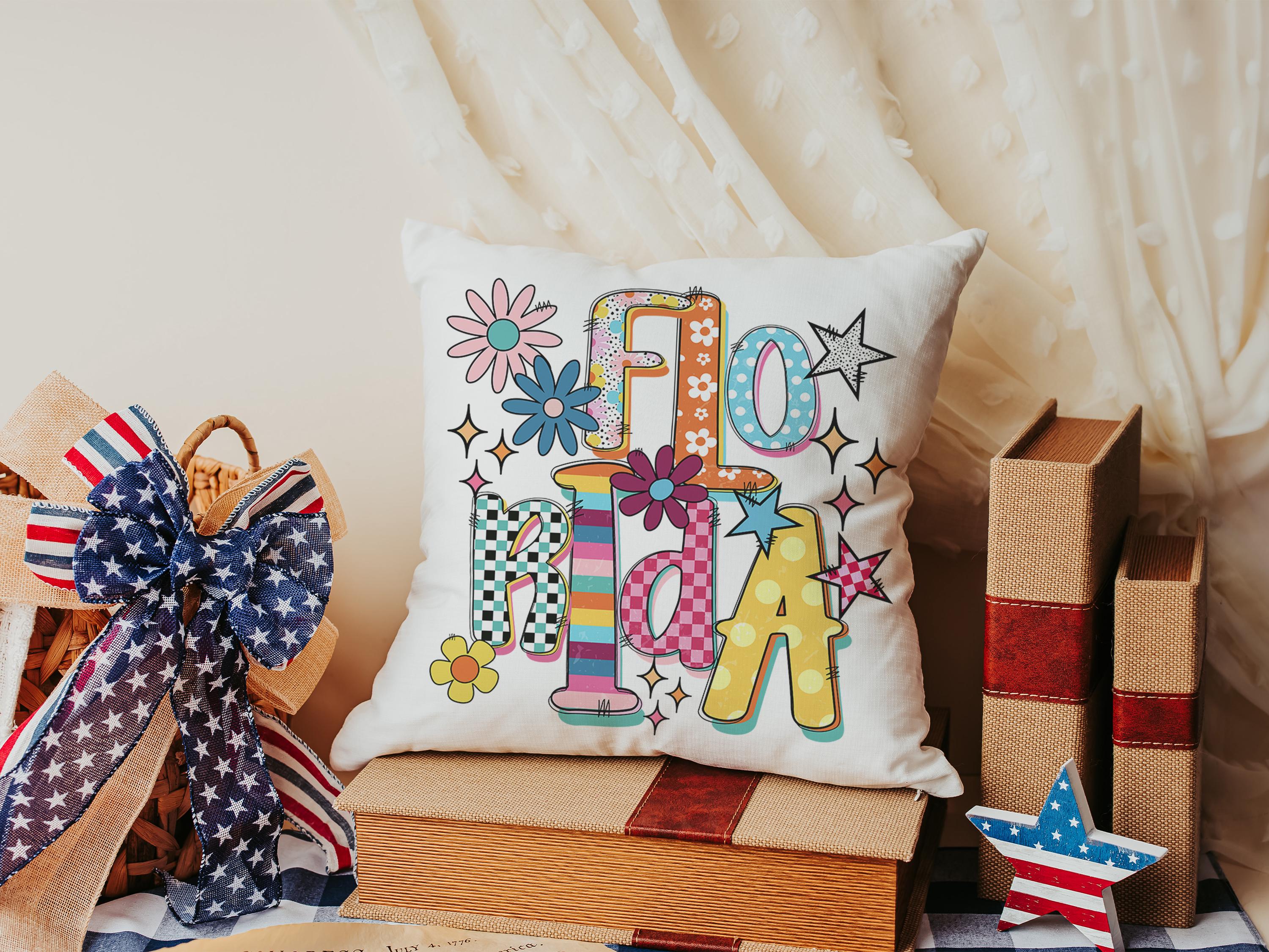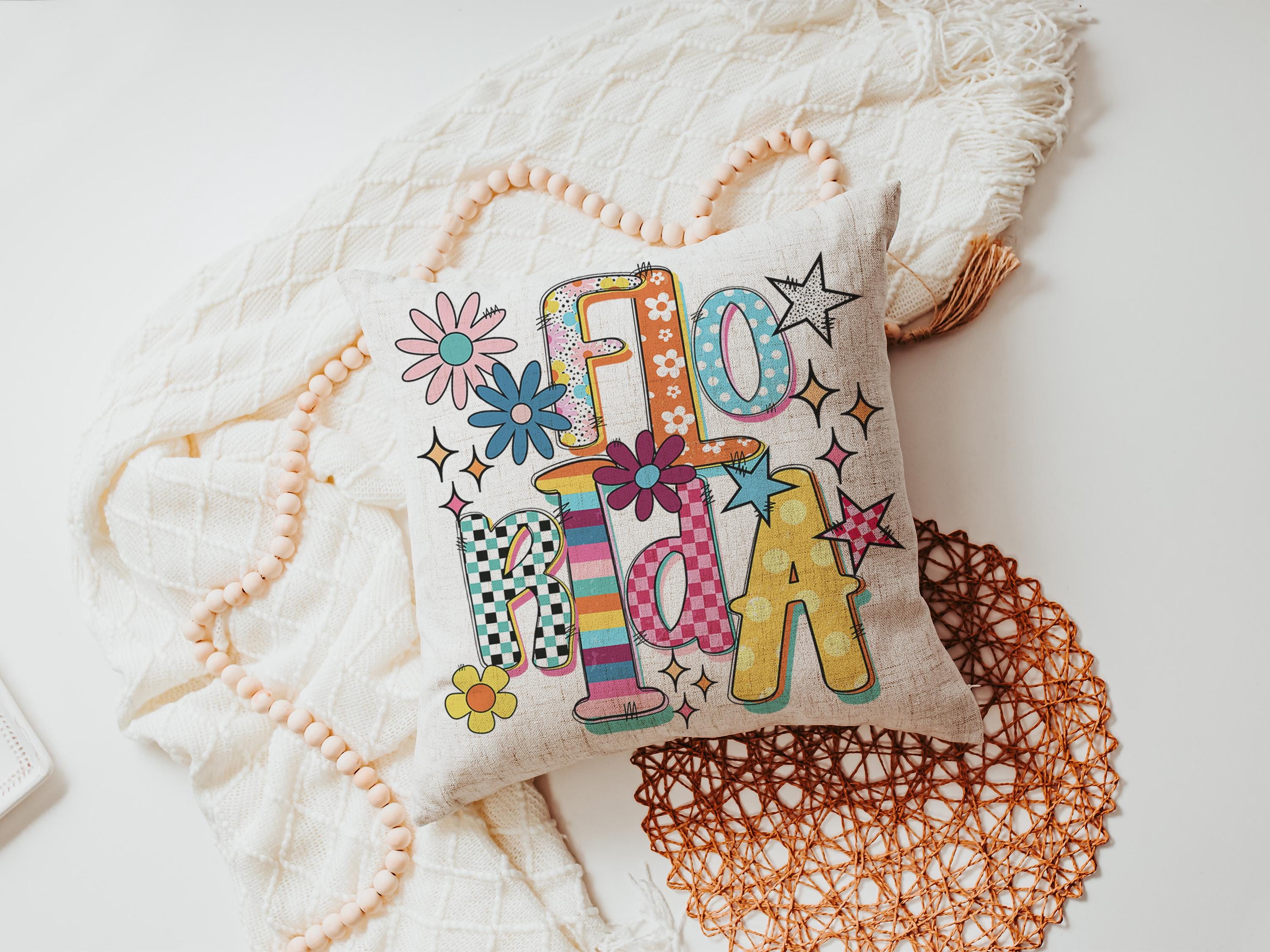 bright checkered Florida throw pillow for sunroom, Florida gifts for her, lanai decor, boho decorative pillows for sofa, 2026 decor trends