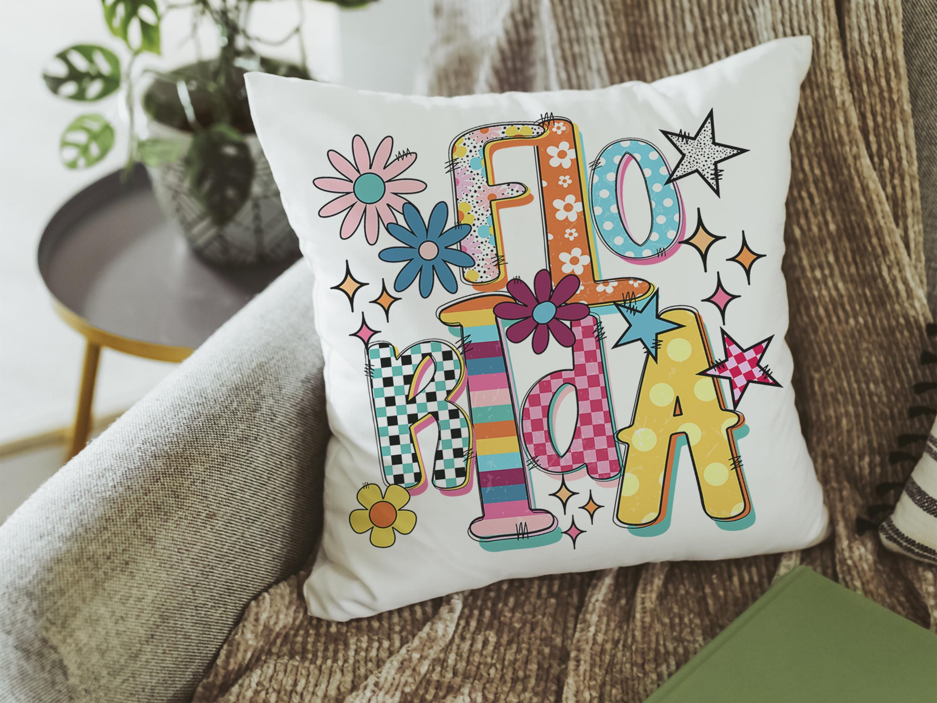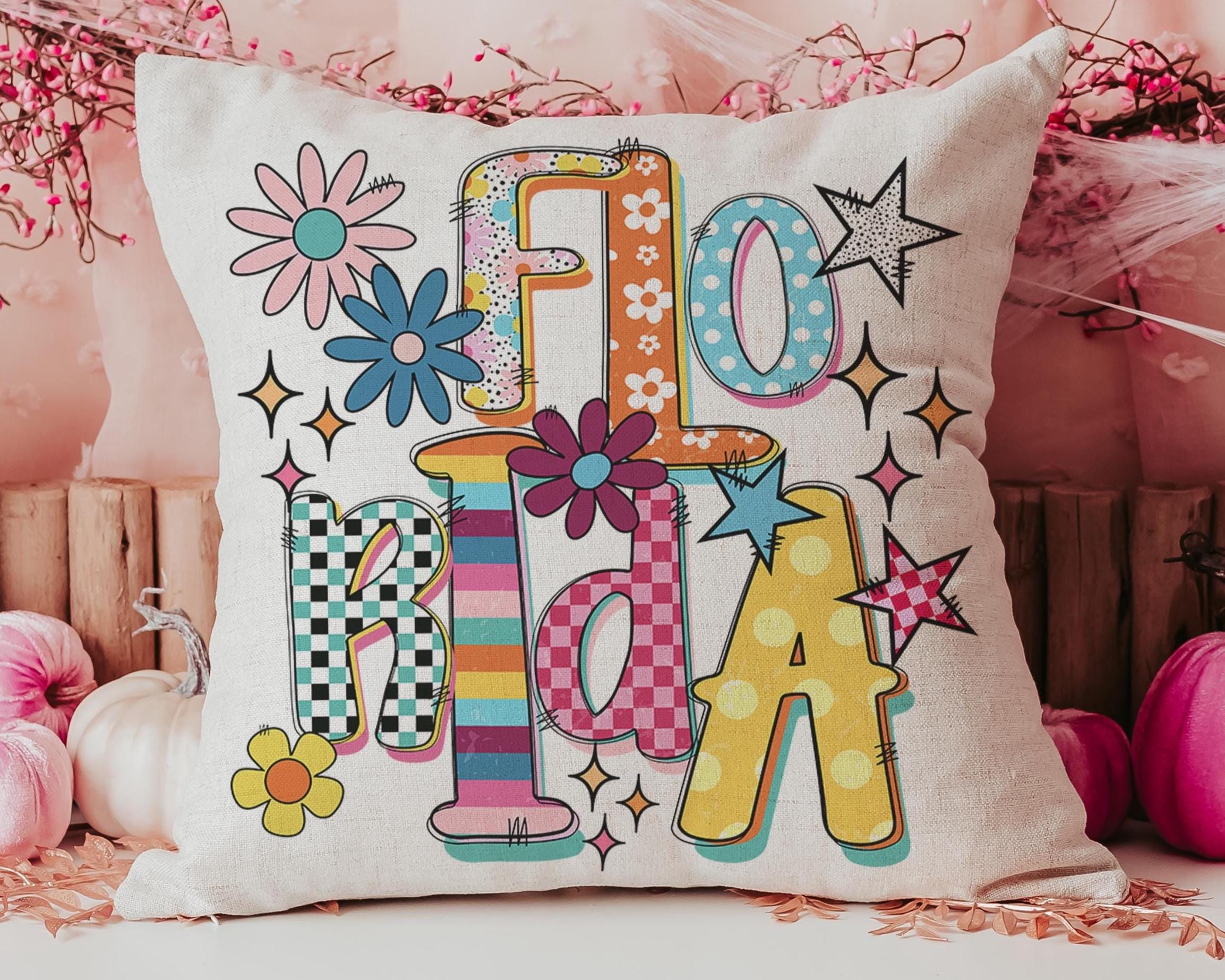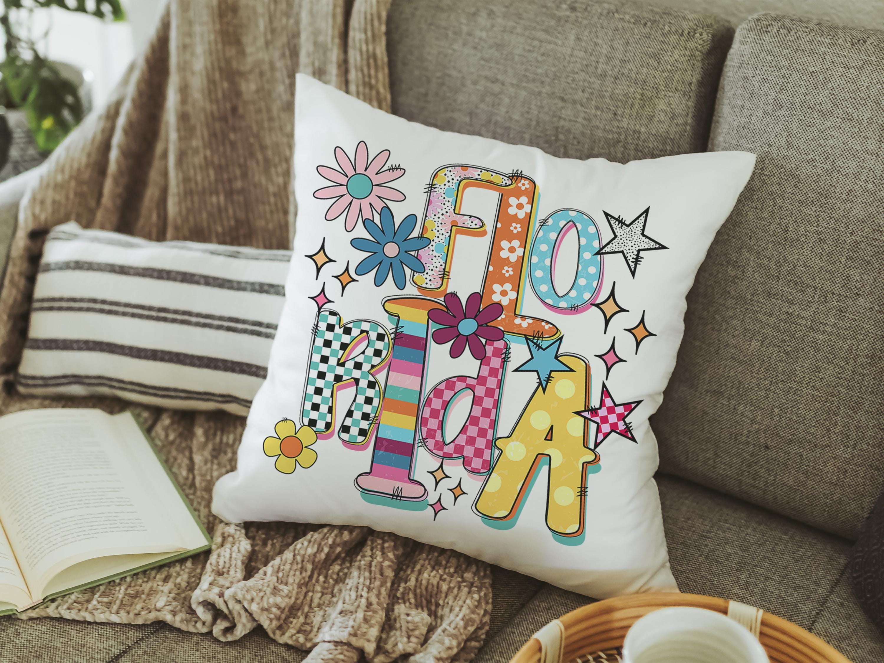 bright checkered Florida throw pillow for sunroom, Florida gifts for her, lanai decor, boho decorative pillows for sofa, 2026 decor trends