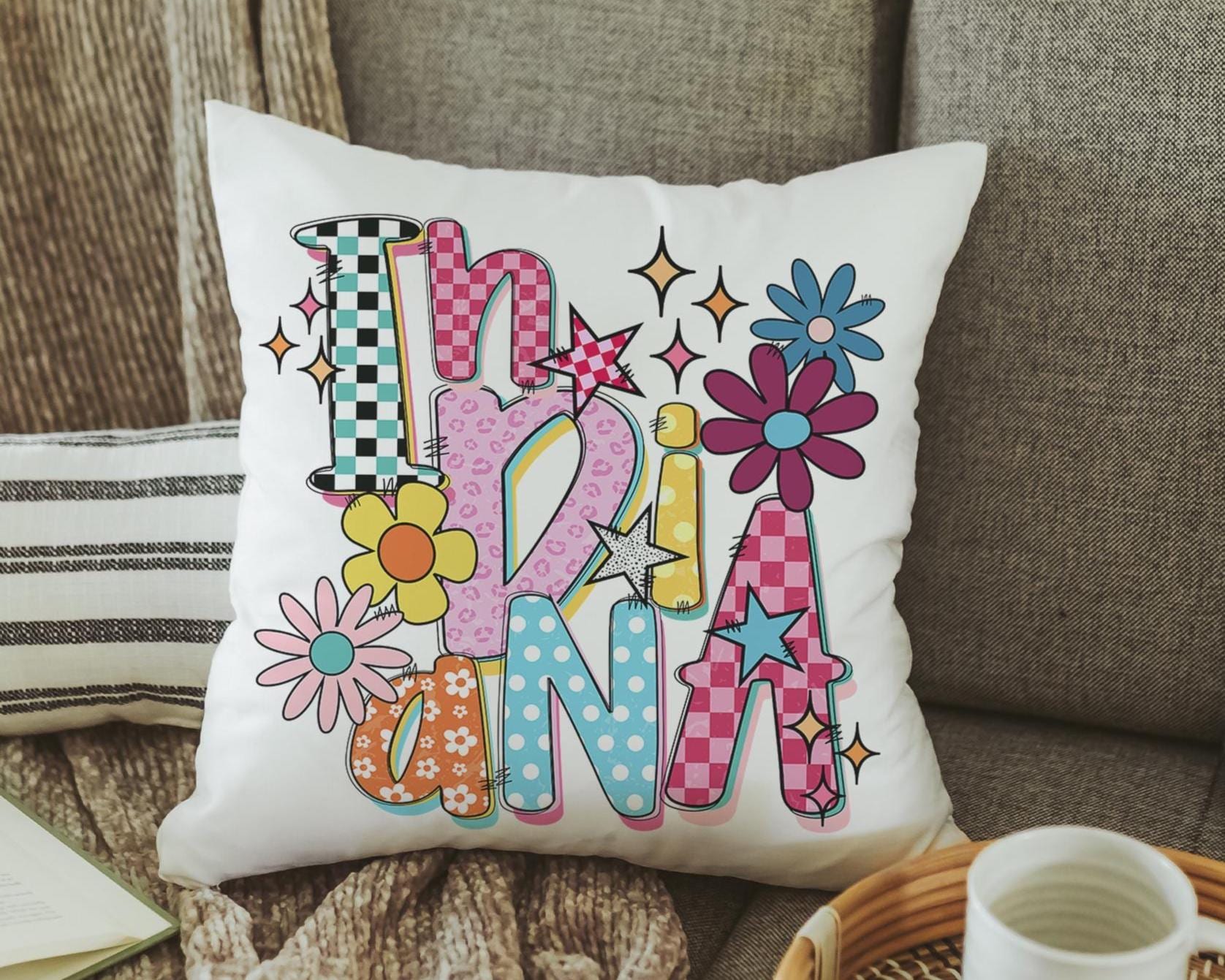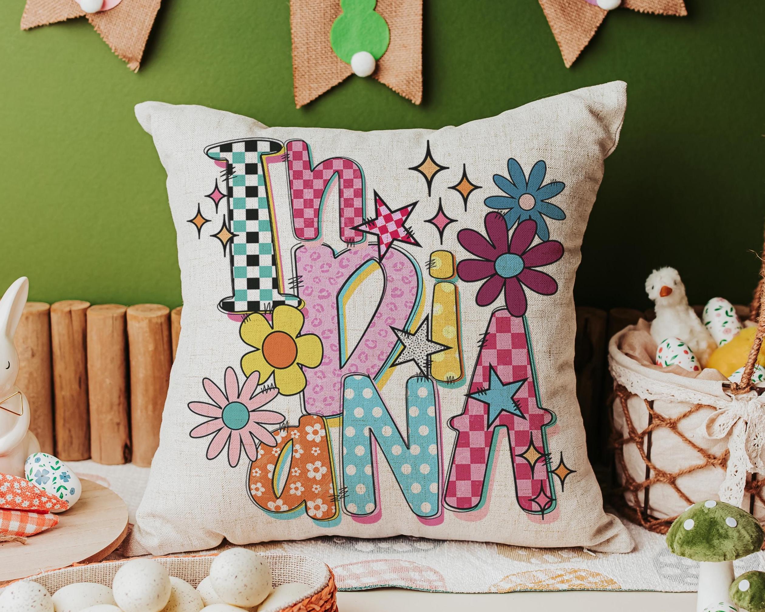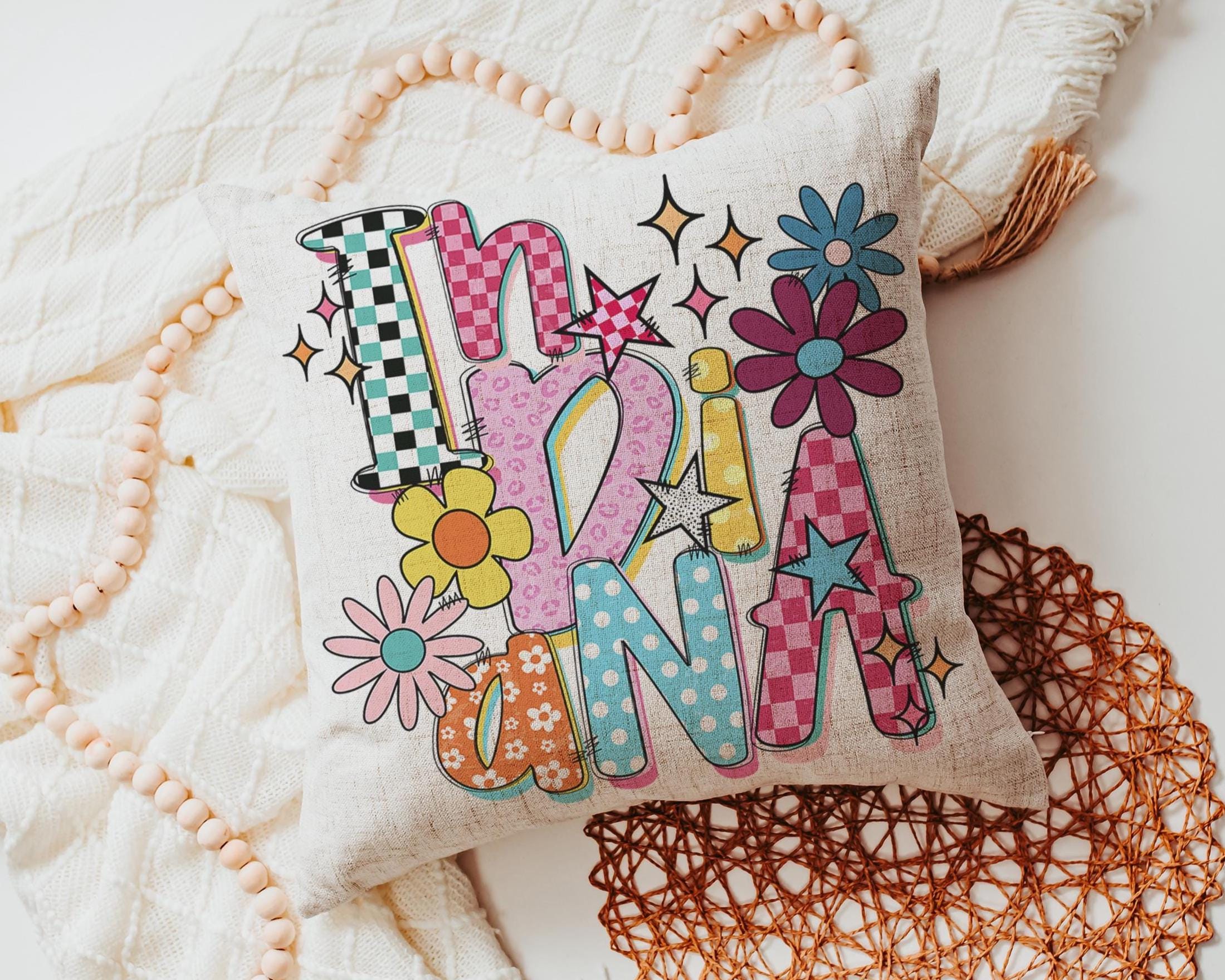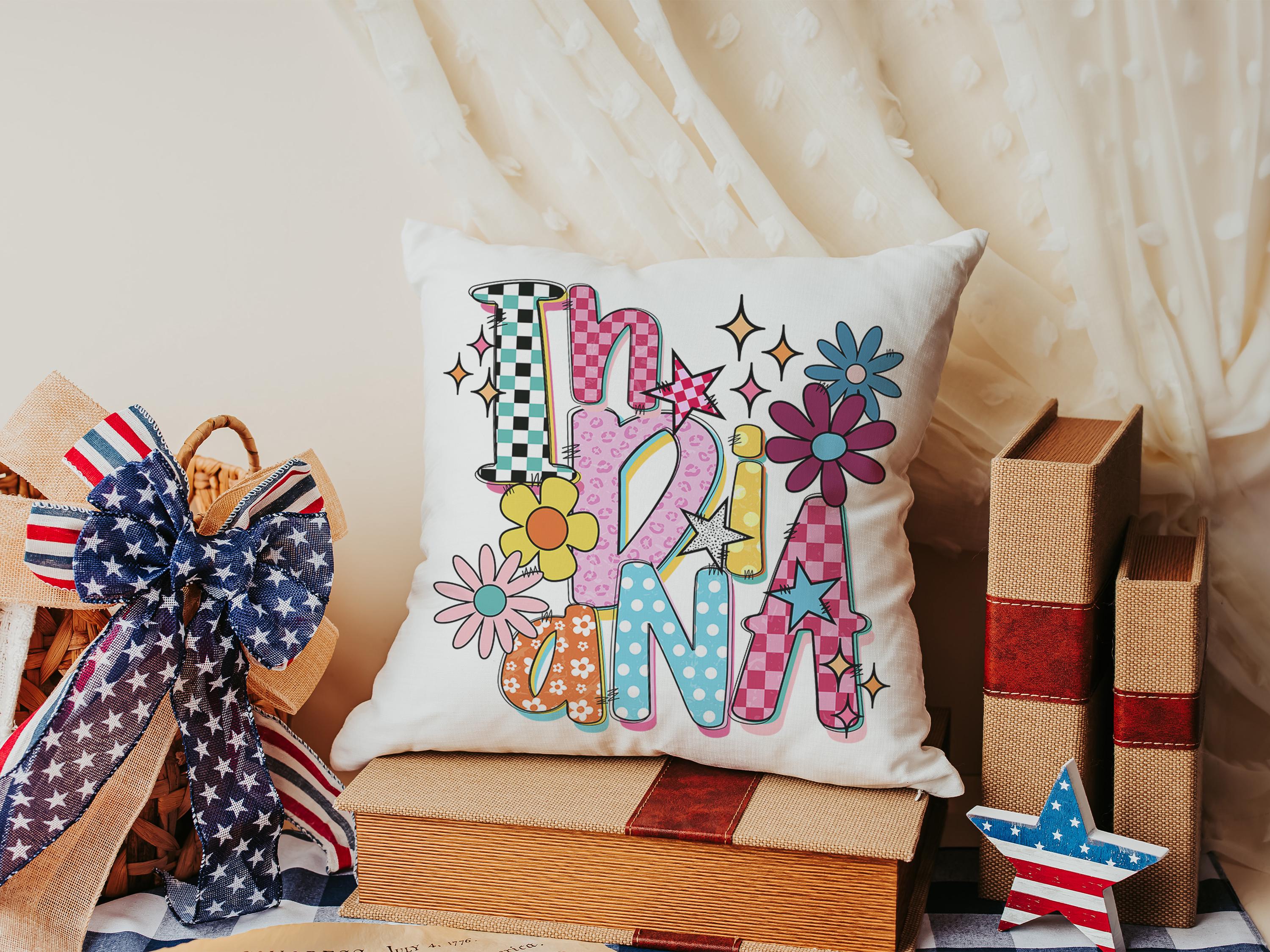 Custom Indiana state throw pillows for couch, colorful hippie pillows for bed, cute Indiana college care package for her, colorful pillows
