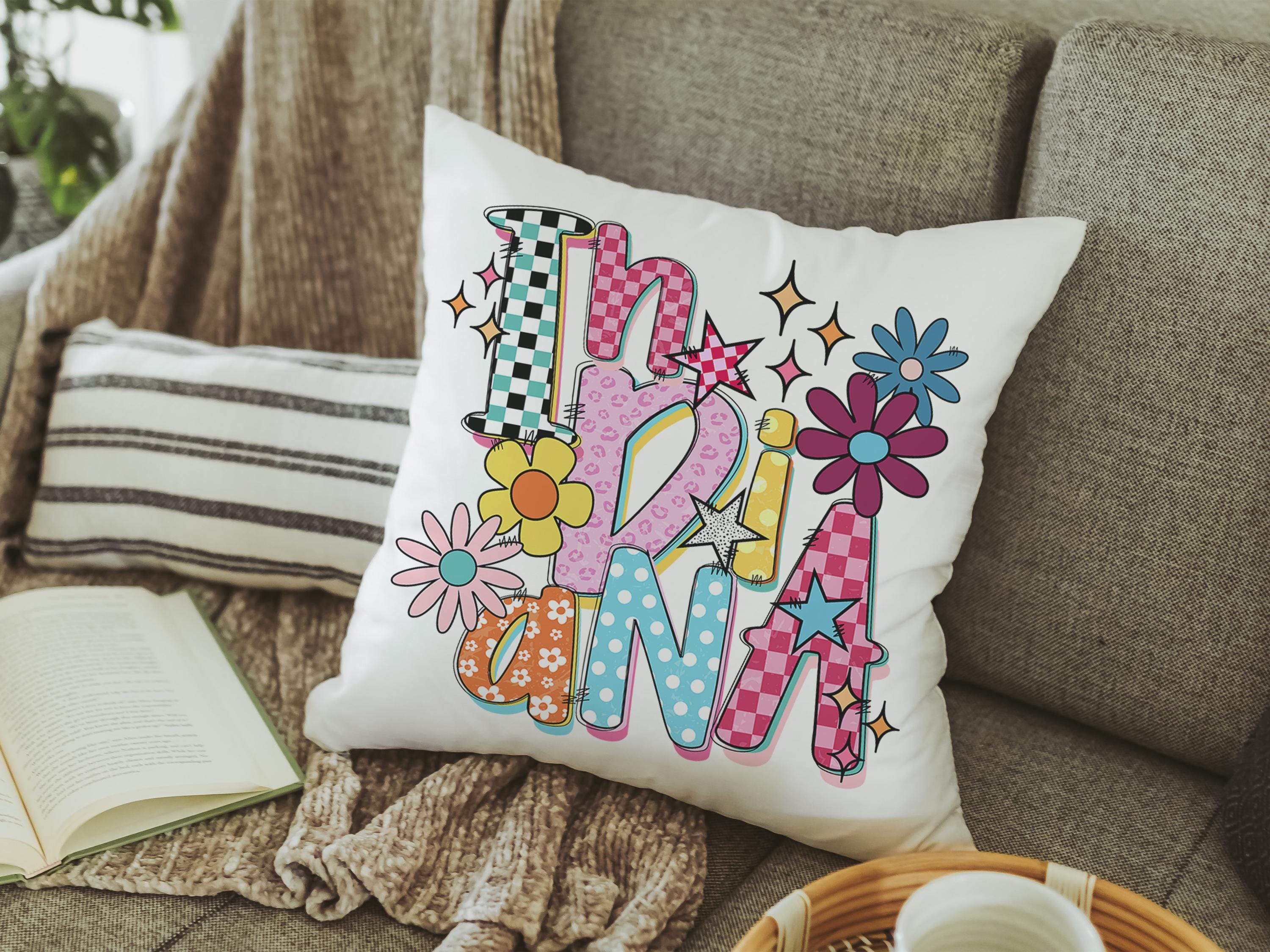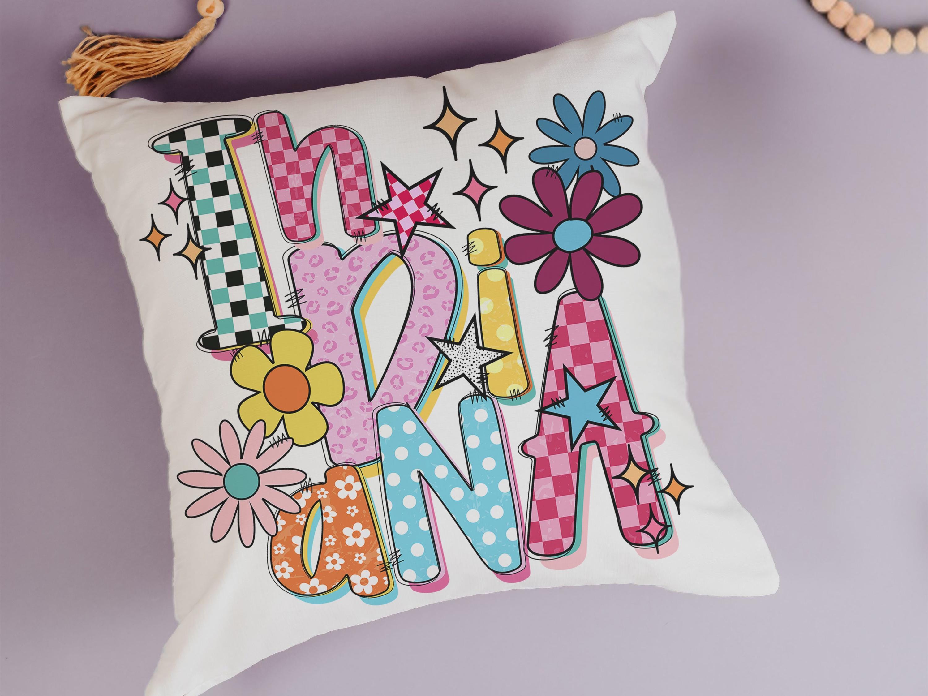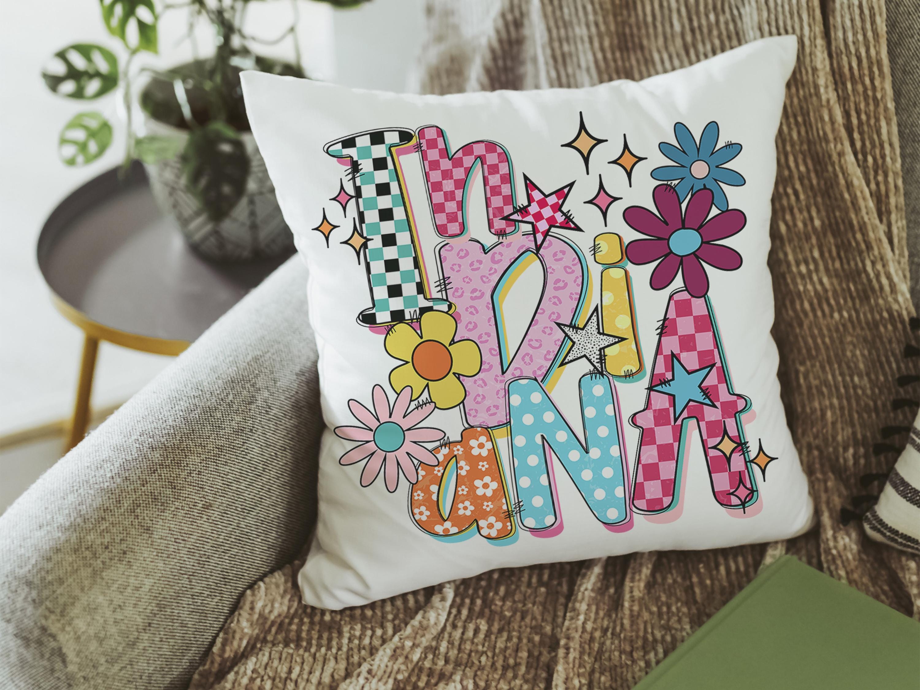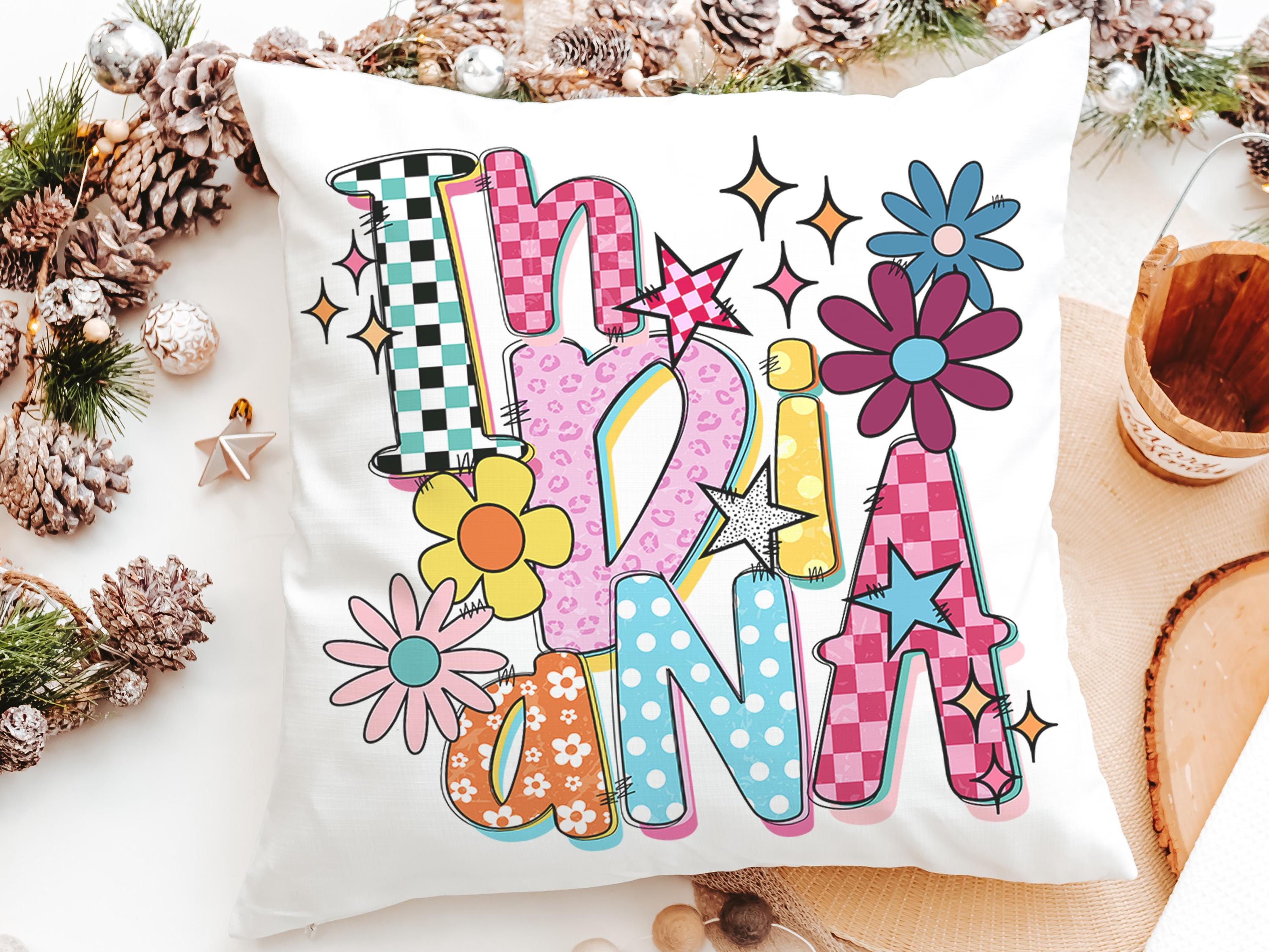 Custom Indiana state throw pillows for couch, colorful hippie pillows for bed, cute Indiana college care package for her, colorful pillows