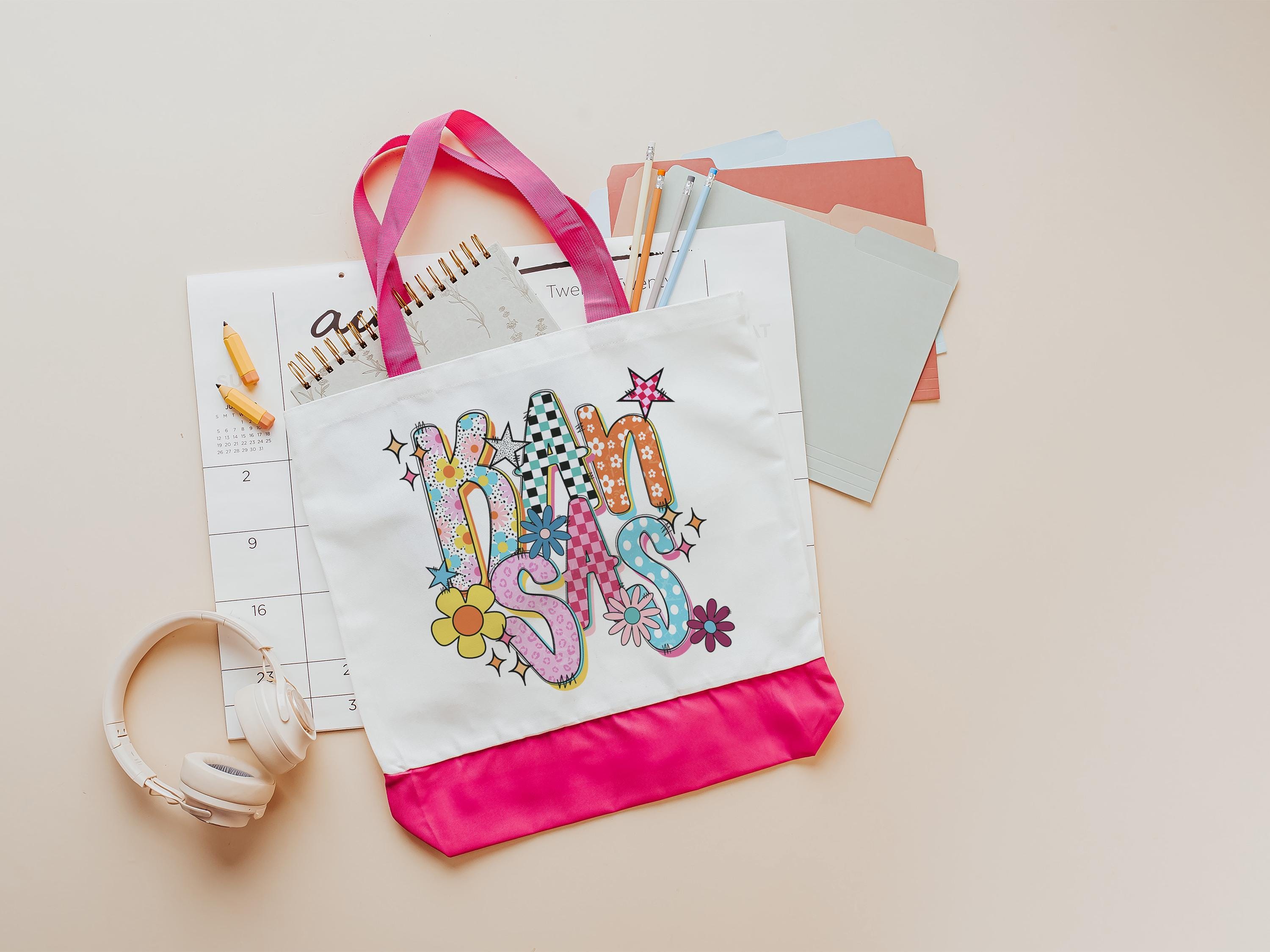 A practical everyday tote for school days, work, or errands, with a Kansas style that works across daily use. Trendy checkered, baby pink, and leopard print options make it a wonderful pick for teachers or real estate agents. A cute Kansas gift that fits year-round.