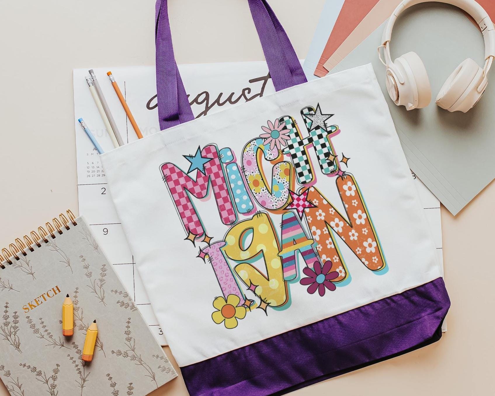A versatile tote for school days, work, or errands, bringing a Michigan touch into everyday use. Pink checkered style makes it a cute pick for teachers, real estate agents, or girls who love state-inspired gifts. A practical Michigan gift for women that works year-round.