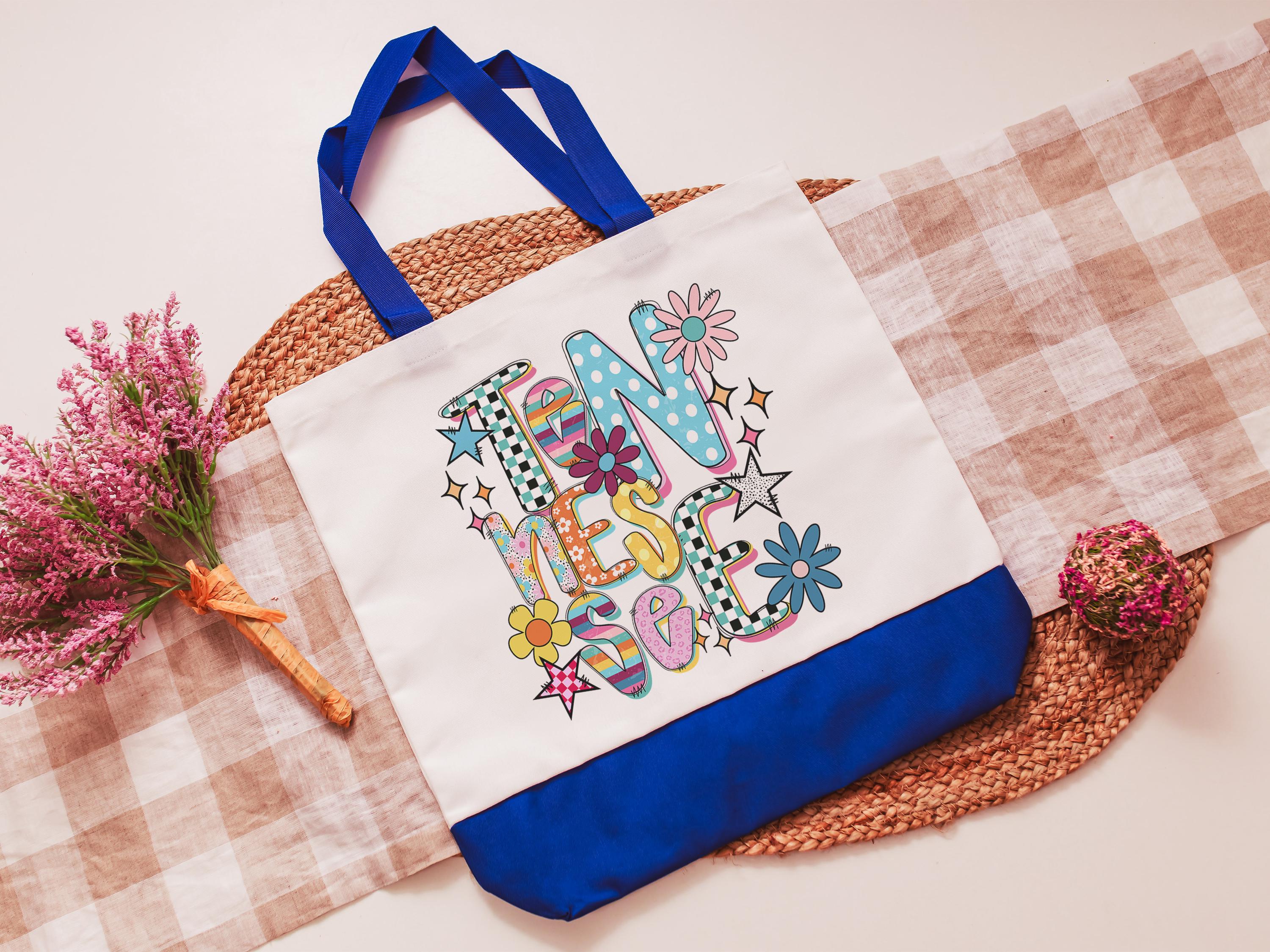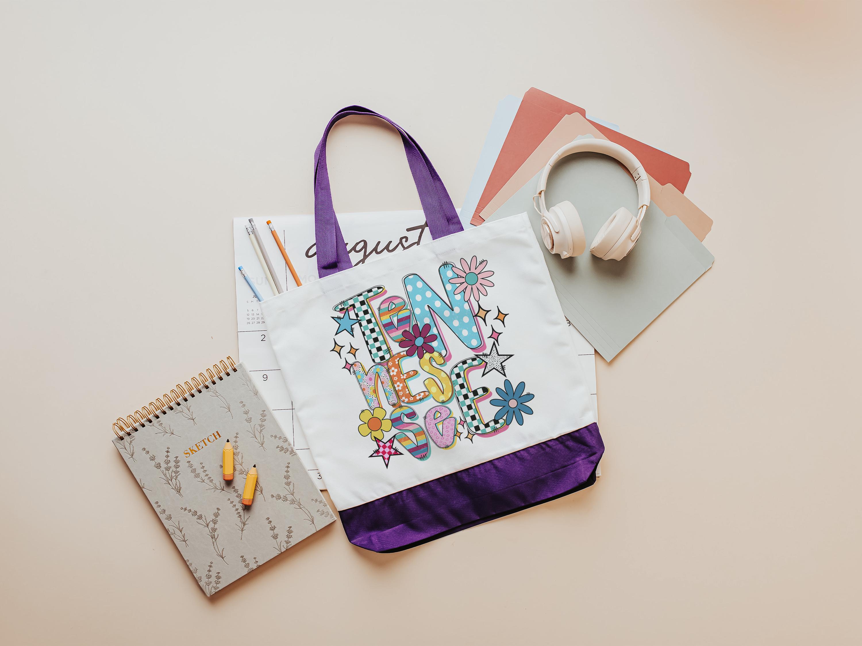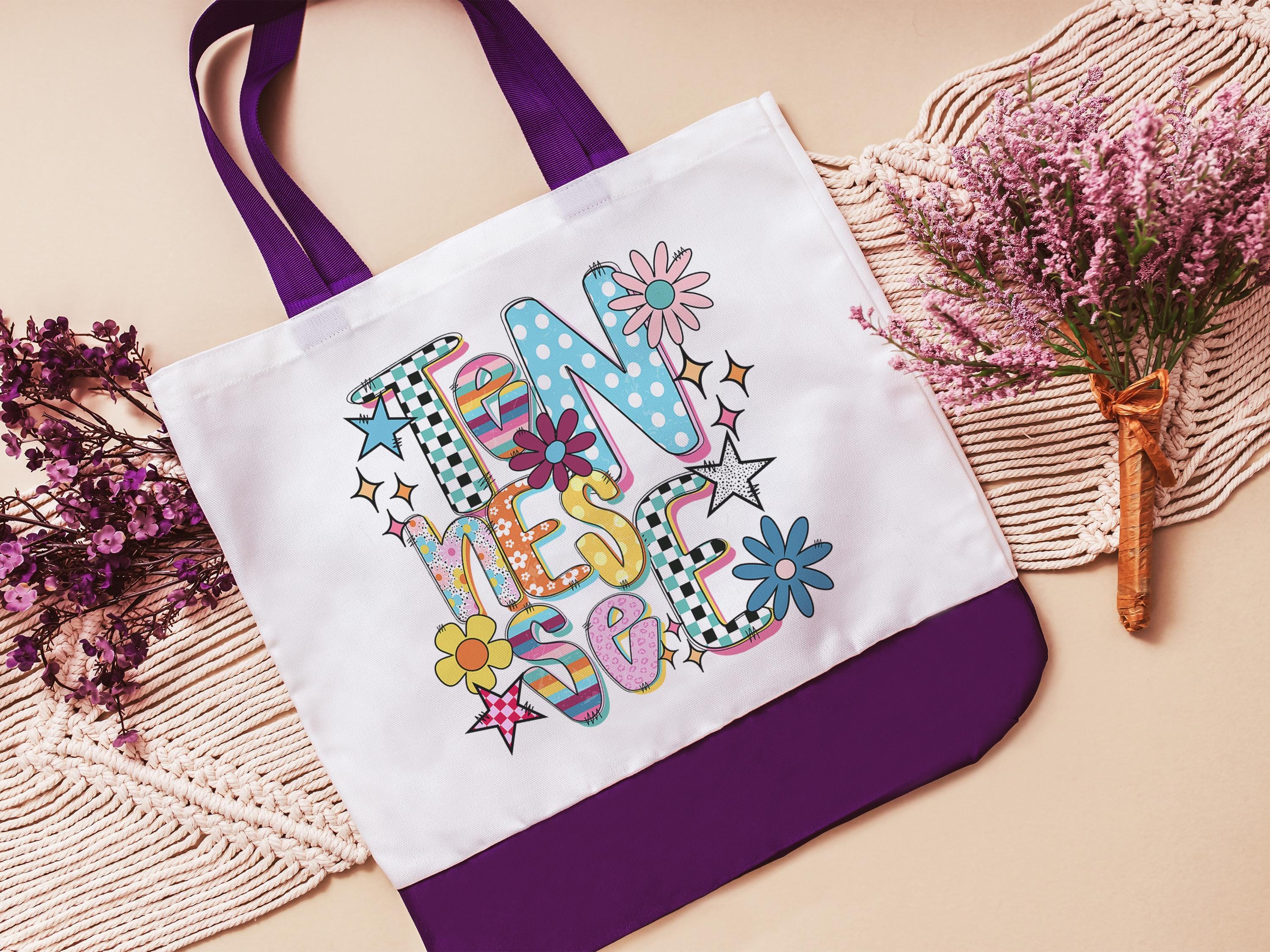 A fun everyday tote that works for school days, girls trips, or running errands, with a cute Nashville style. Checkered, rainbow stripe, and floral options make it a perfect pick for real estate agents or a cute Tennessee gift. A practical bag that fits work, travel, and daily use.