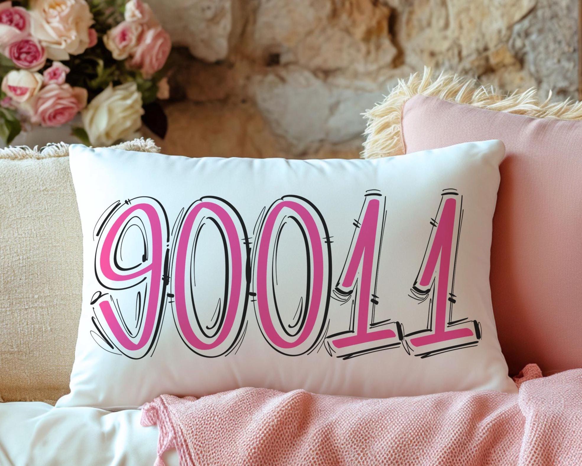 custom pink zip code pillow lumbar throw pillows for couch pink school spirit decor, college dorm essentials, teenage girl gifts