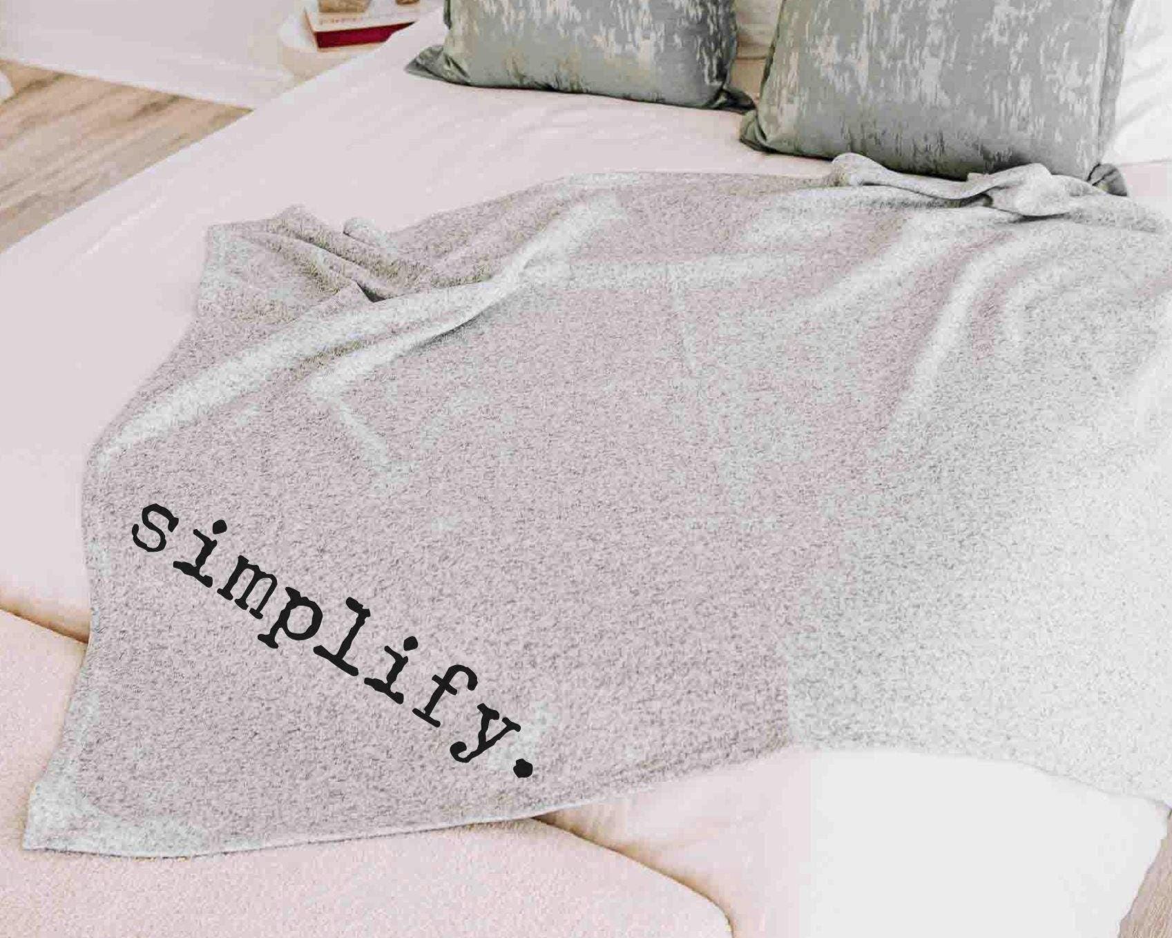 A meaningful accent for a couch or reading corner, designed to keep your word close all season long. Simplify works as a custom word of the year or mantra, making it an encouraging gift. A snuggle blanket sized just right for everyday comfort and intentional living. To customize yours, after purchasing your blanket, click on "Ask A Question" to message me the word for your blanket.