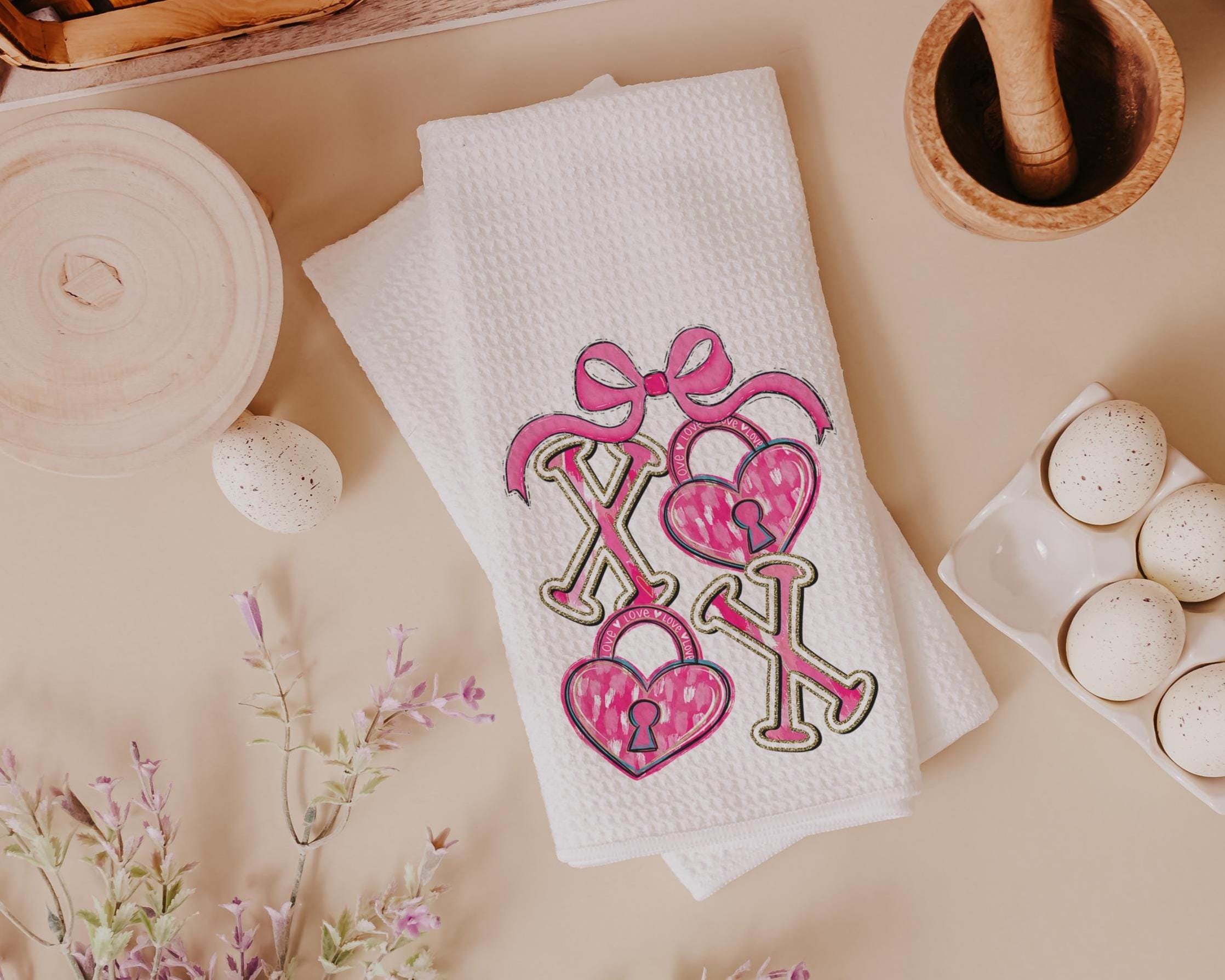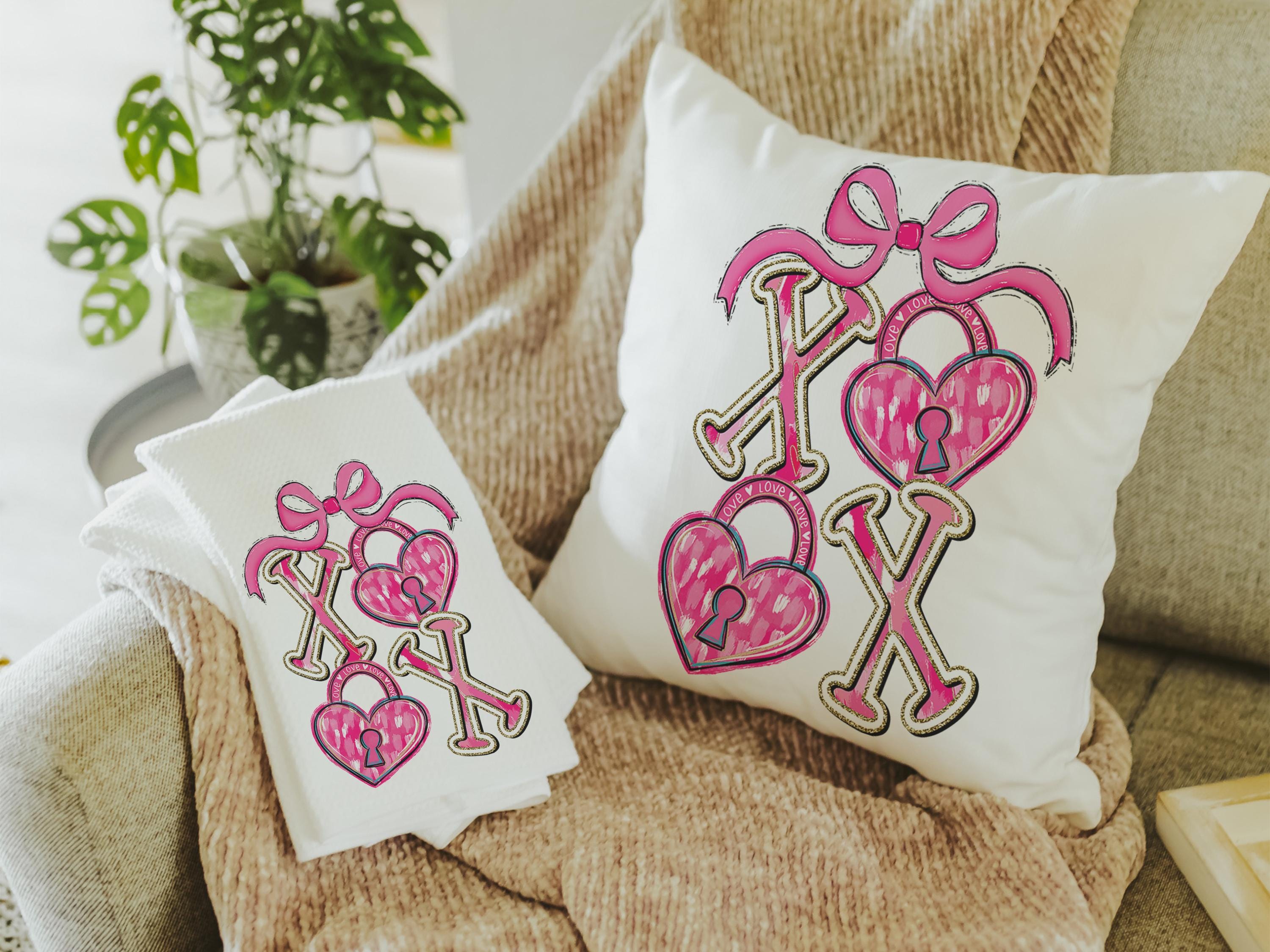 A sweet Valentine refresh for the kitchen or living space, with a throw pillow and matching towels that tie the look together. XOXO and Key to My Heart details, and a coquette touch that works well on a couch or as kitchen decor. A perfect Valentine’s Day gift for a girlfriend or wife and an easy pick for gifting with heart.