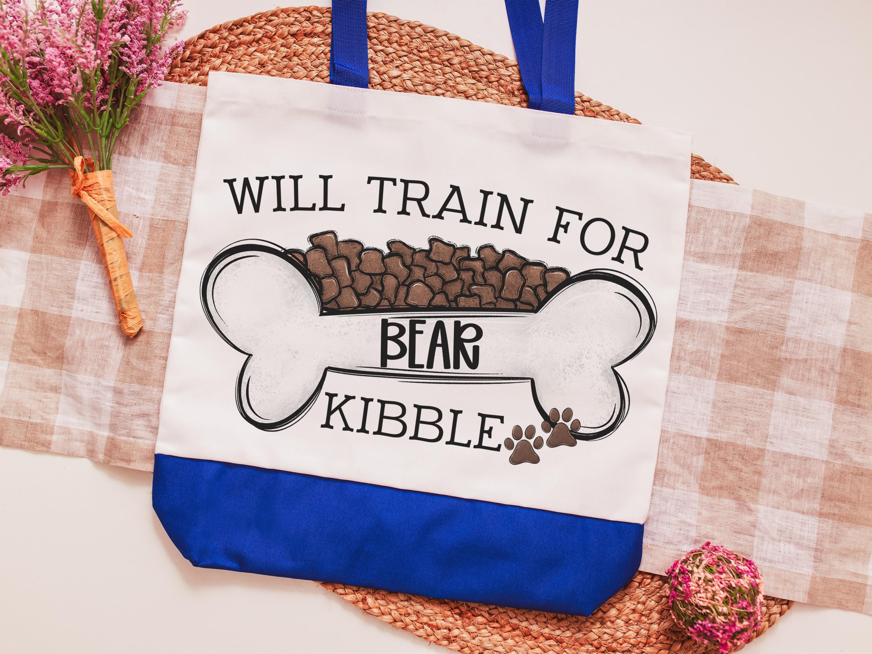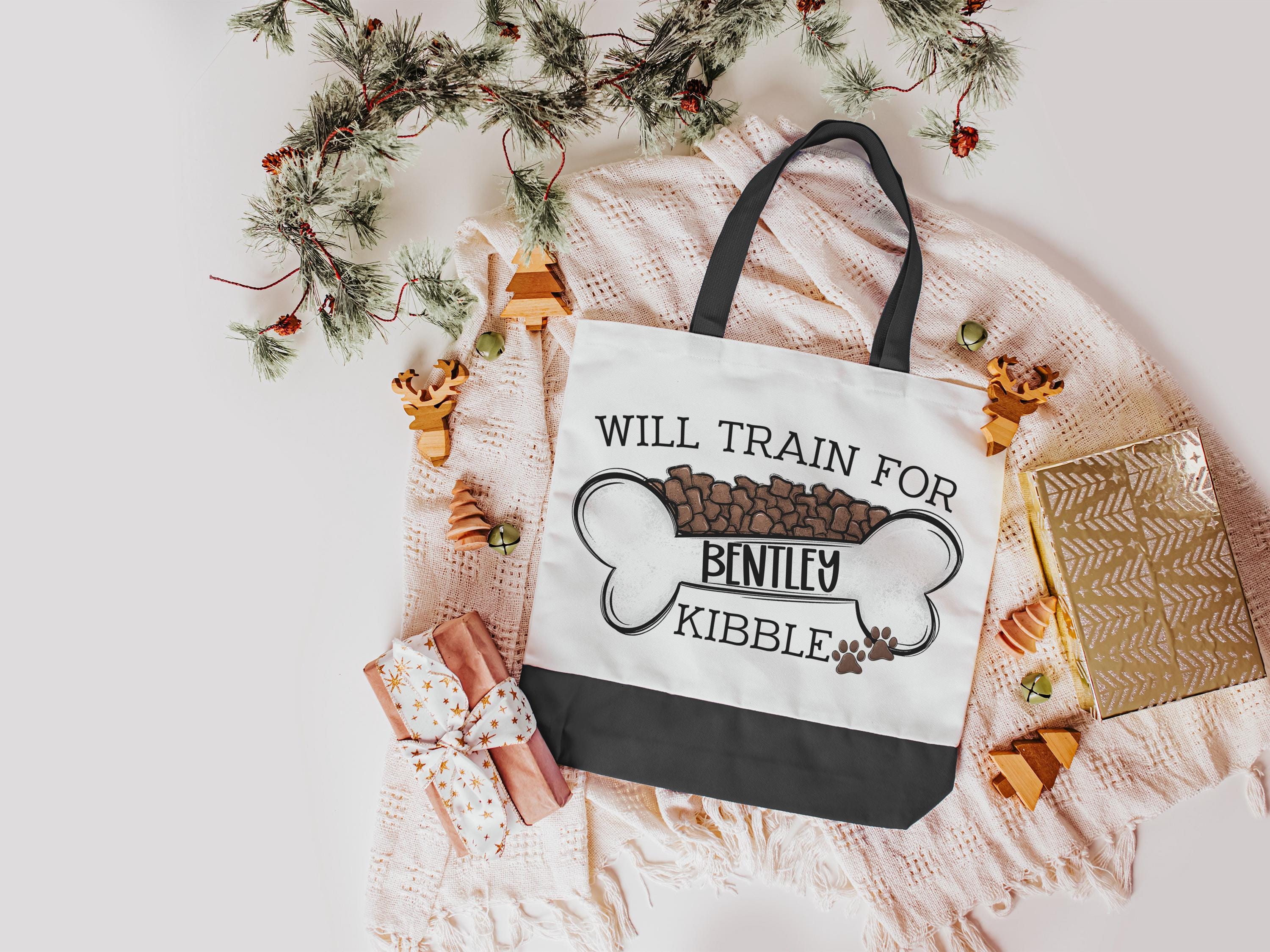 A practical option for training days or everyday errands, personalized for dog lovers who live for treat time. Will Train for Kibble brings a little humor to a tote, with a matching zipper pouch that works for obedience gear or small essentials. A fun, useful pick for dog moms and positive-reinforcement routines. ** To customize yours, after purchasing your bag (s), click on "Ask A Question" to message me your pets name.