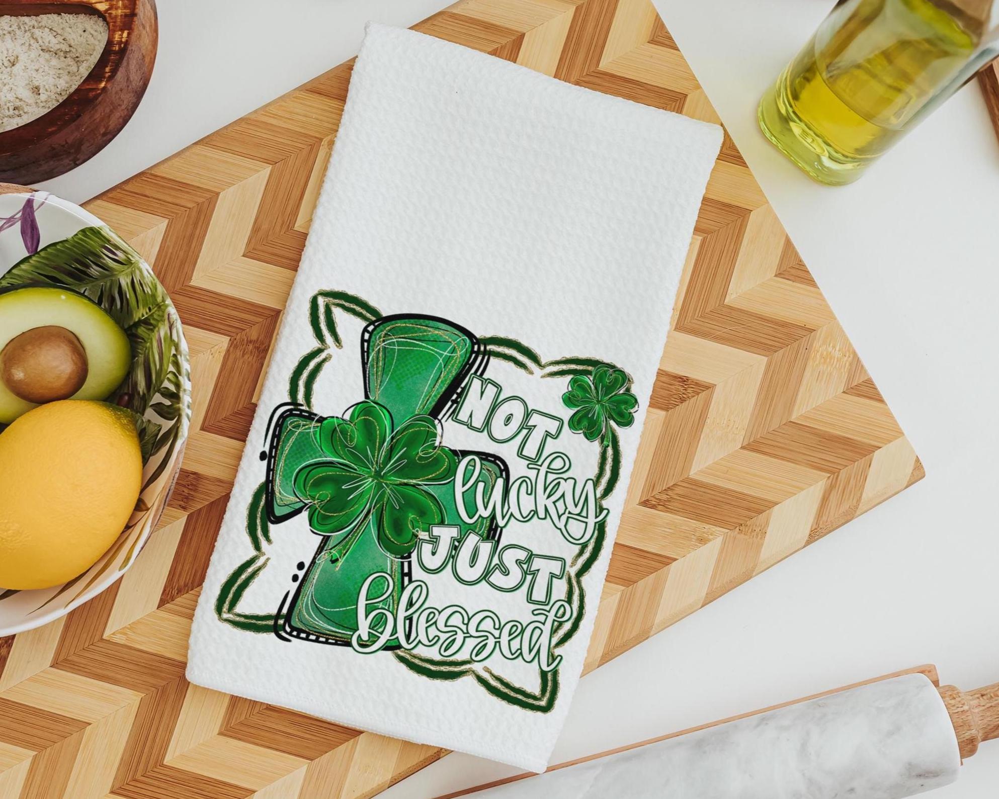 A faith-forward St. Patrick’s Day update for the kitchen or guest bath, with a towel and matching throw pillows that keep the look coordinated. Not Lucky Just Blessed with a shamrock cross blends Irish style and Christian decor. A nice pick for friends and a fun way to decorate for St. Patty’s Day.