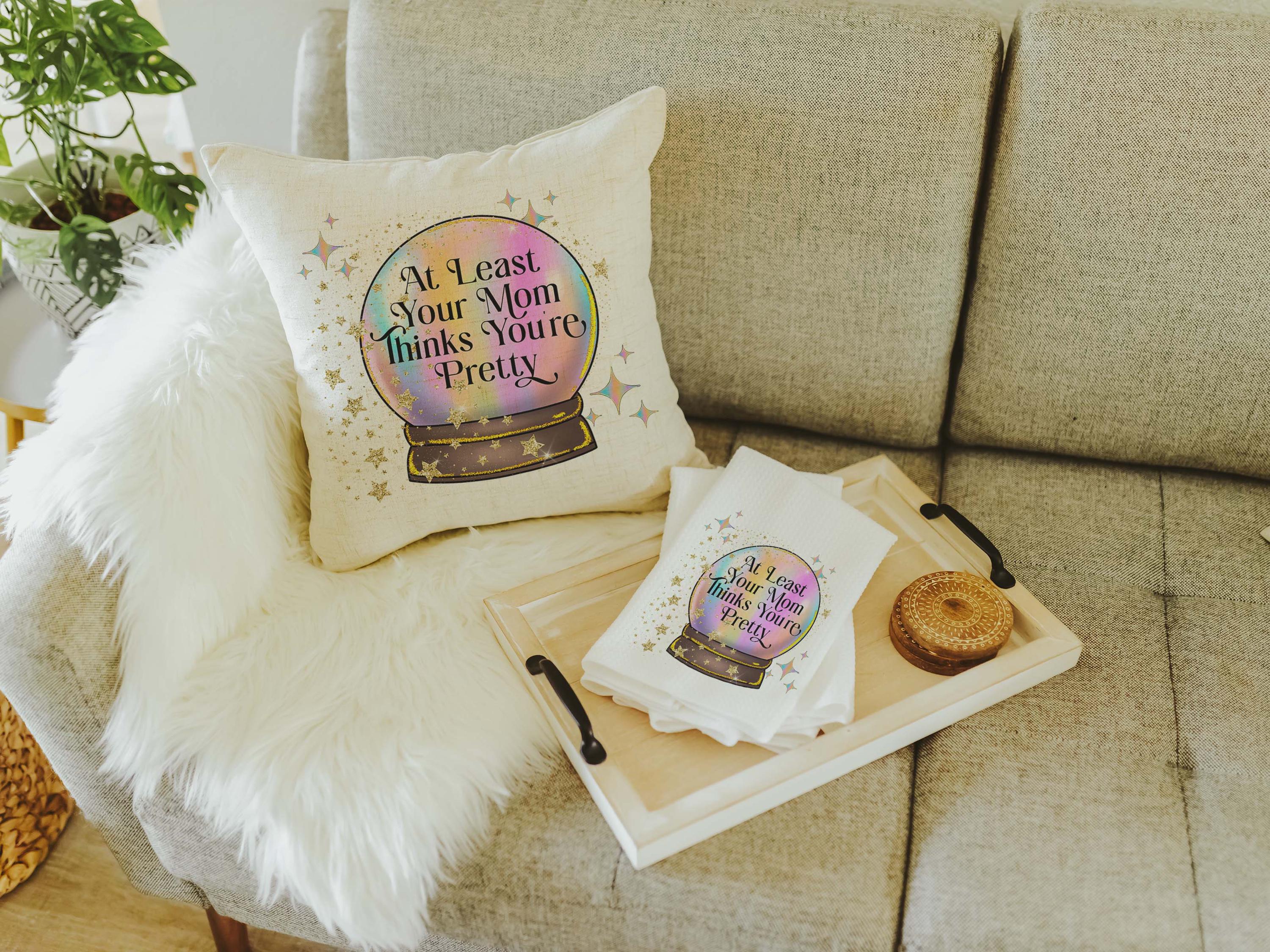 A fun crystal ball personalized with a saying, made for adding personality to a bedroom or dorm. Choose a funny pillow, matching towel, or both as a set for tween girls, teenage girls, college students, or as a cute birthday or new home gift for girls. *To customize yours, after purchasing your pillow and/or towel, click on "Ask A Question" to message me your saying. Font will be sized to fit words, if needed.