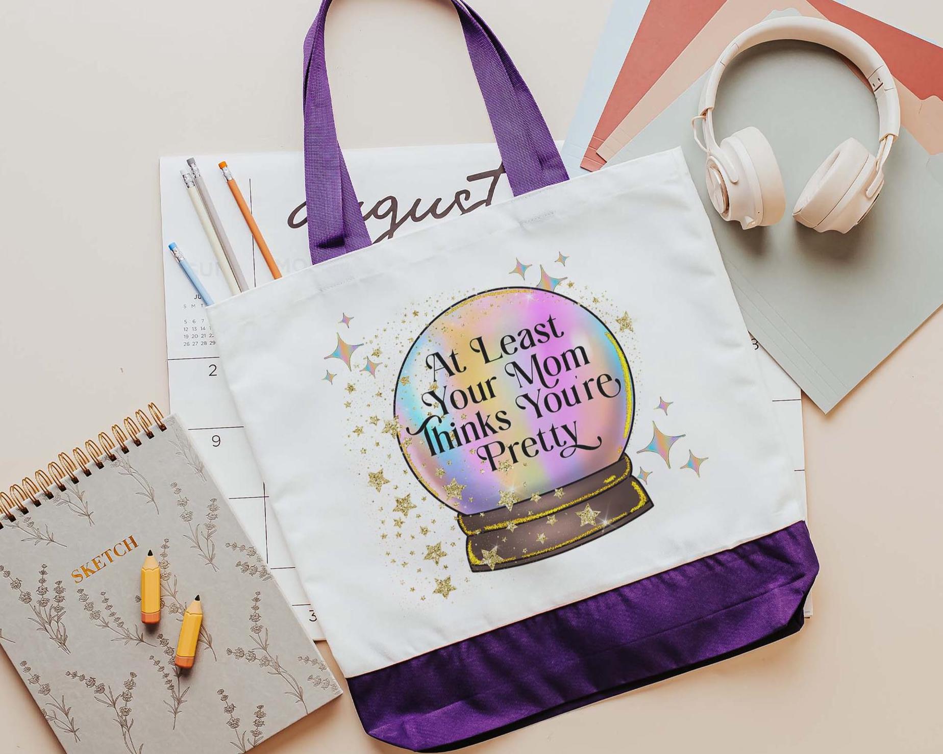 Matching tote bags are available separately — to purchase the tote bag only, go to this link: https://capablebydesign.com/listing/4459117722/personalized-crystal-ball-tote-bag-with