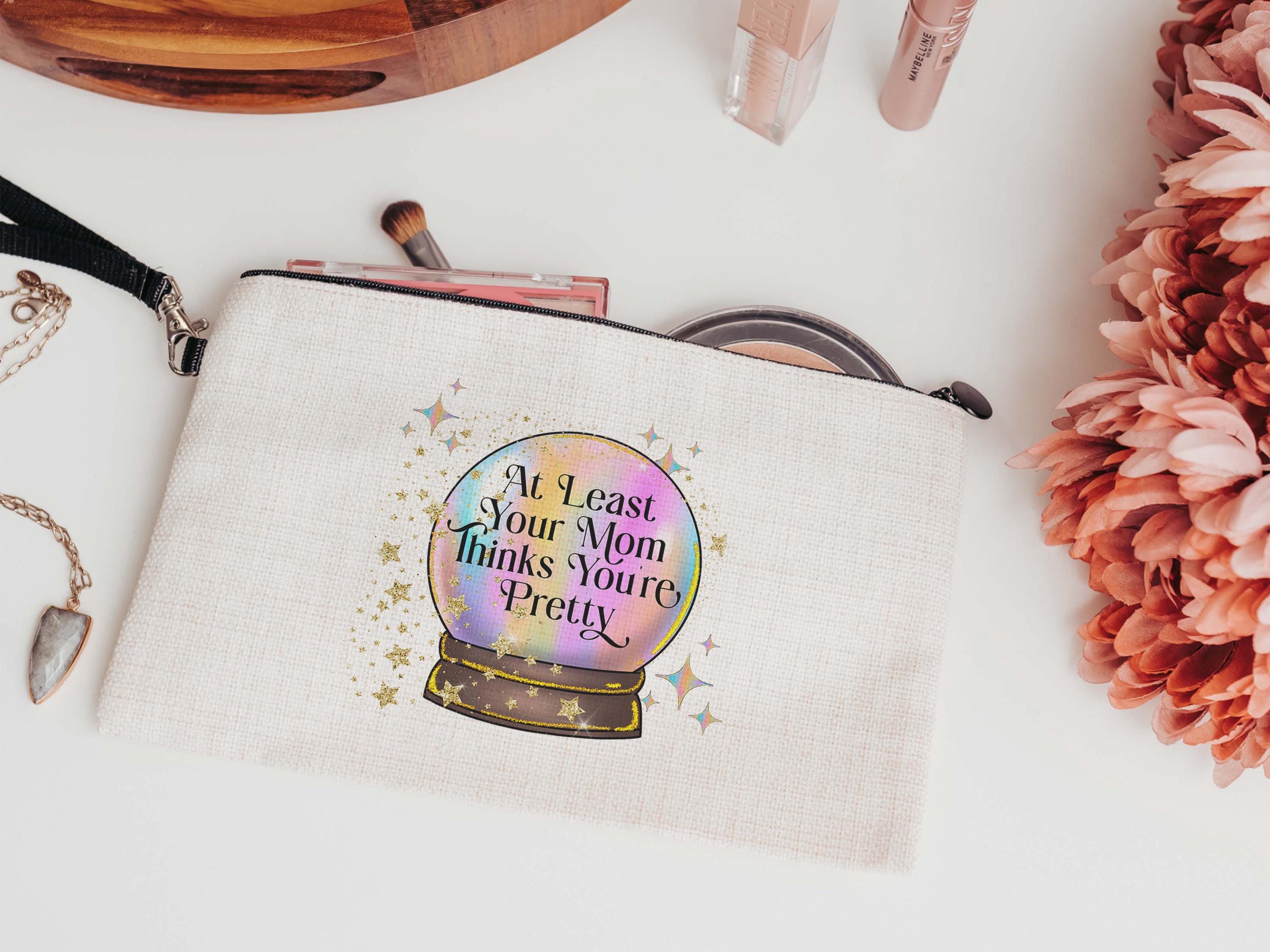 A custom quote makeup bag for your purse with crystal ball style and a little “nope” attitude. Choose the funny wristlet for women on its own or gift it as a snarky bestie gift, Easter basket stuffer, or fun pick for teens.