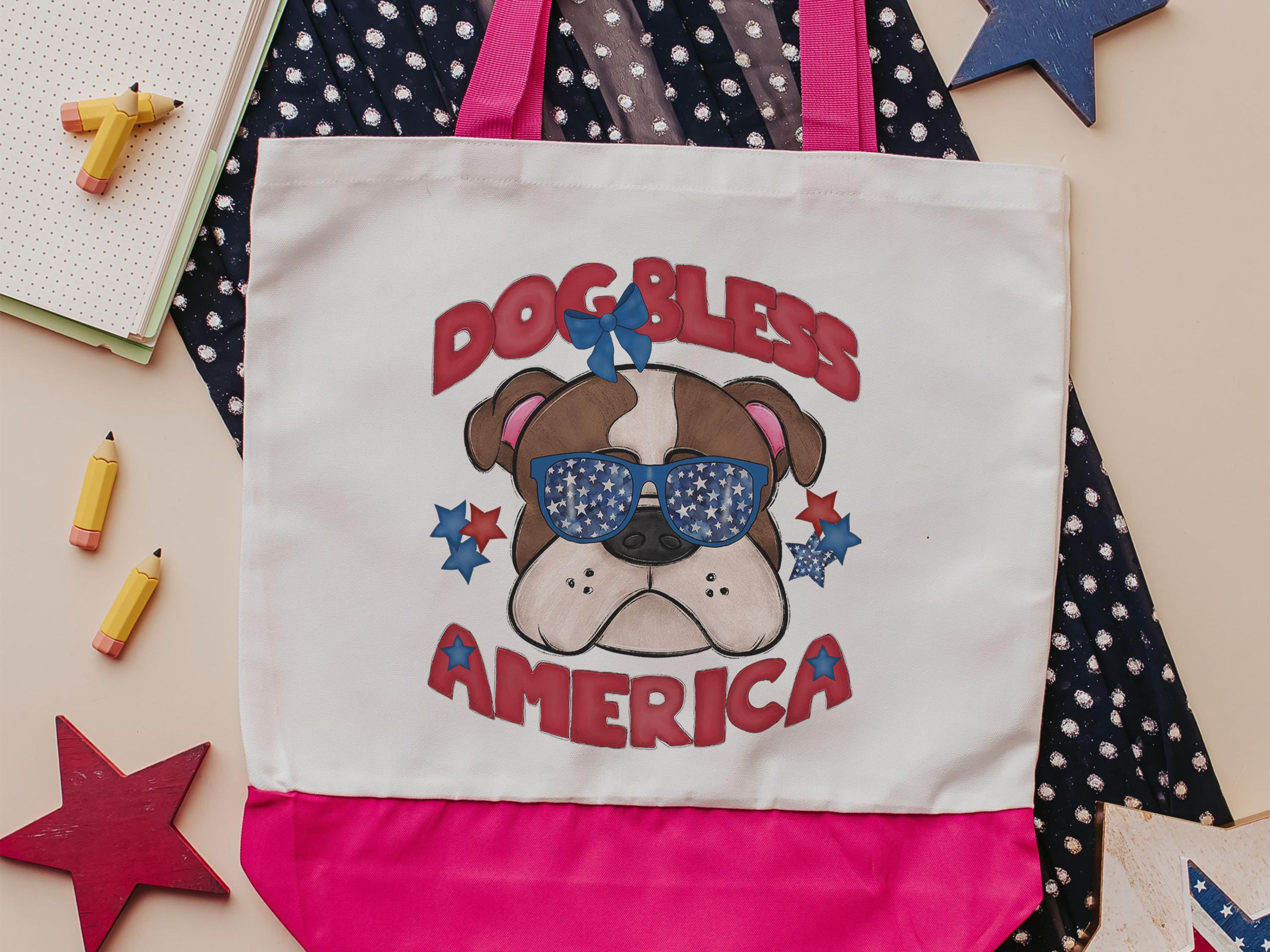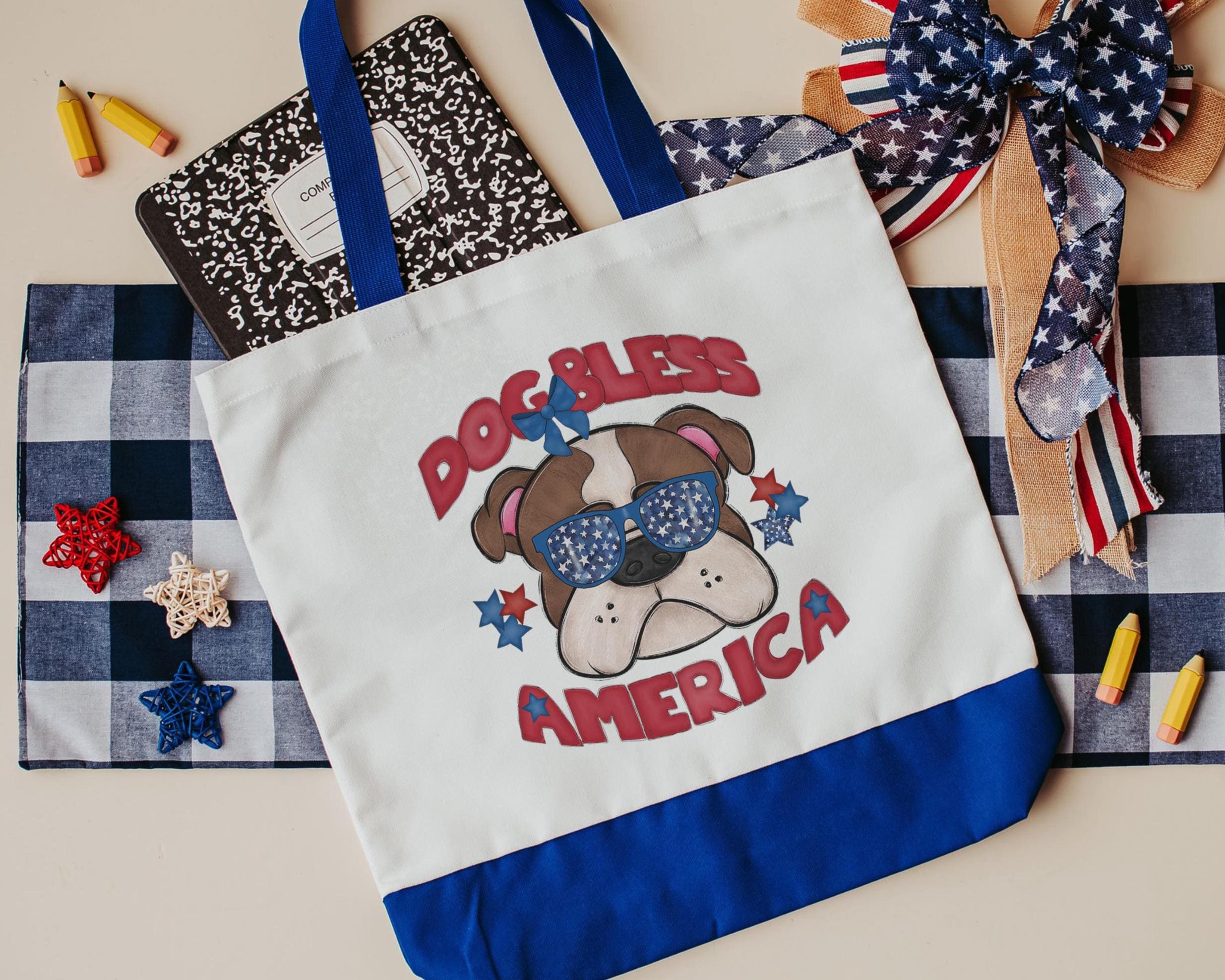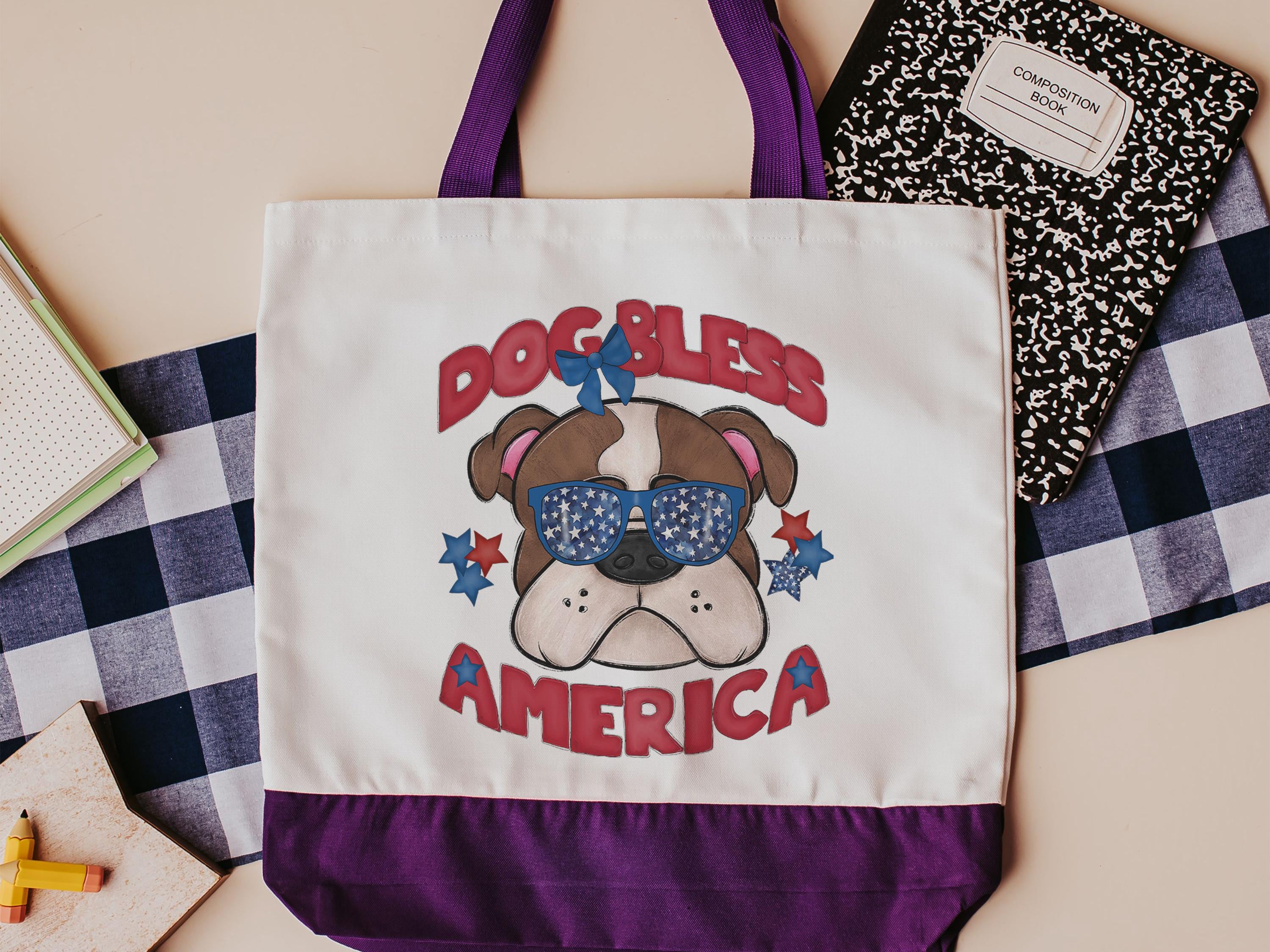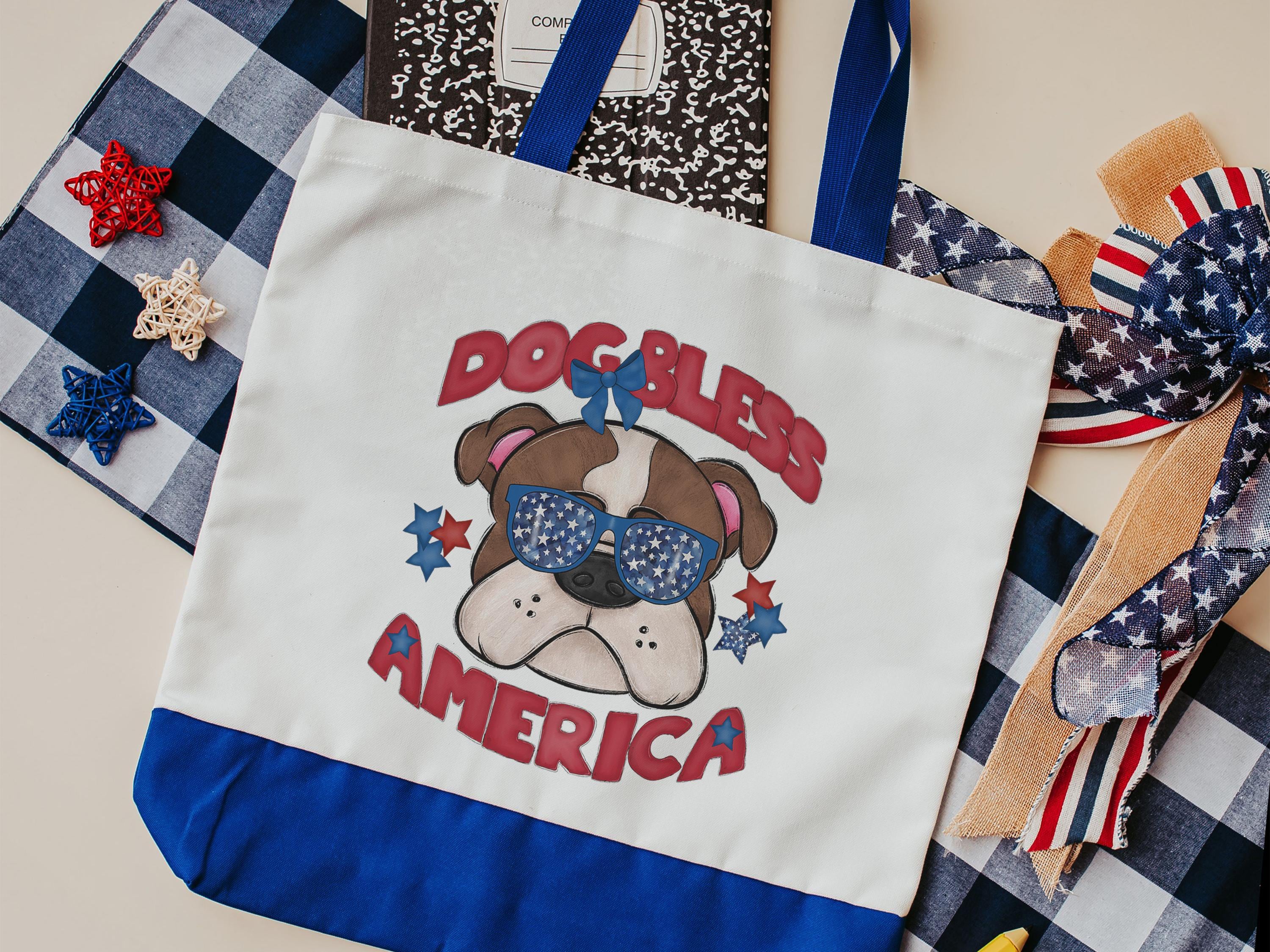Carry a little red, white, and blue with you with this Dog Bless America English bulldog tote. A handy bag for books, groceries, or everyday errands and a fun pick for bulldog moms. A great patriotic gift for dog lovers and 4th of July season.