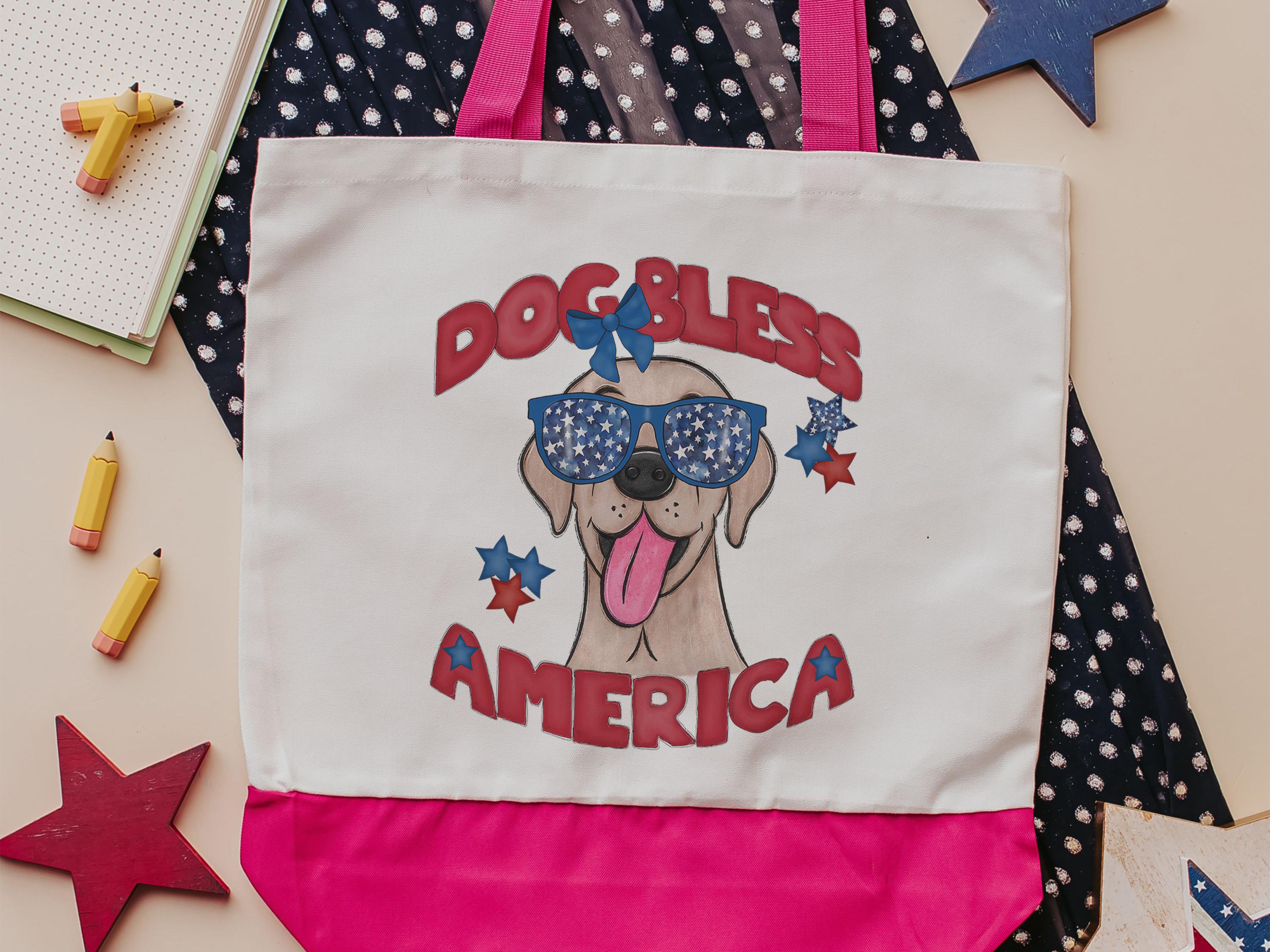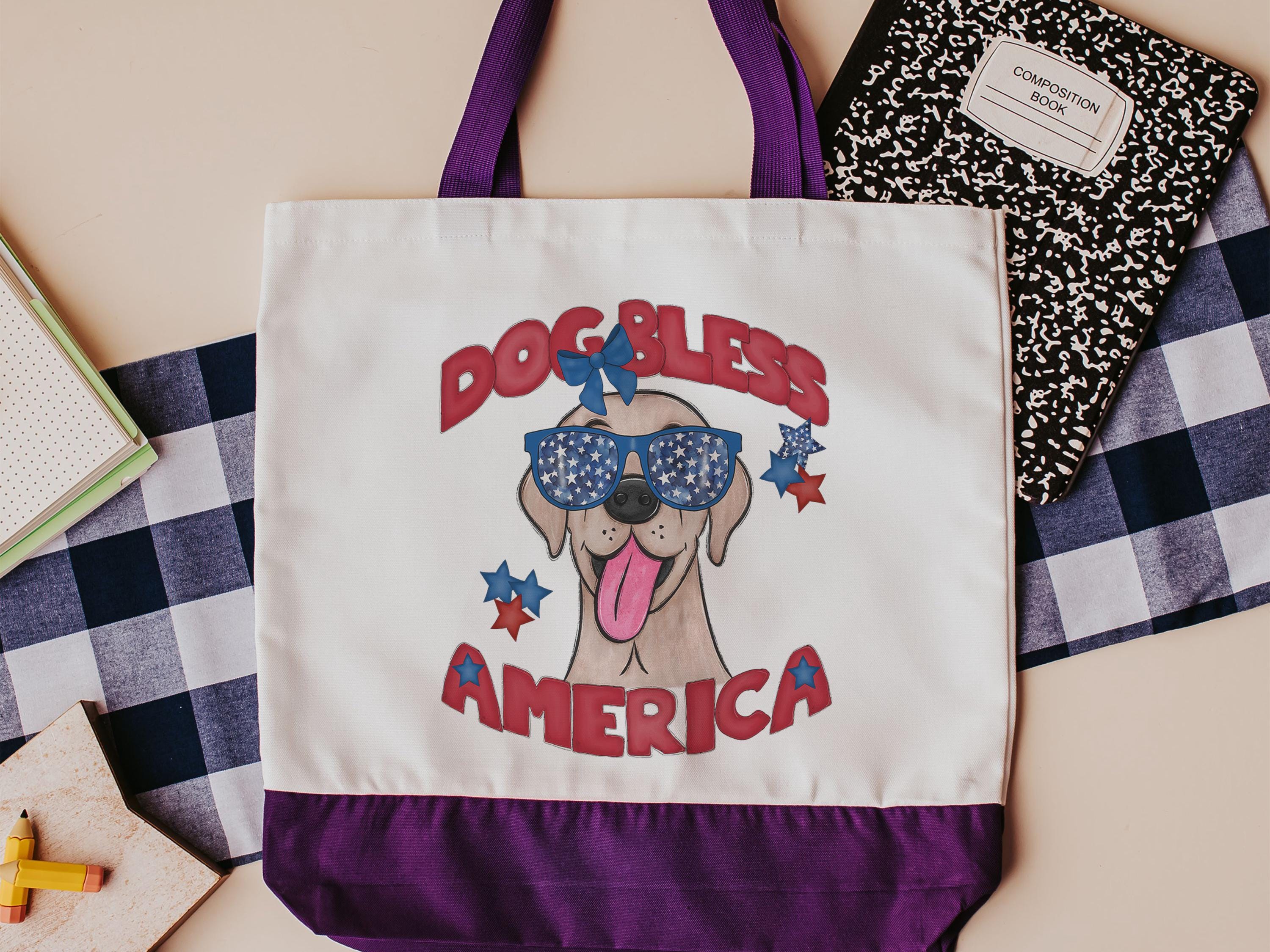 Carry a little red, white, and blue with you with this Dog Bless America Yellow Labrador Retriever tote. A handy bag for books, groceries, or everyday errands and a fun pick for yellow lab moms. A great patriotic gift for dog lovers and 4th of July season.