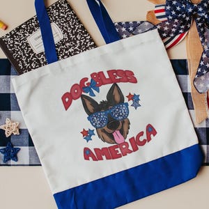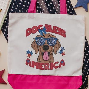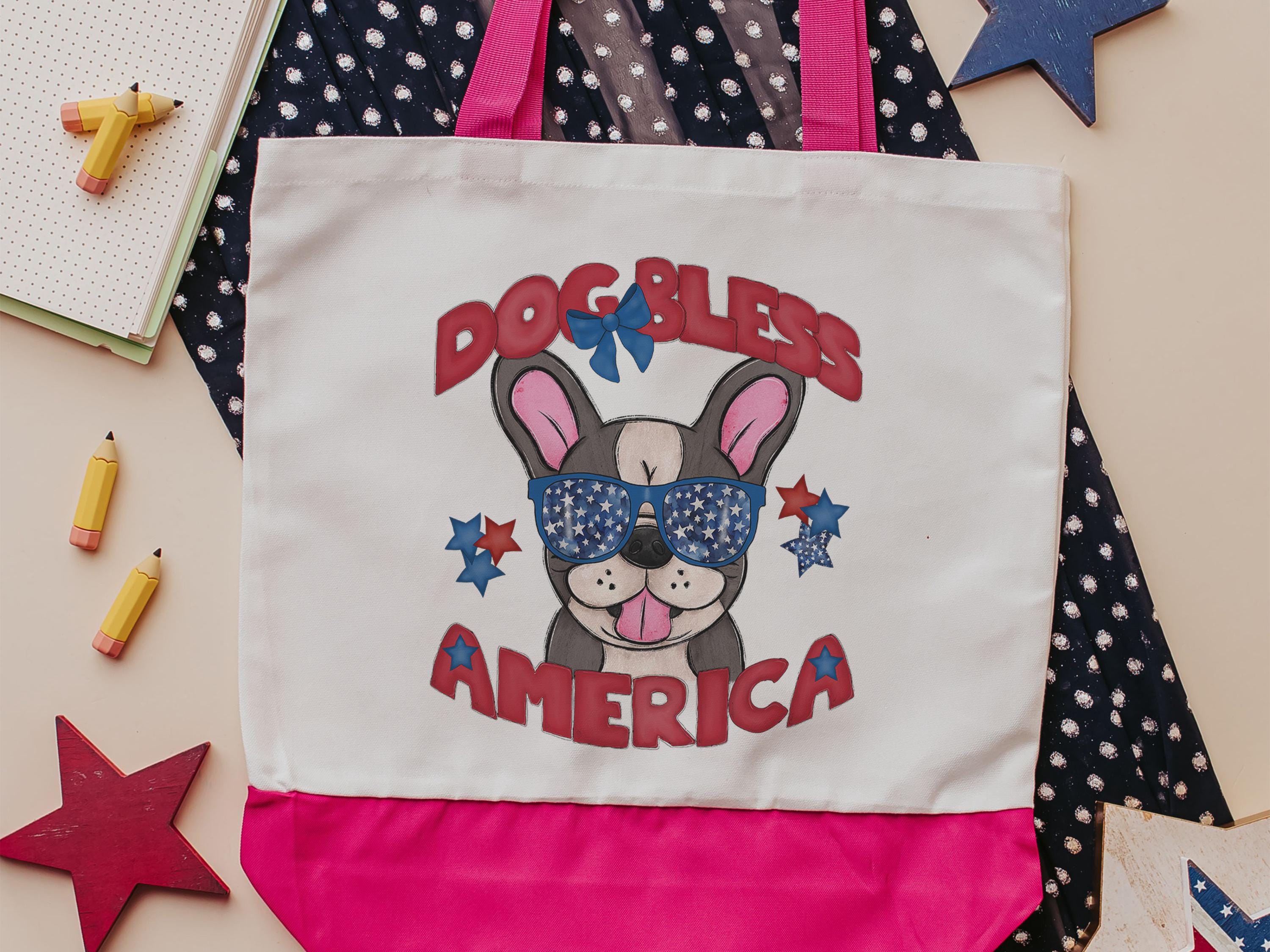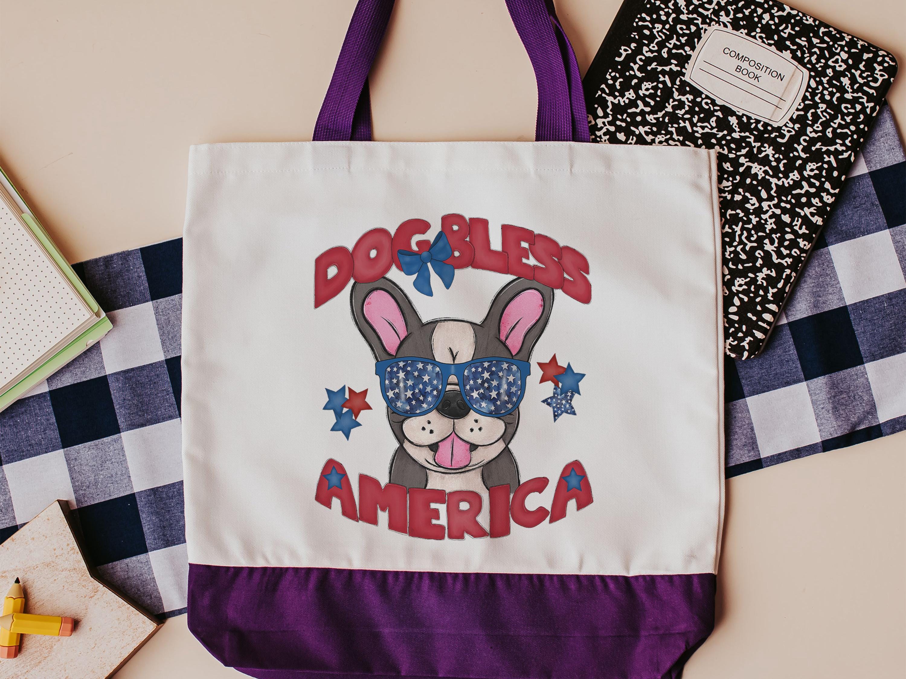 Carry a little red, white, and blue with you with this Dog Bless America French bulldog tote. A handy bag for books, groceries, or everyday errands and a fun pick for frenchie moms. A great patriotic gift for dog lovers and 4th of July season.