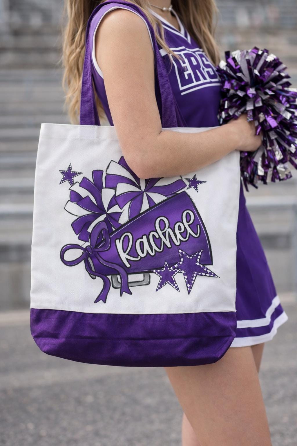 A personalized name with a cheer look brings a fun touch for travel, game days, or everyday use. Easy to carry as a beach bag or cheer travel tote, making a great pick for cheerleader gifts for teen girls or end of season cheer team gifts.