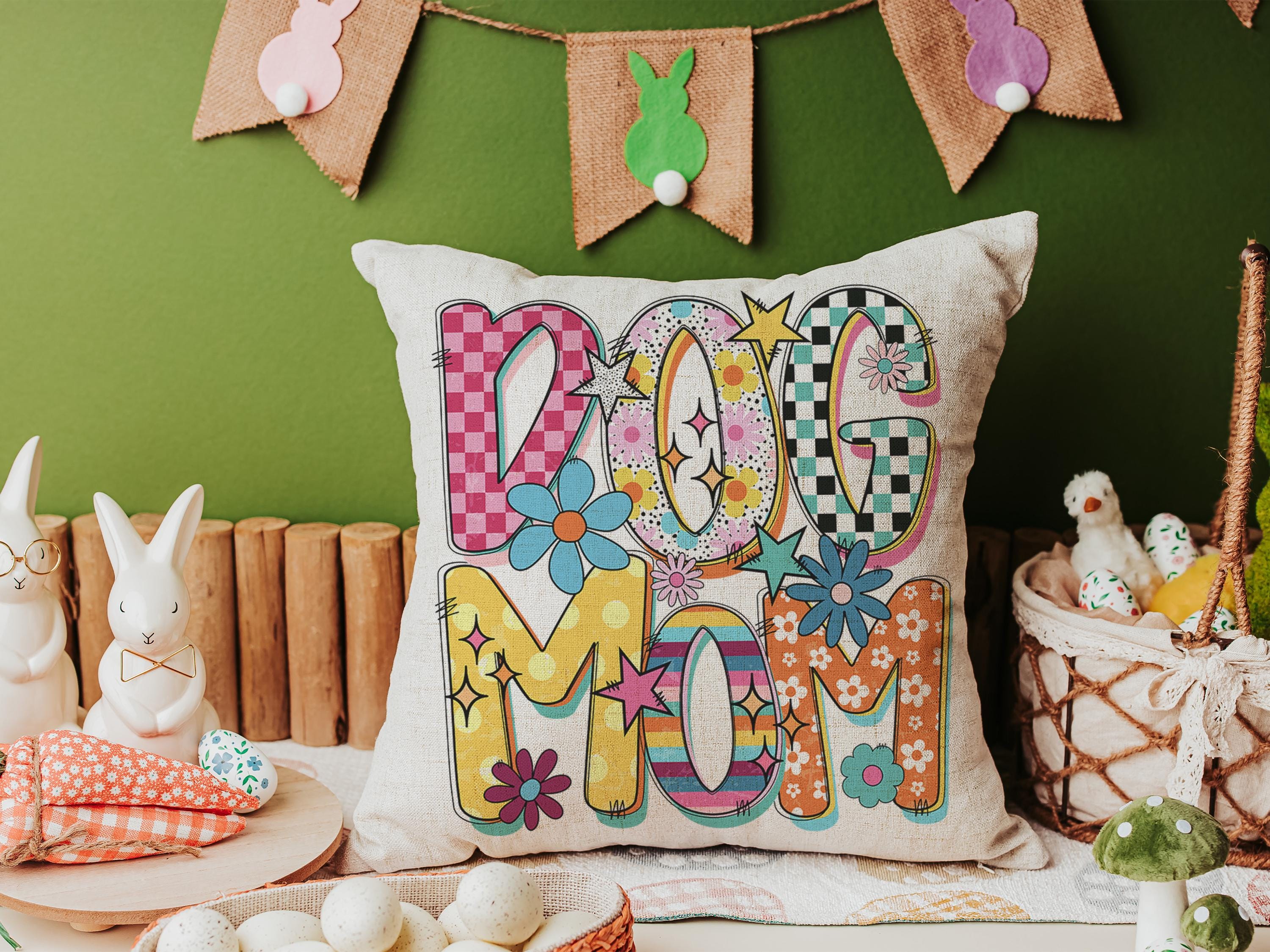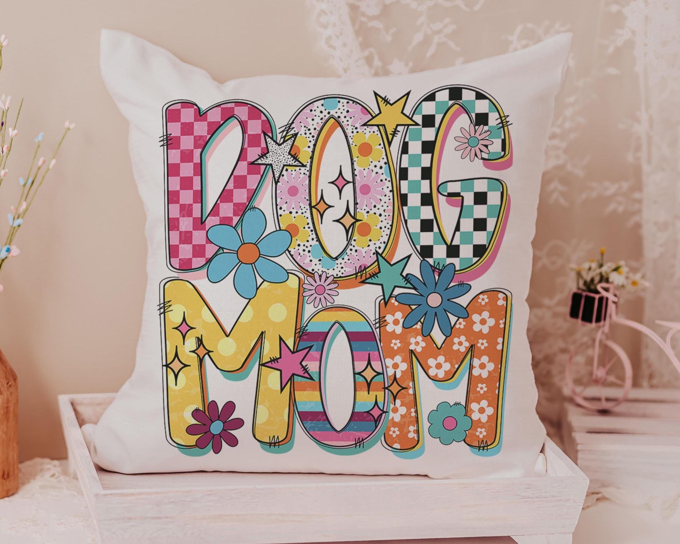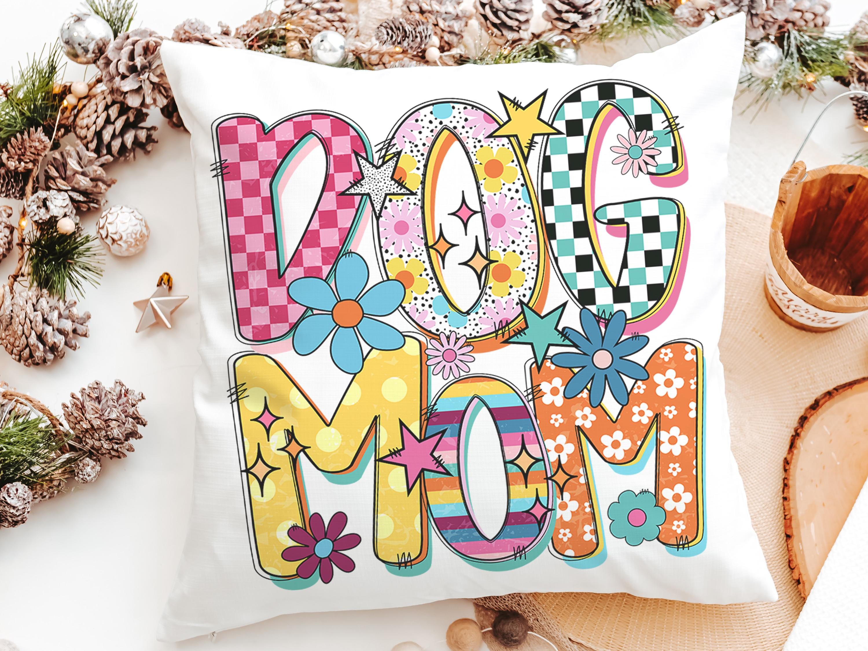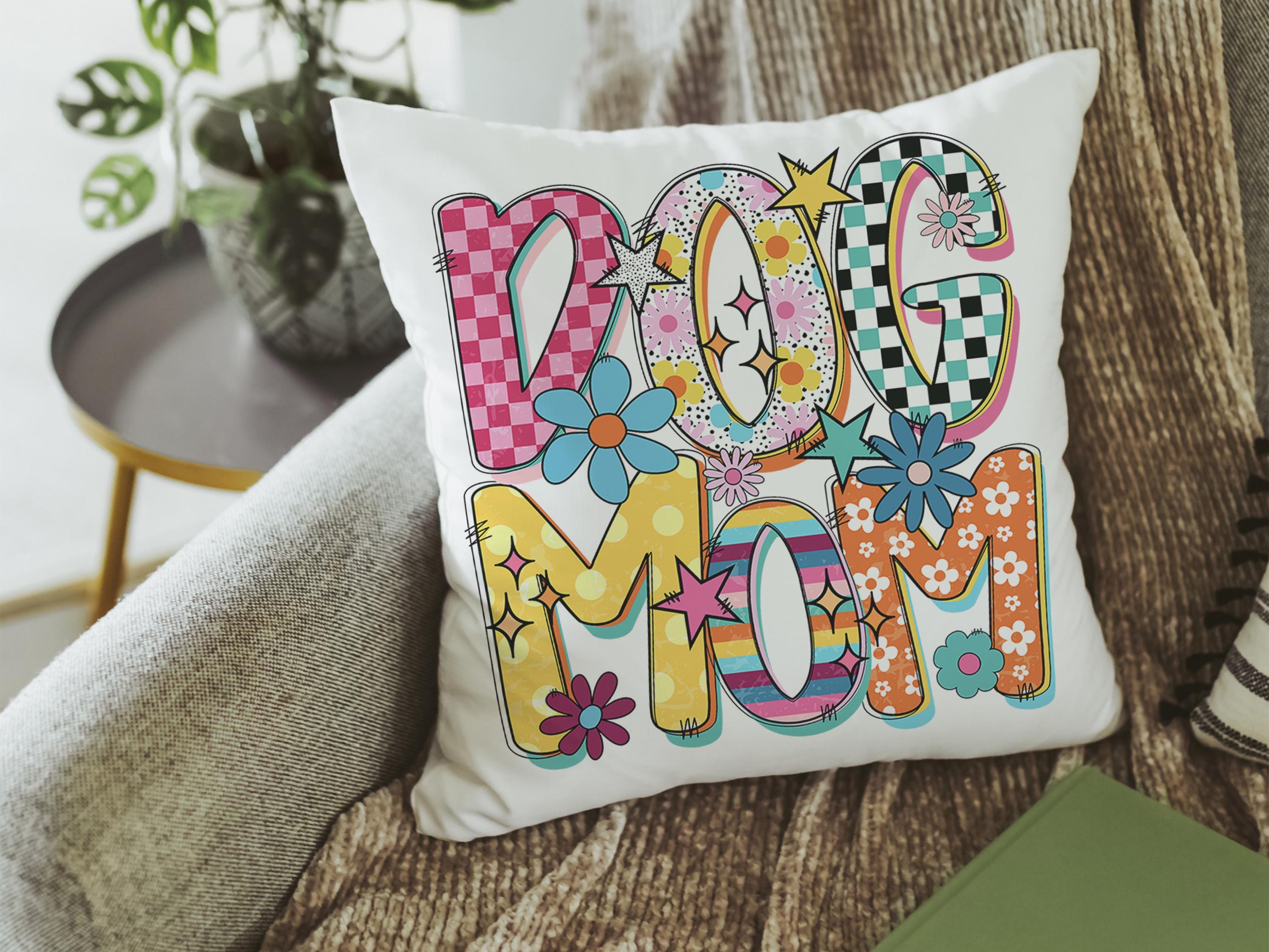A rainbow dog mom design with a mod style brings a fun touch to a kitchen, couch, or cozy corner with the same design on both pieces. A cute pick for dog lovers and dog mom gifts, with the towel and pillow available separately or together as a set.