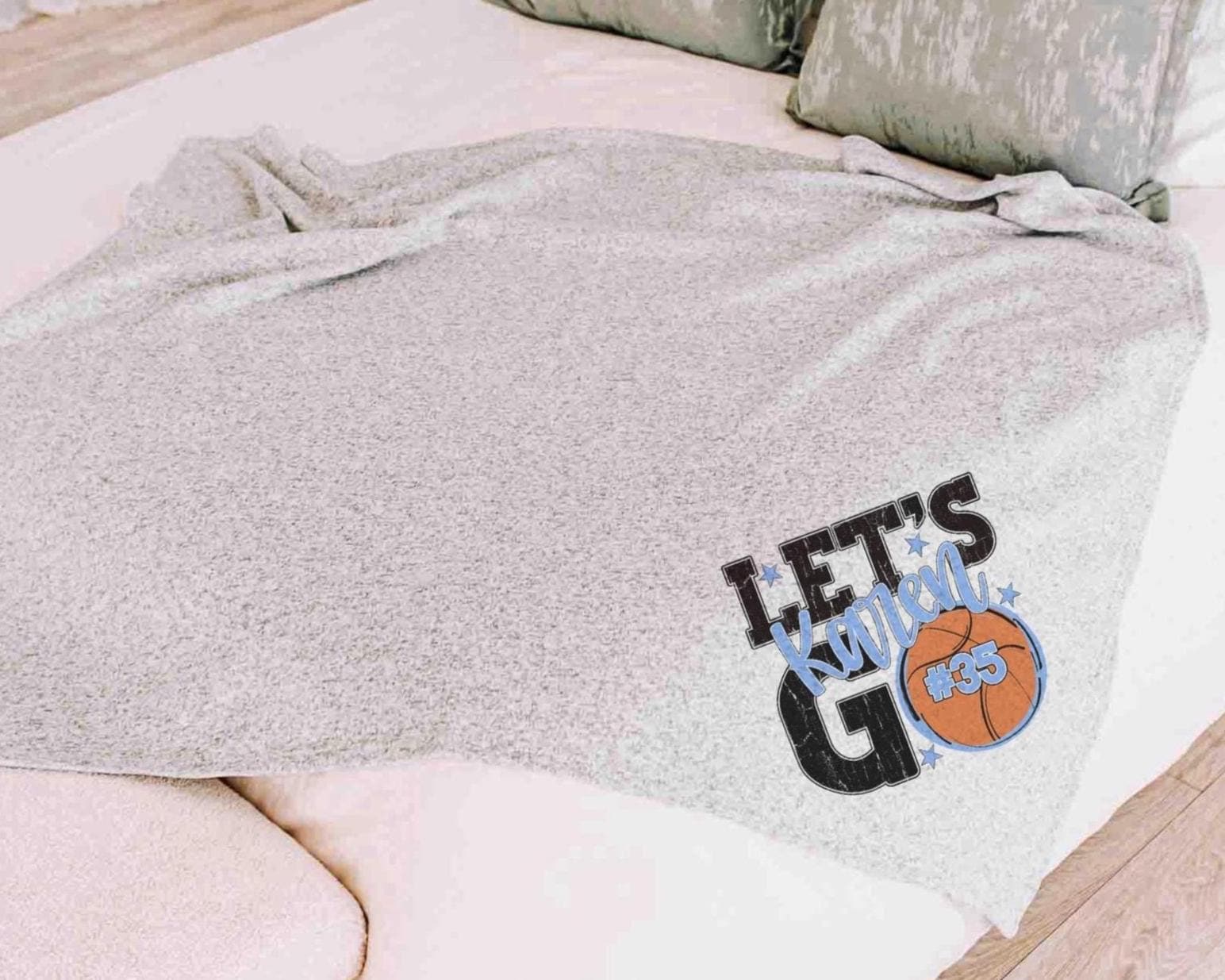 A personalized lets go name and team number with a basketball design makes a great choice for relaxing after games, travel, or everyday use. A great pick for senior night gifts or high school graduation gifts for girls, especially for daughters who love basketball.