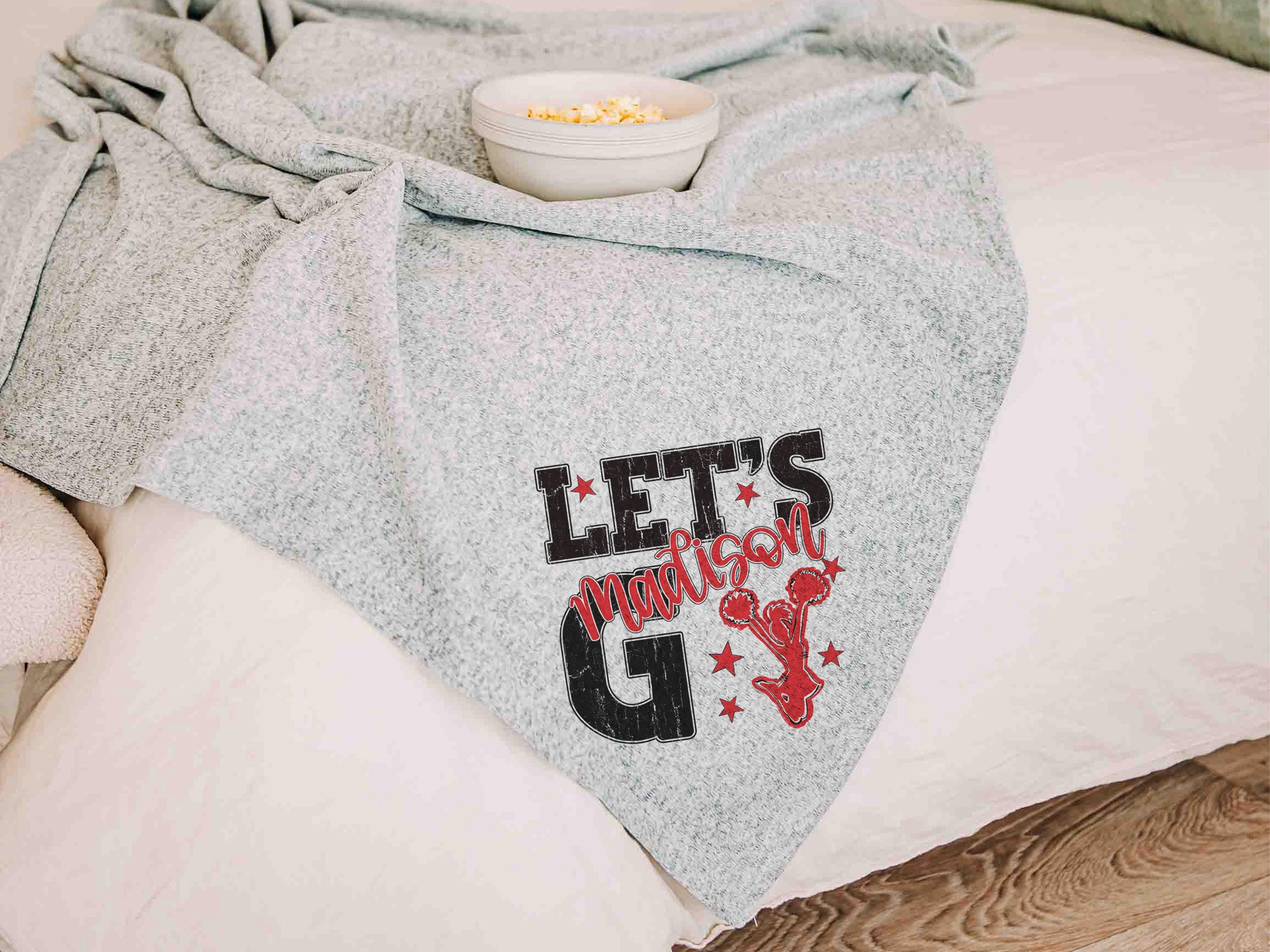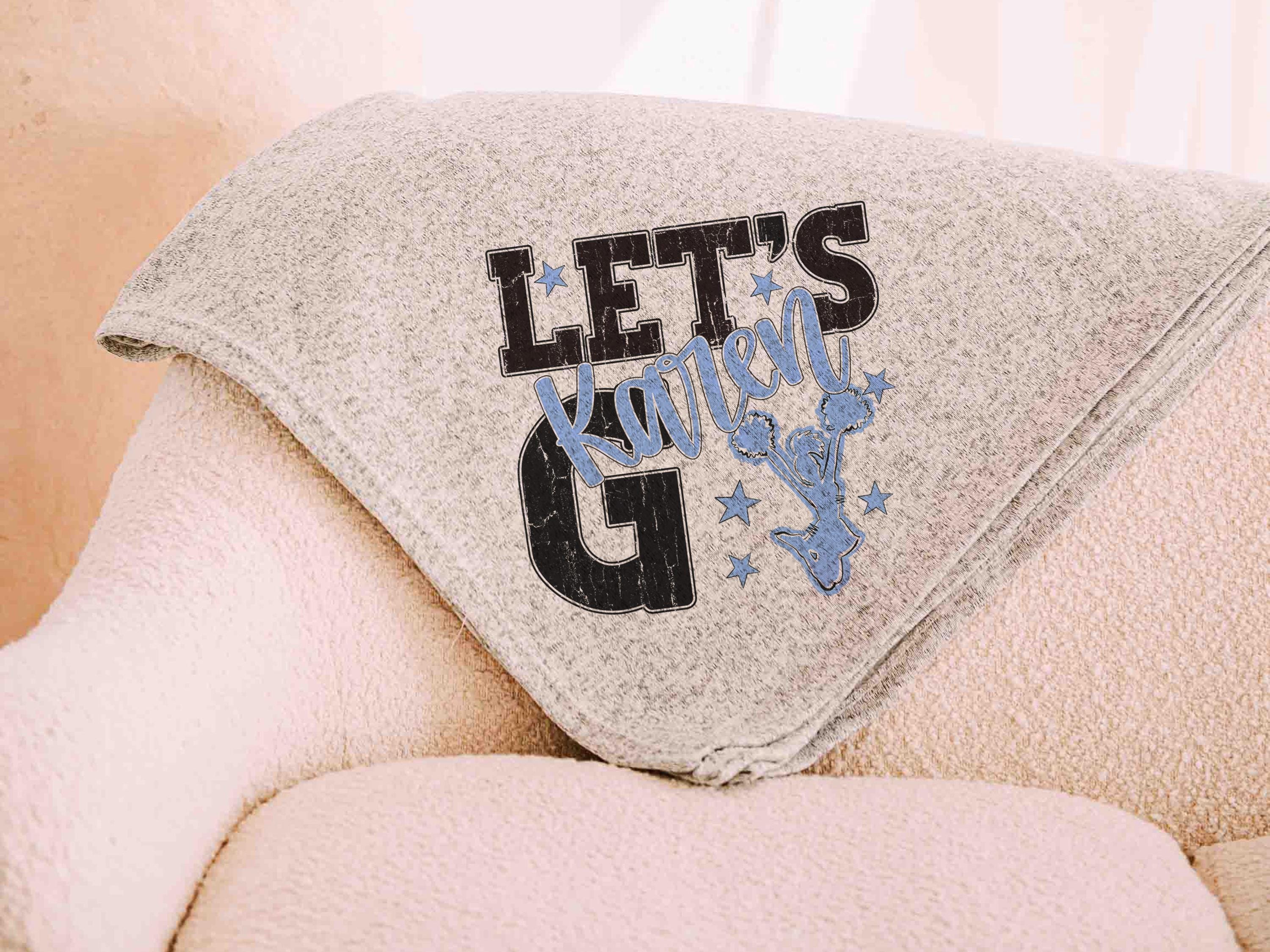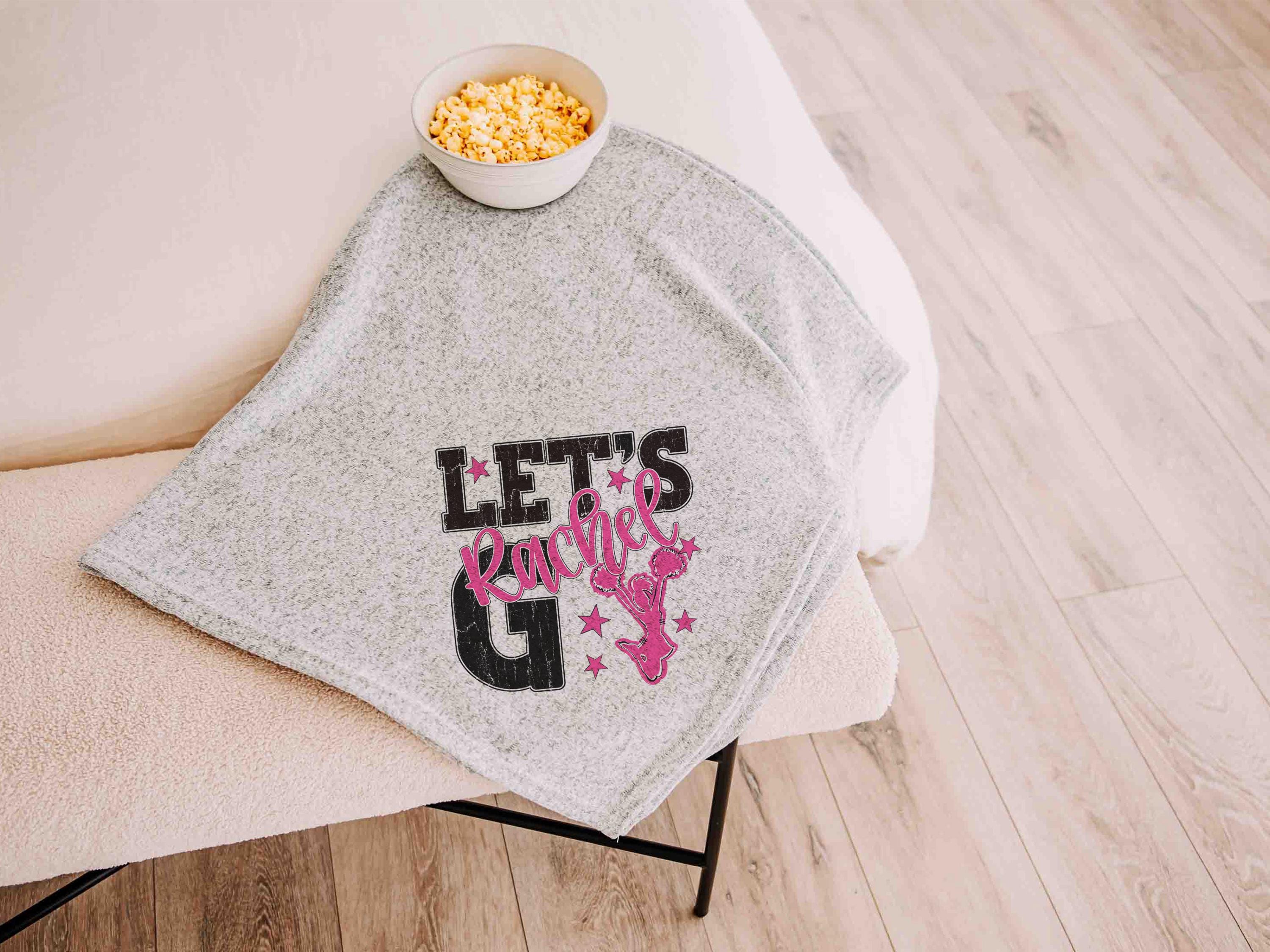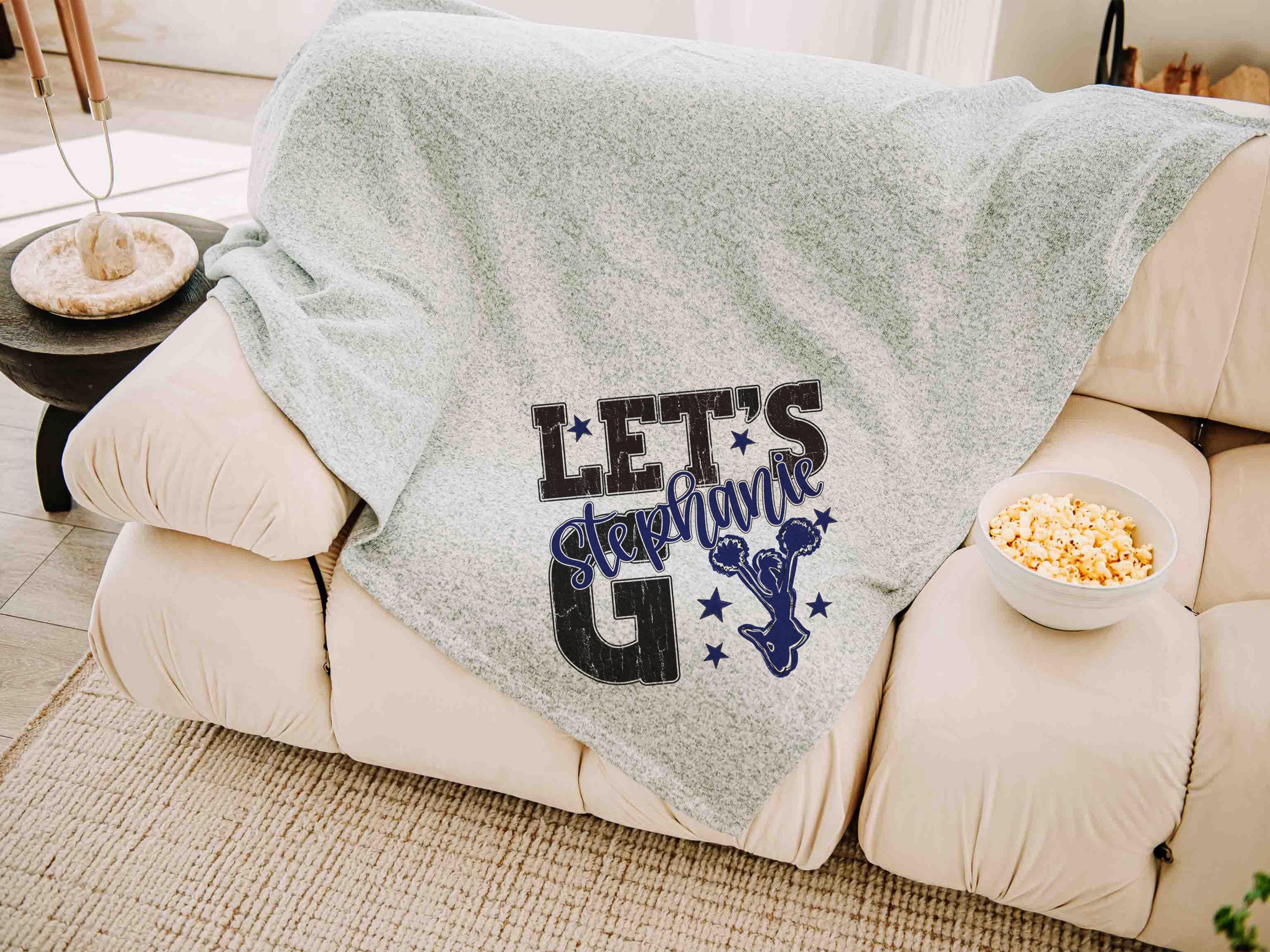 A “let’s go” cheer style with a personalized name in Carolina blue brings a fun game day look to the sofa or after long nights at events. A great pick for cheerleader gifts for teen girls and a fun choice for cheer team gifts.
