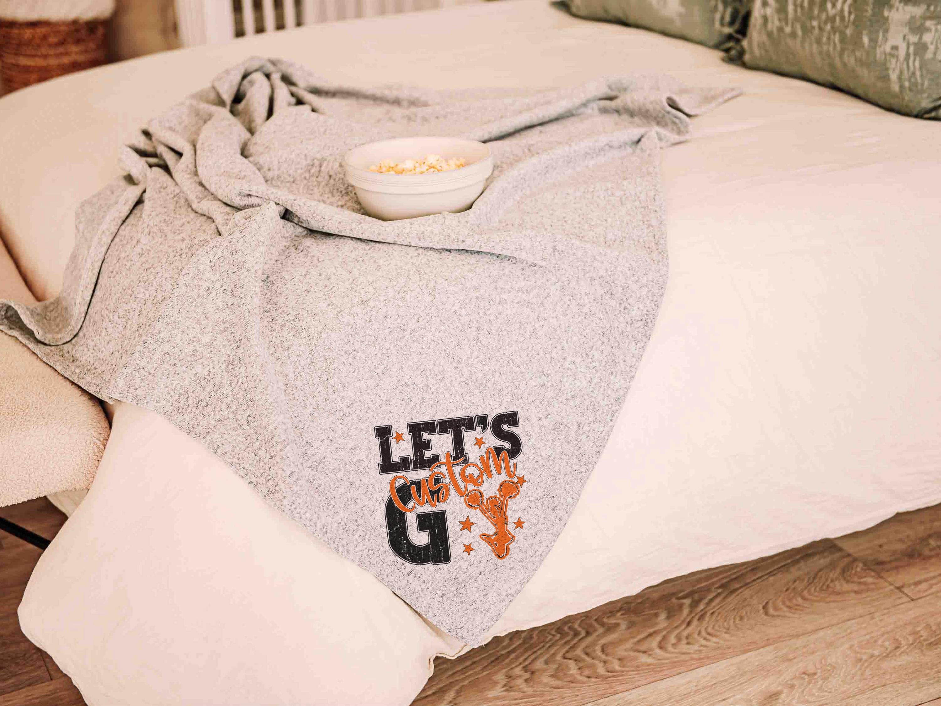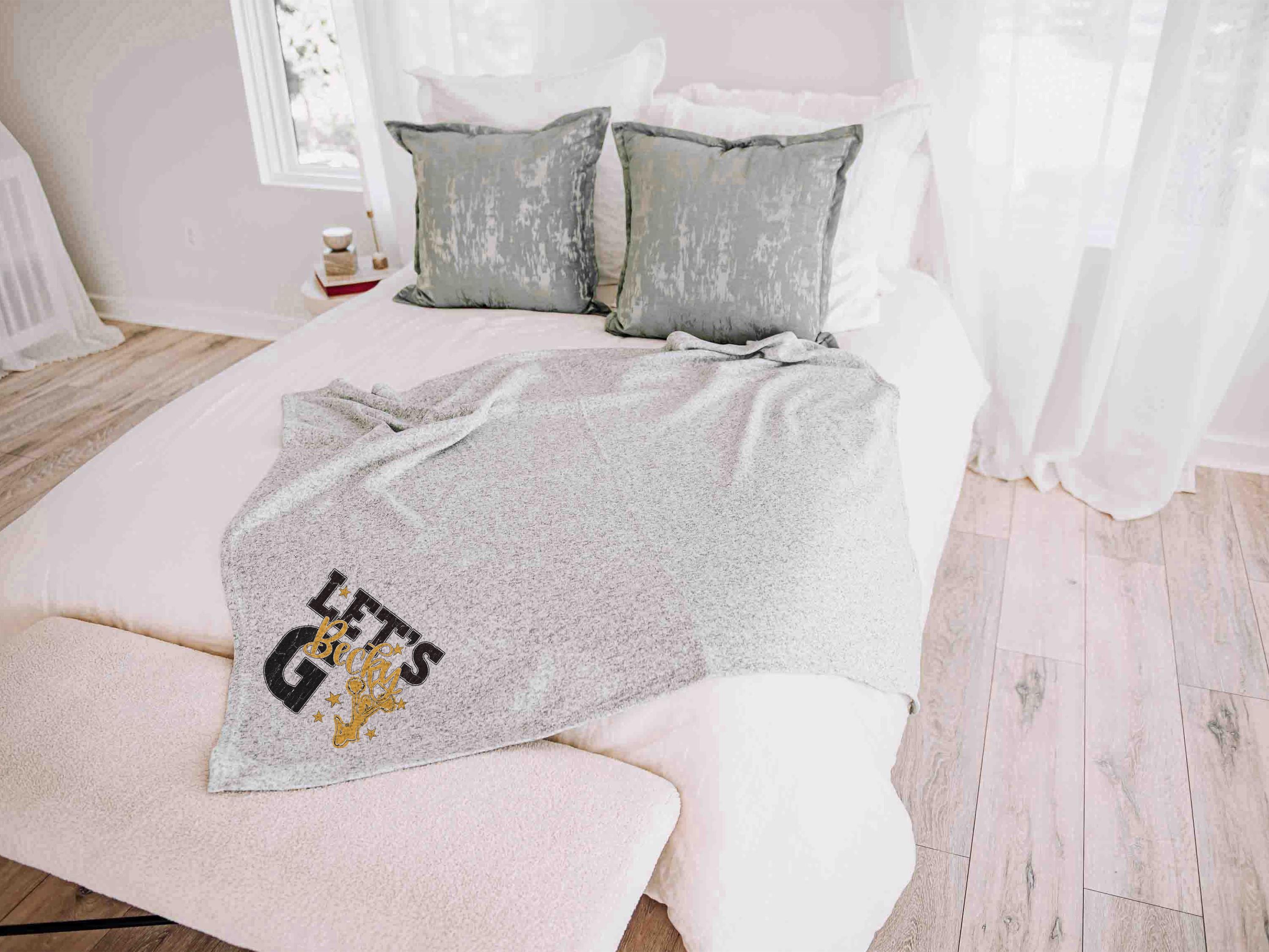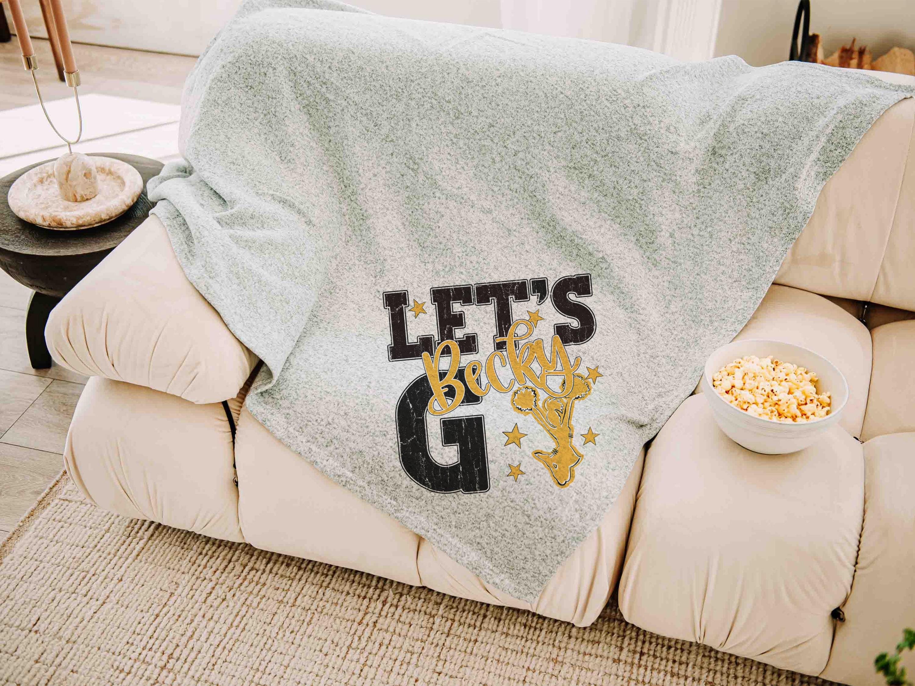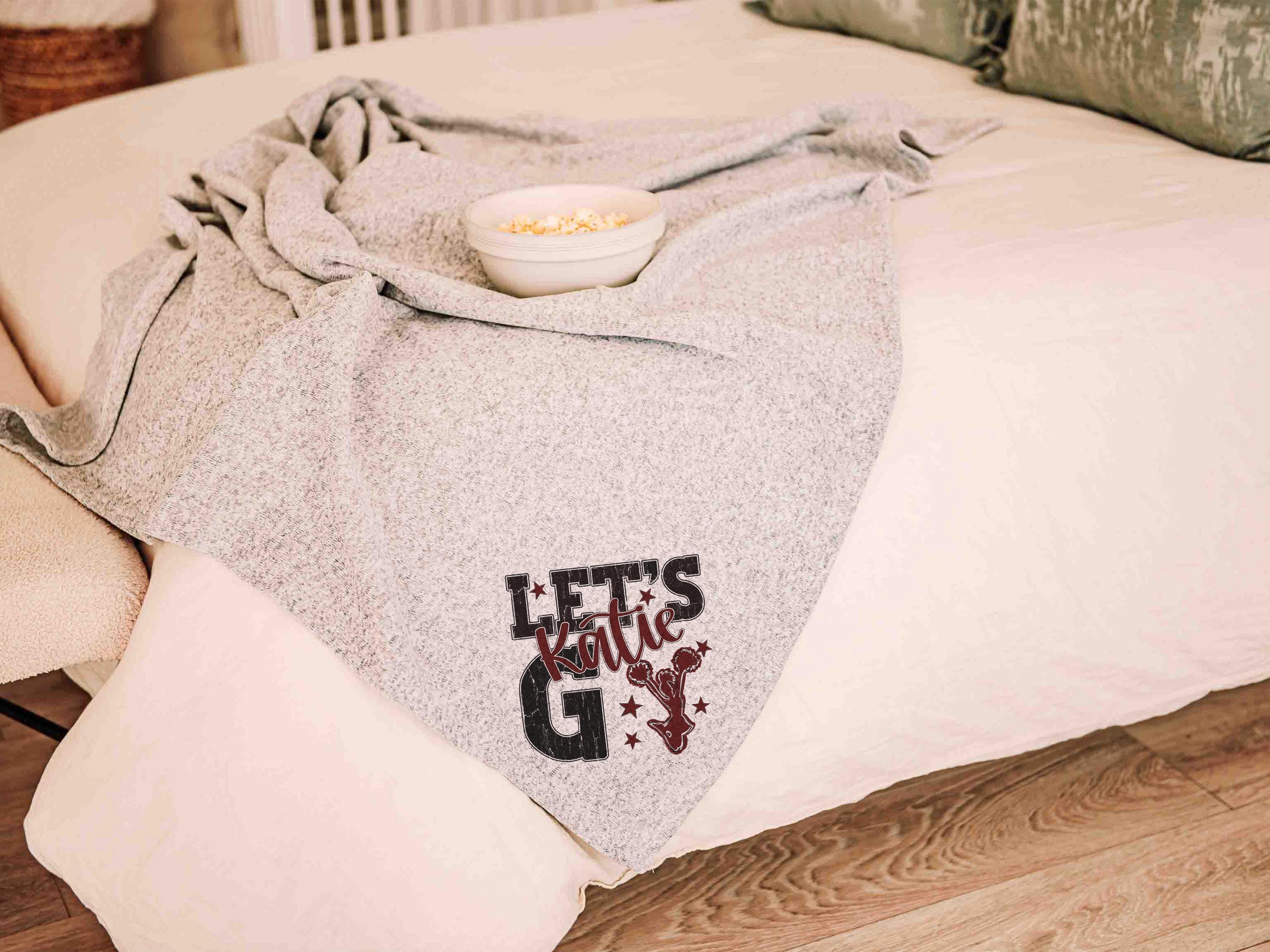 A “let’s go” cheer style with a personalized name in Carolina blue brings a fun game day look to the sofa or after long nights at events. A great pick for cheerleader gifts for teen girls and a fun choice for cheer team gifts.