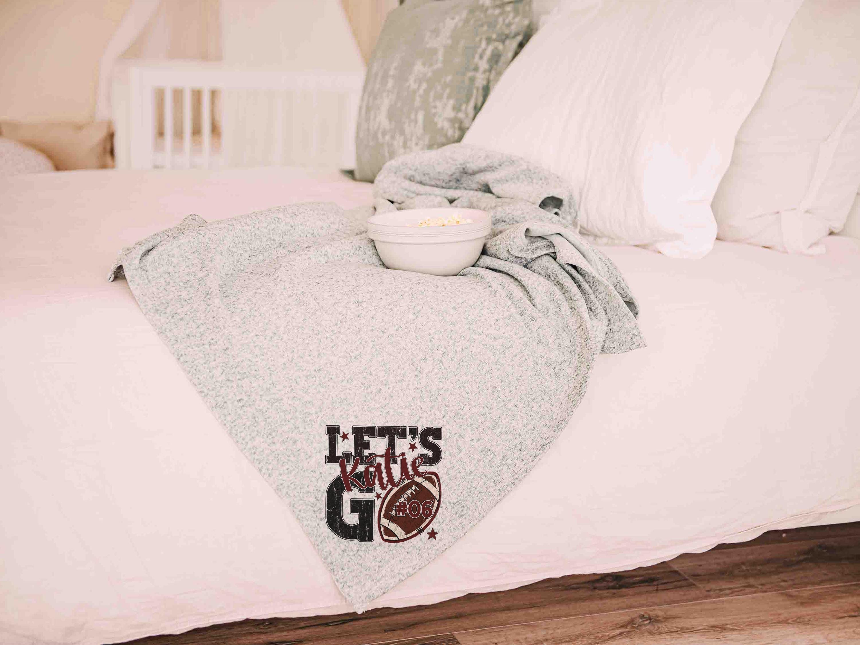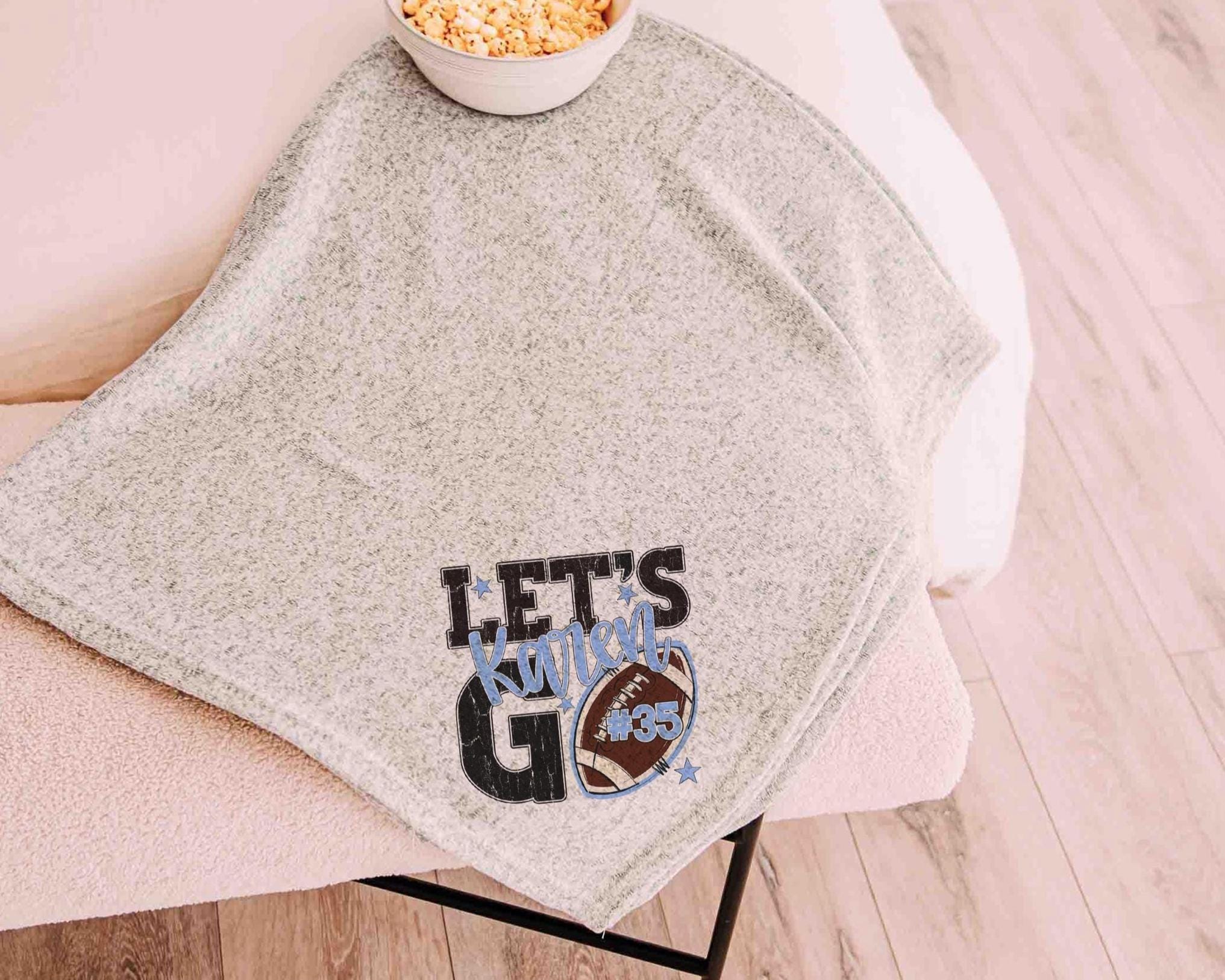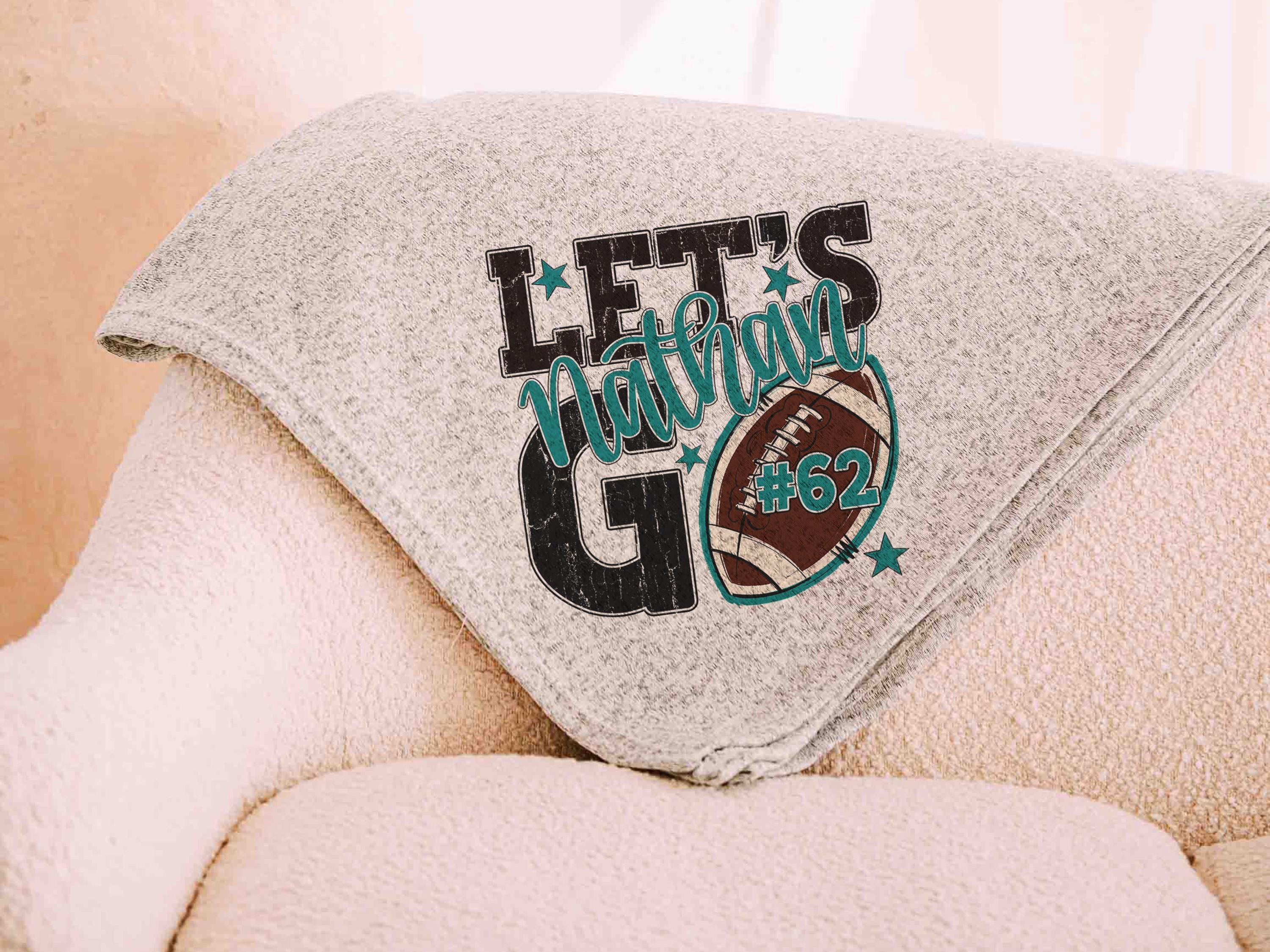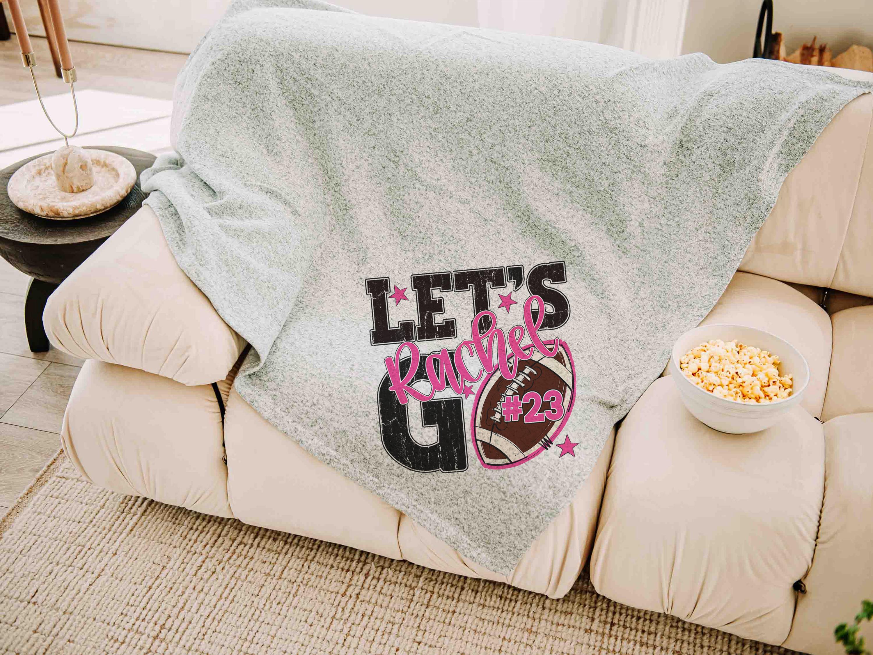A “Let’s Go” football saying with a personalized name and number brings a fun game day vibe to the sofa or after long days at the field. A great Mothers Day gift for a mother in law or daughter and a fun pick for football moms who love football gifts.