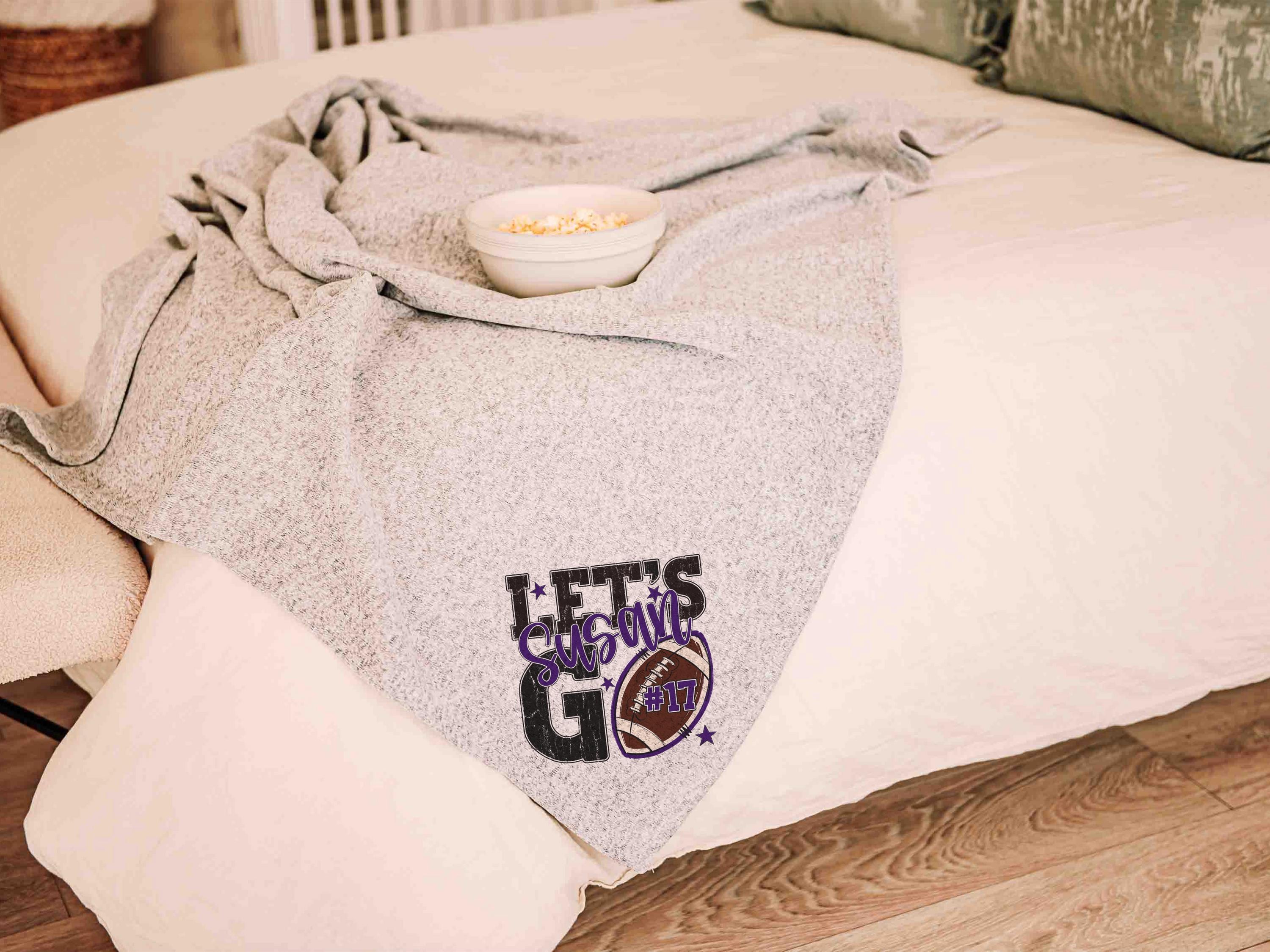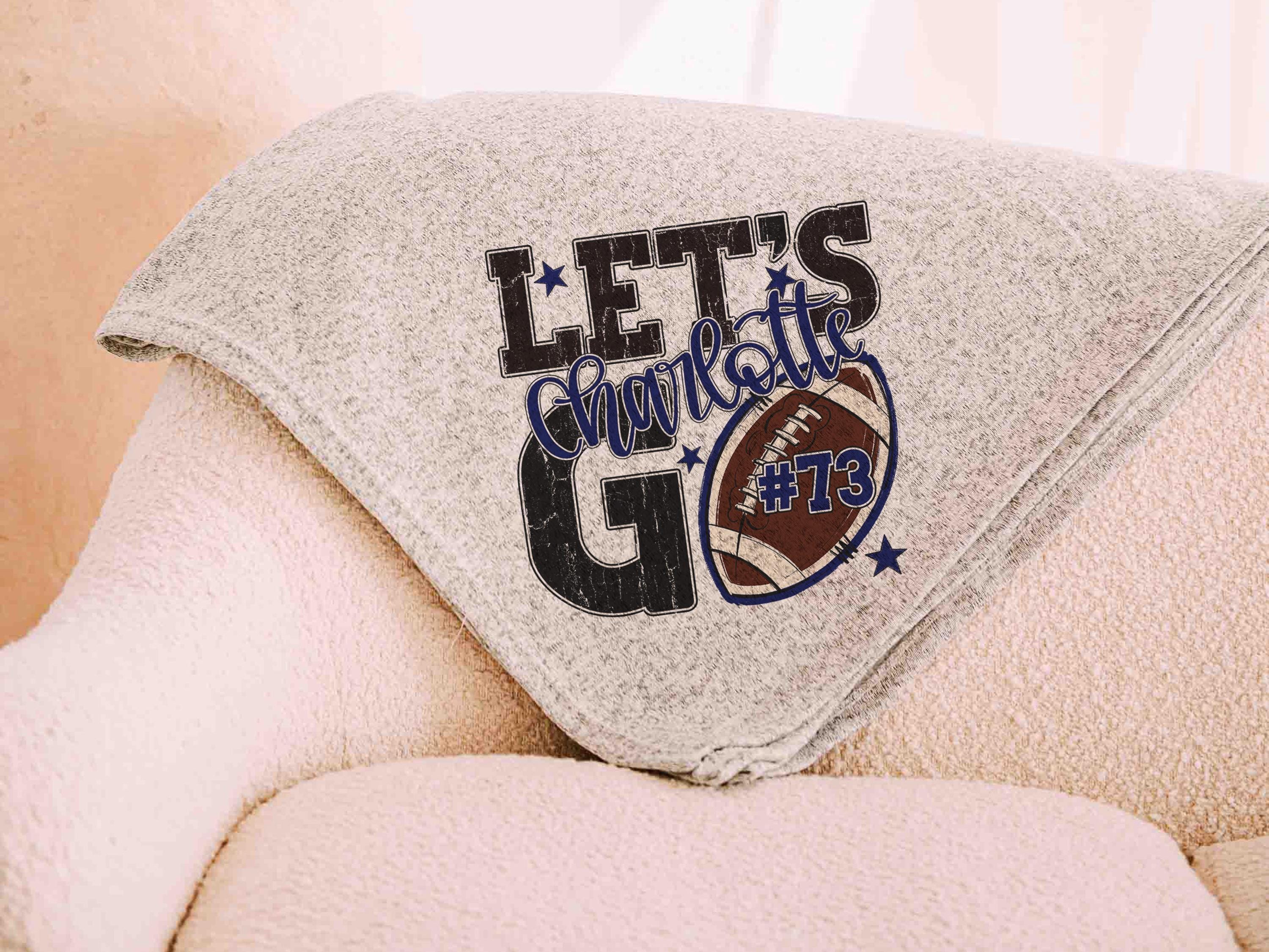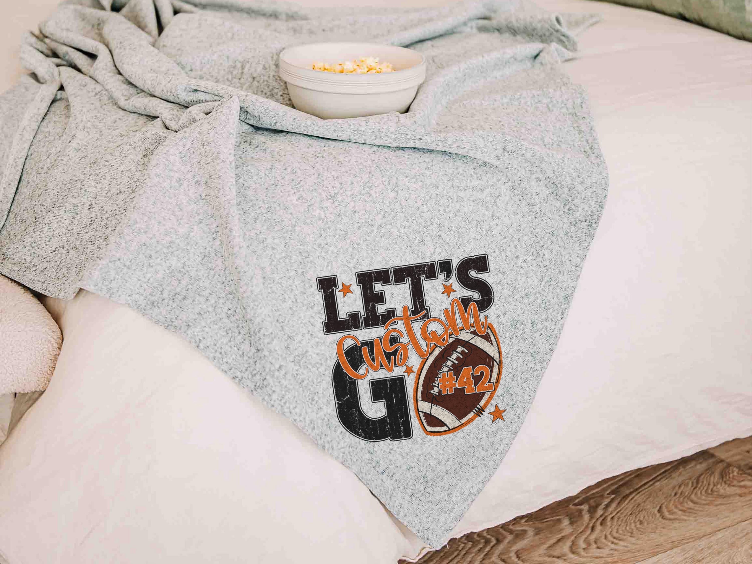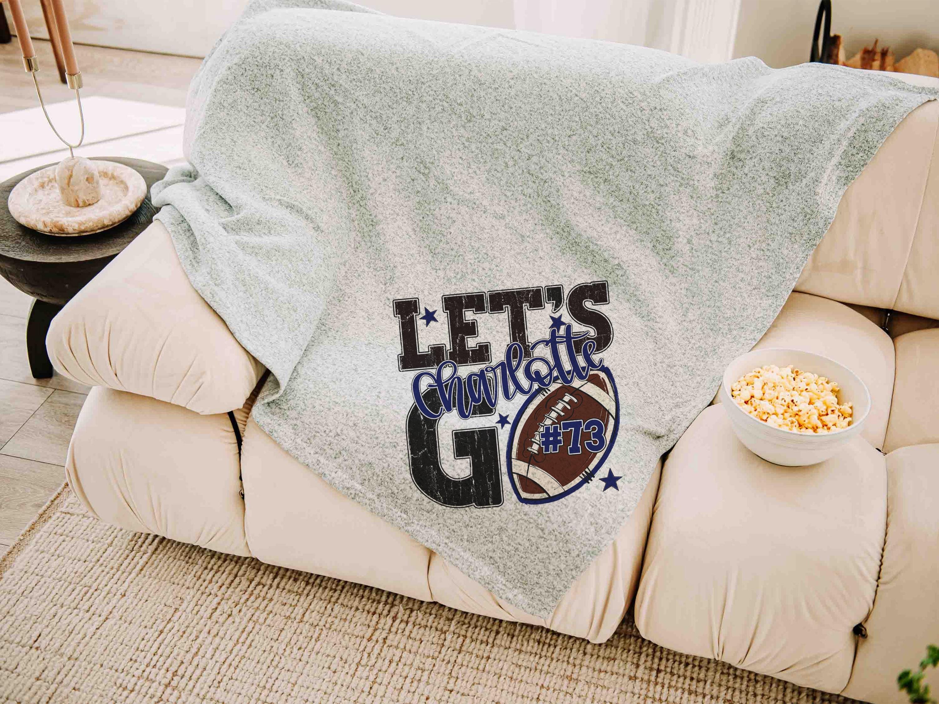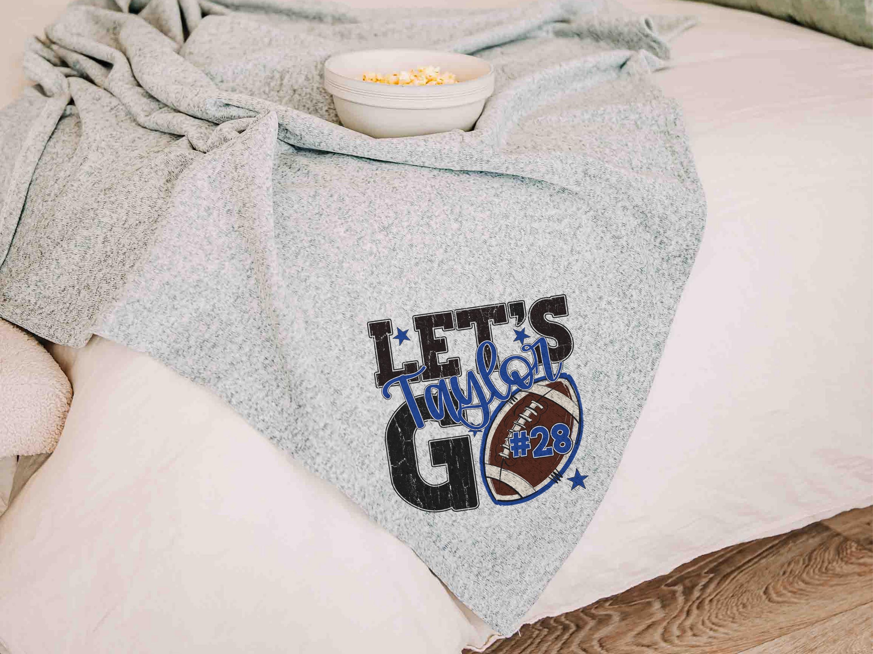 A “Let’s Go” football saying with a personalized name and number brings a fun game day vibe to the sofa or after long days at the field. A great Mothers Day gift for a mother in law or daughter and a fun pick for football moms who love football gifts.