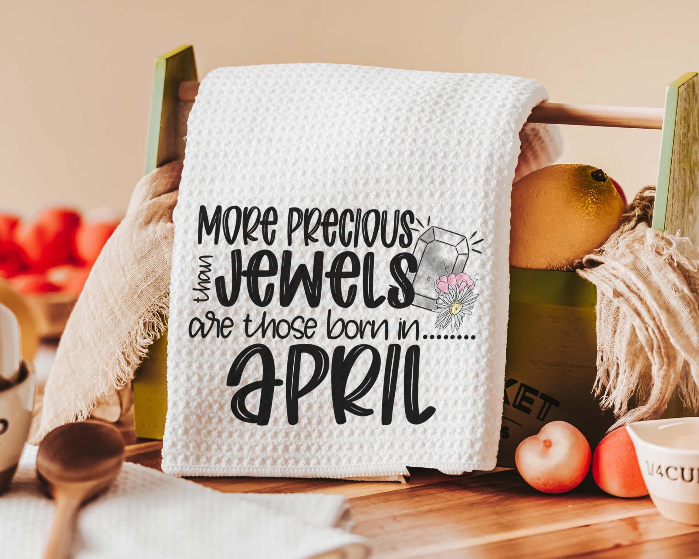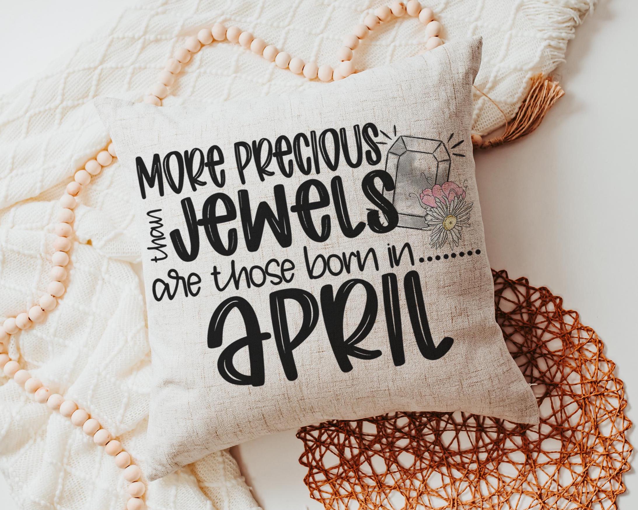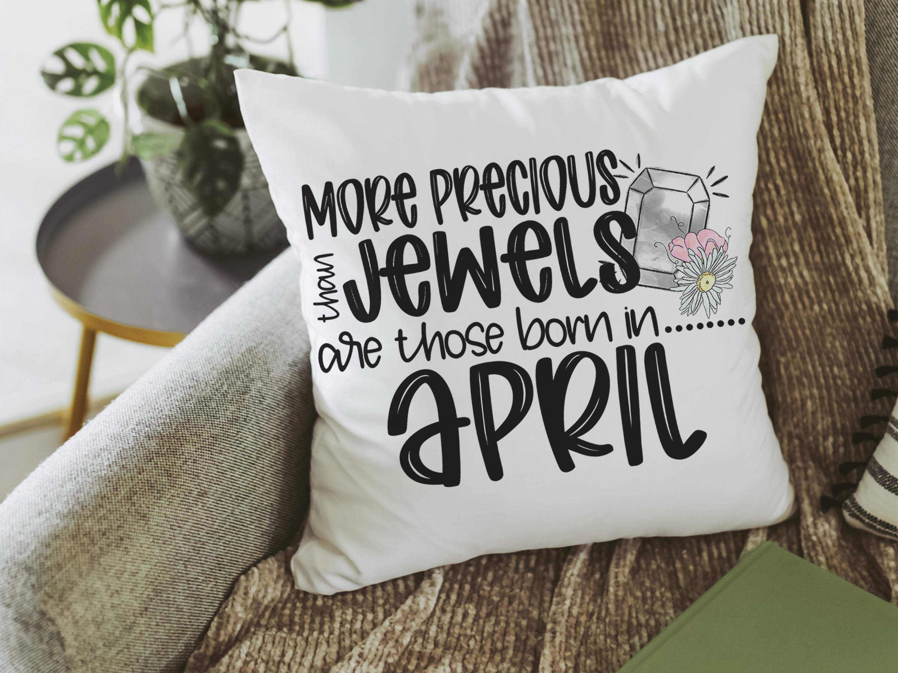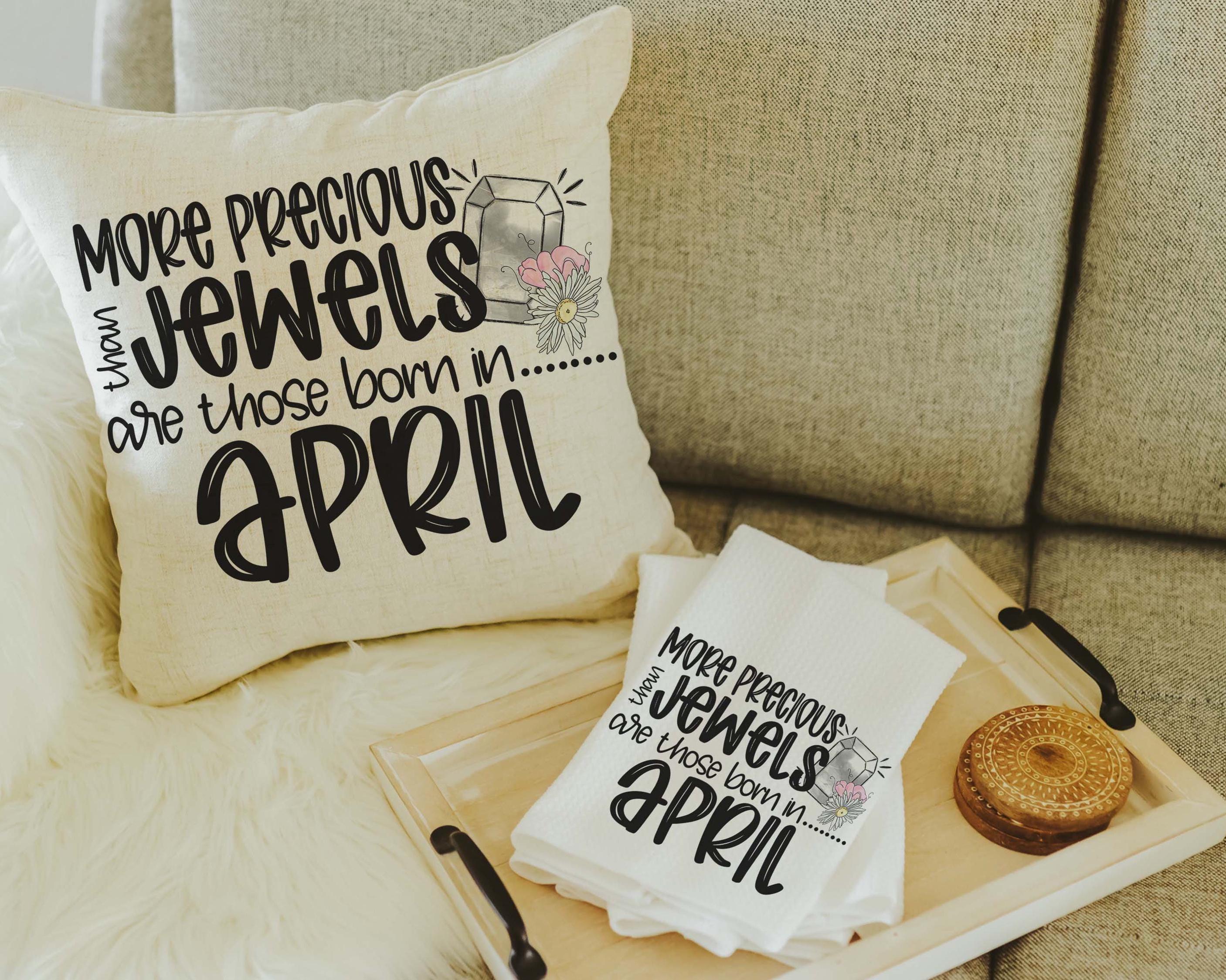 Diamond and birth flower elements highlight the April message "more precious than jewels are those born in April" and add a special touch to a sofa, bed, or favorite chair. A great pick for April birthday gifts, with a coordinating towel available to use together or on its own.
