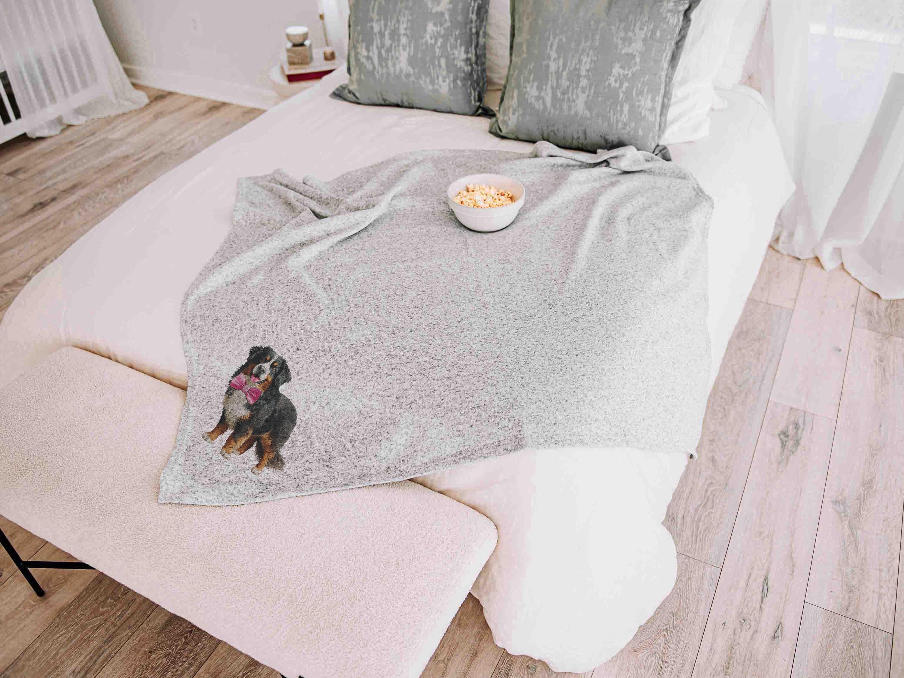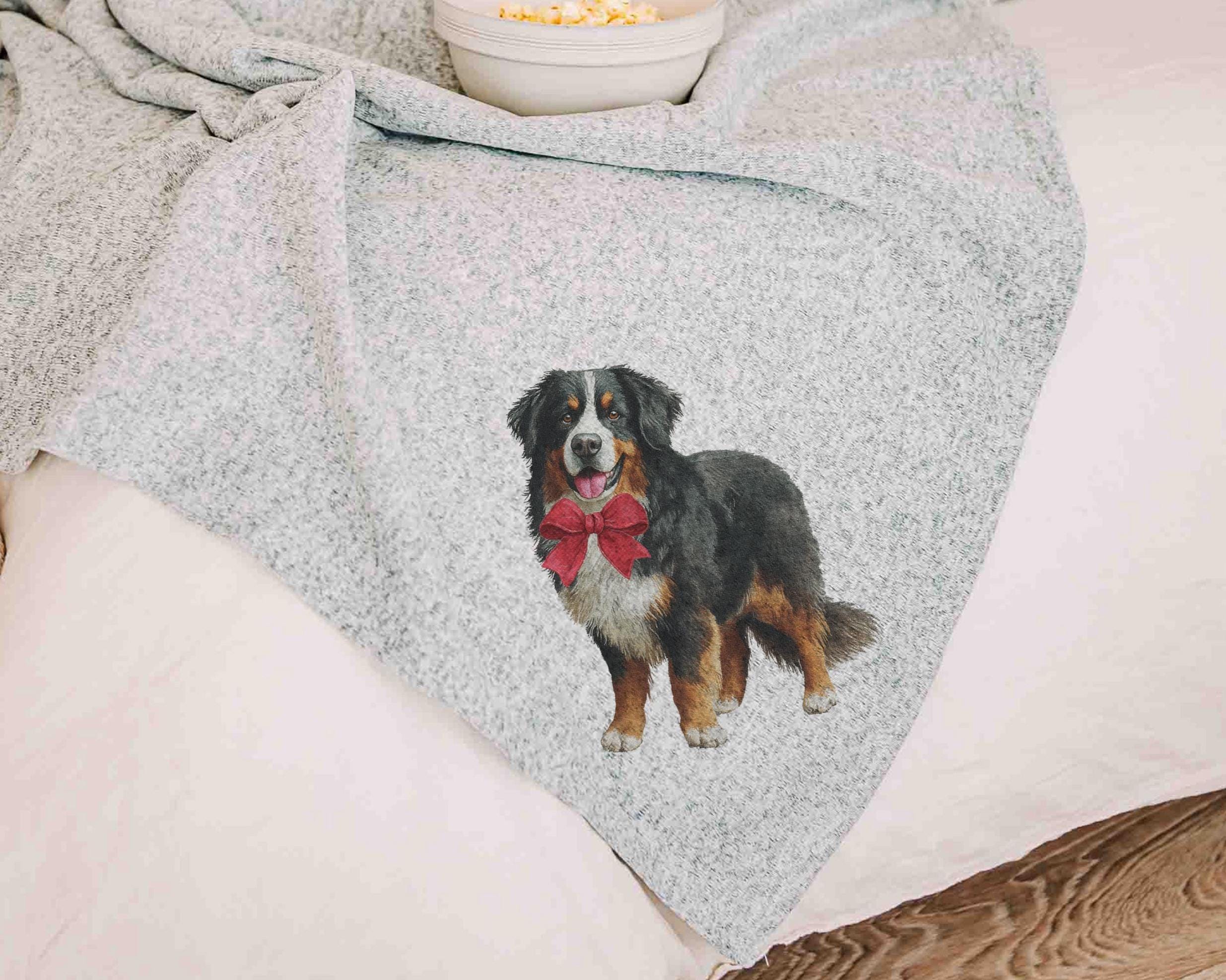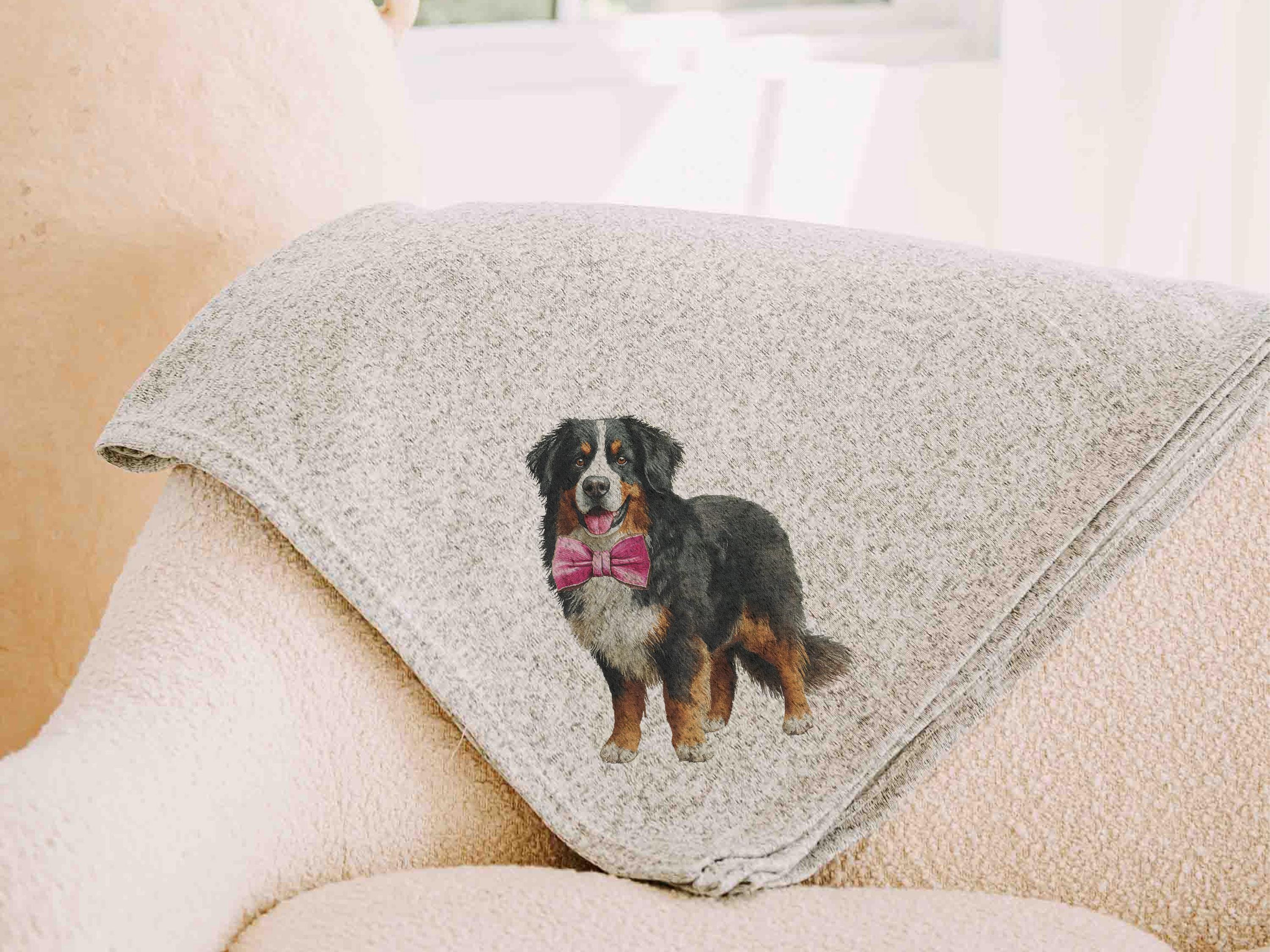 A Bernese Mountain Dog with a bow adds a sweet touch for relaxing on the sofa or unwinding at the end of the day. Available with a pink, blue, or red bow, making a great pick for dog mom gifts for women and Berner lovers.