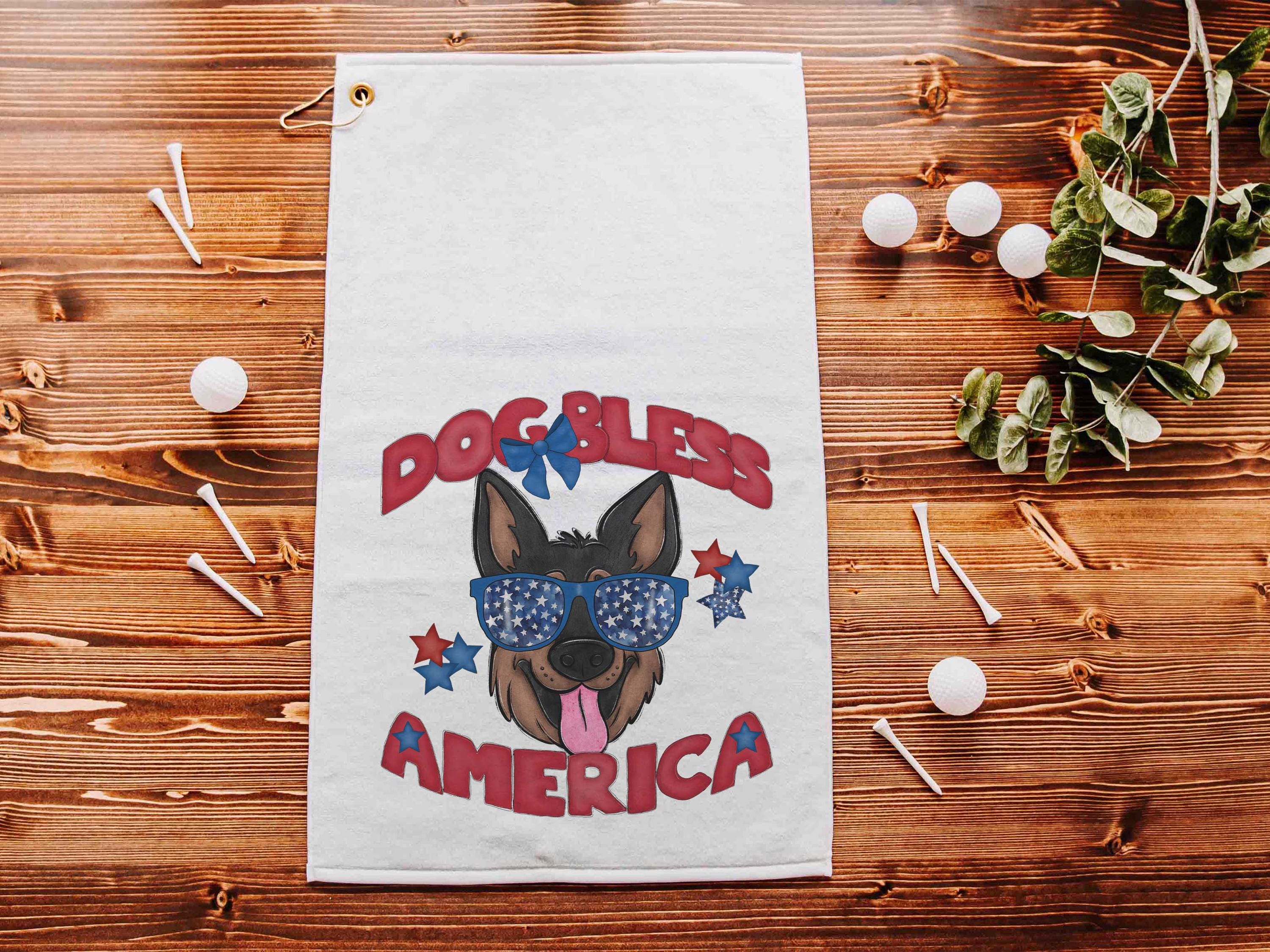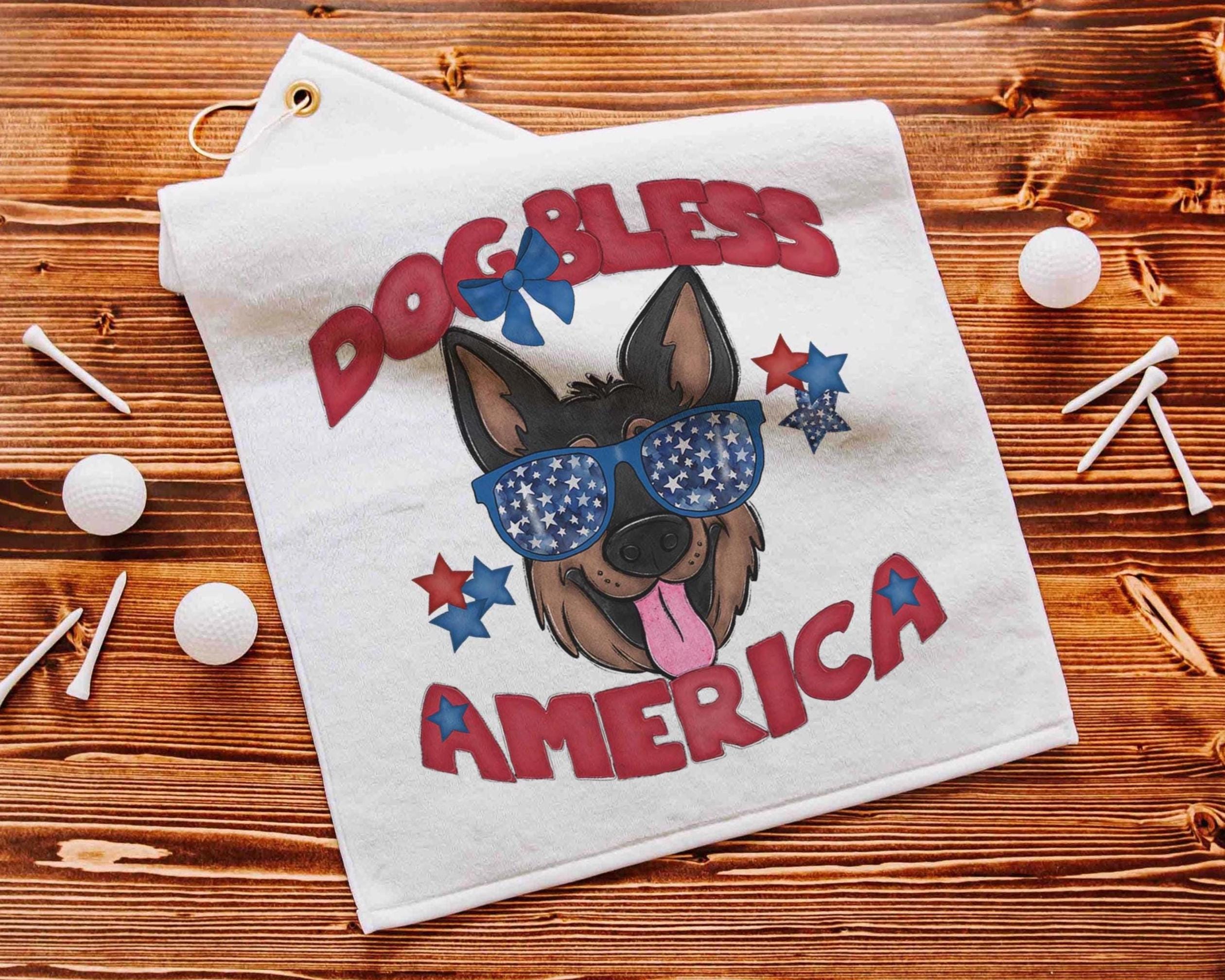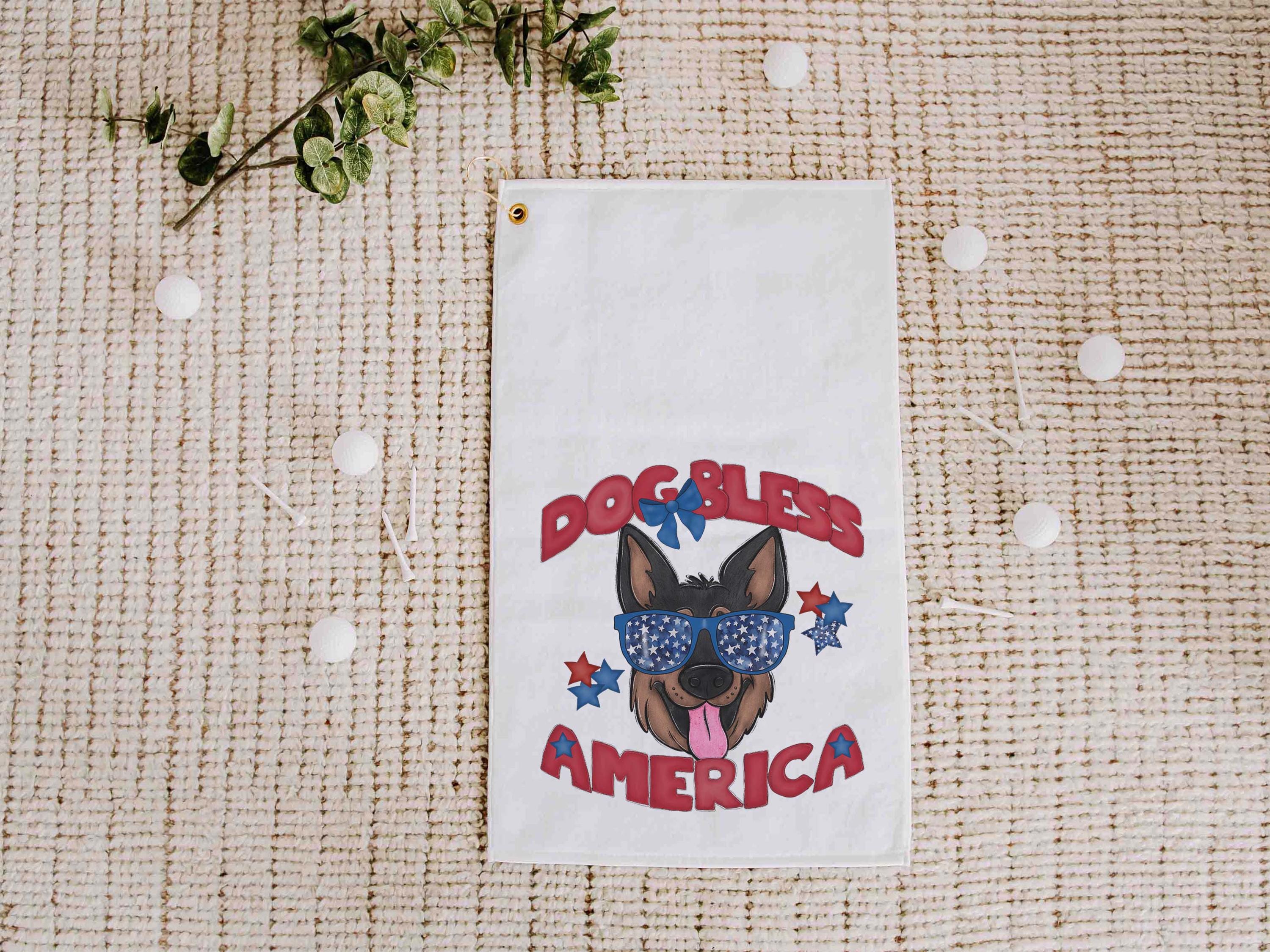 Dog bless America with a German Shepherd gives a patriotic look on the course or clipped to a golf bag. A great pick for golf gifts and a fun choice for step dads or golfers who love dog-themed gear.